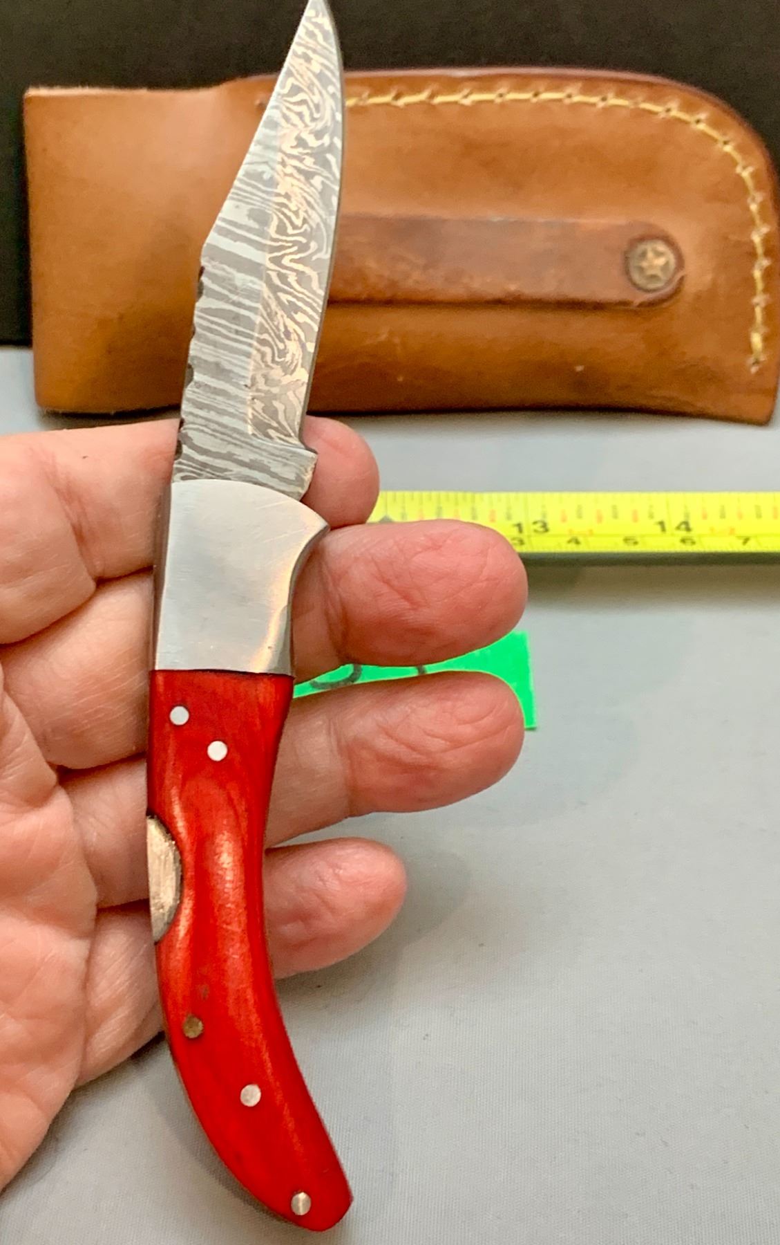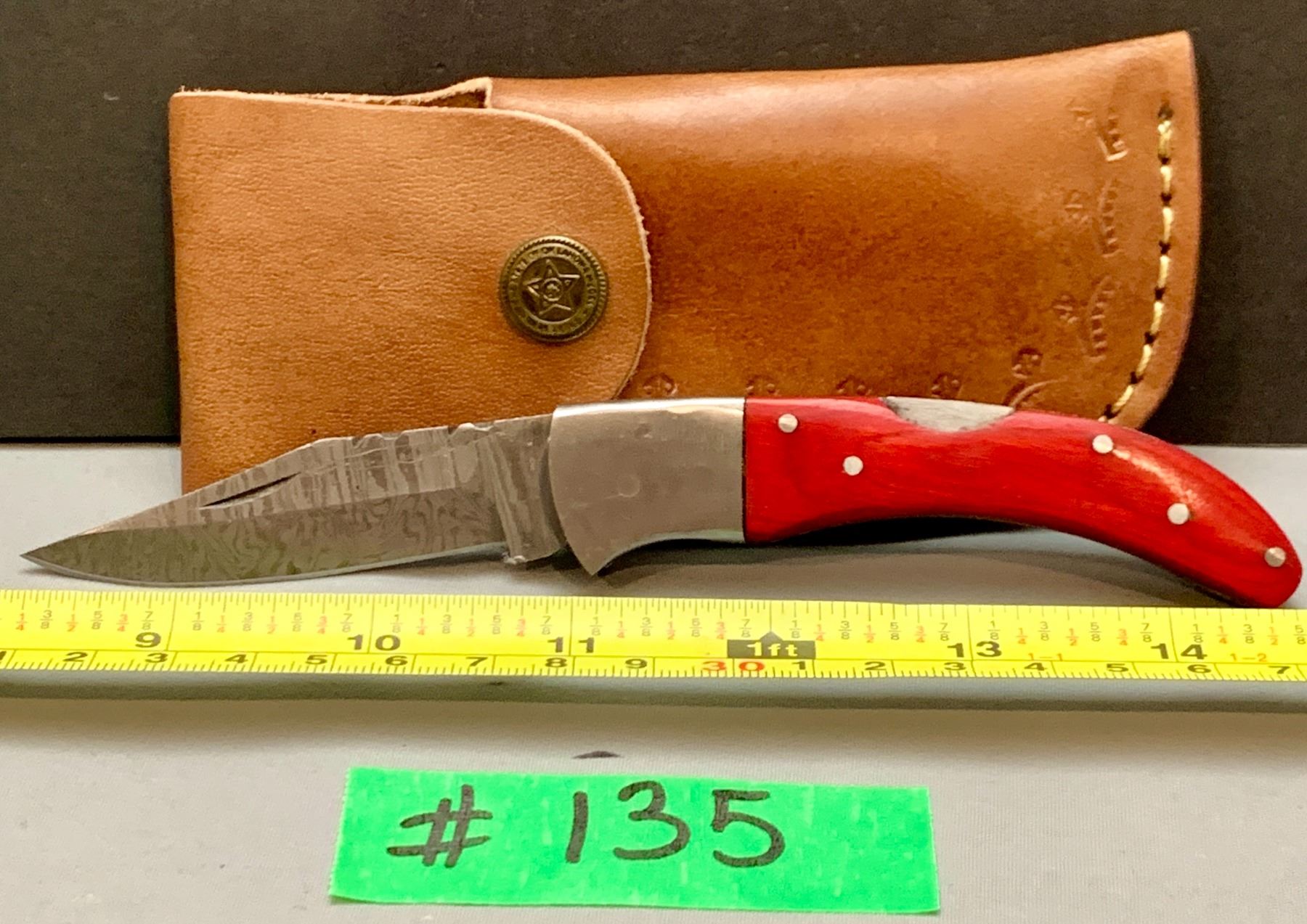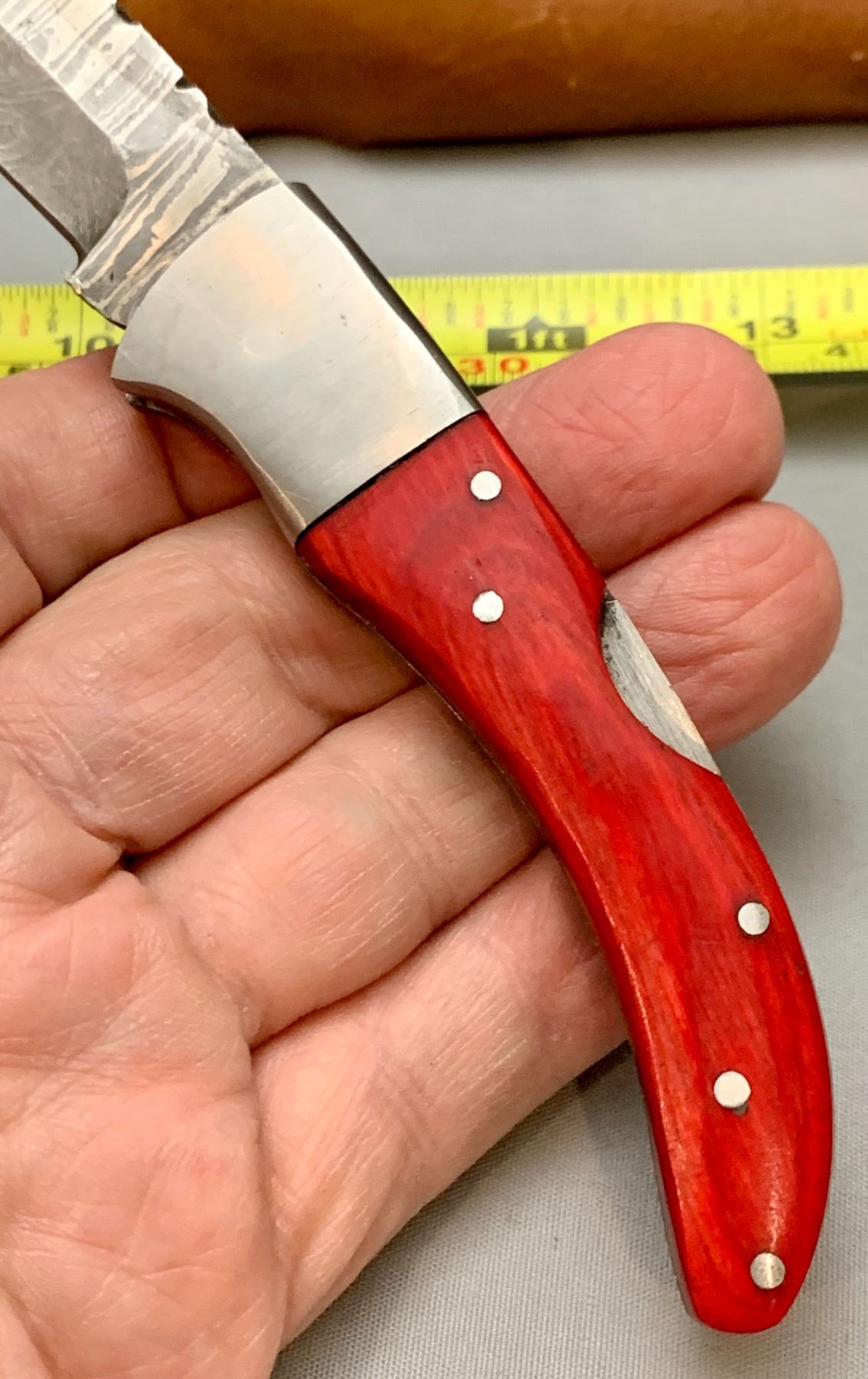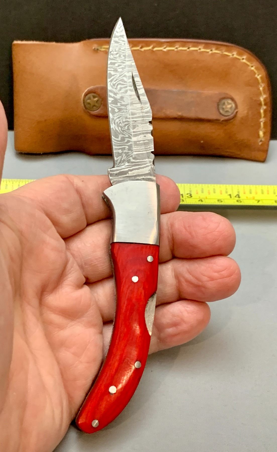 Damascus Steel Custom Handmade 260+ Folds Lock-Blade Knife Red Wood Handle with Leather Sheath
