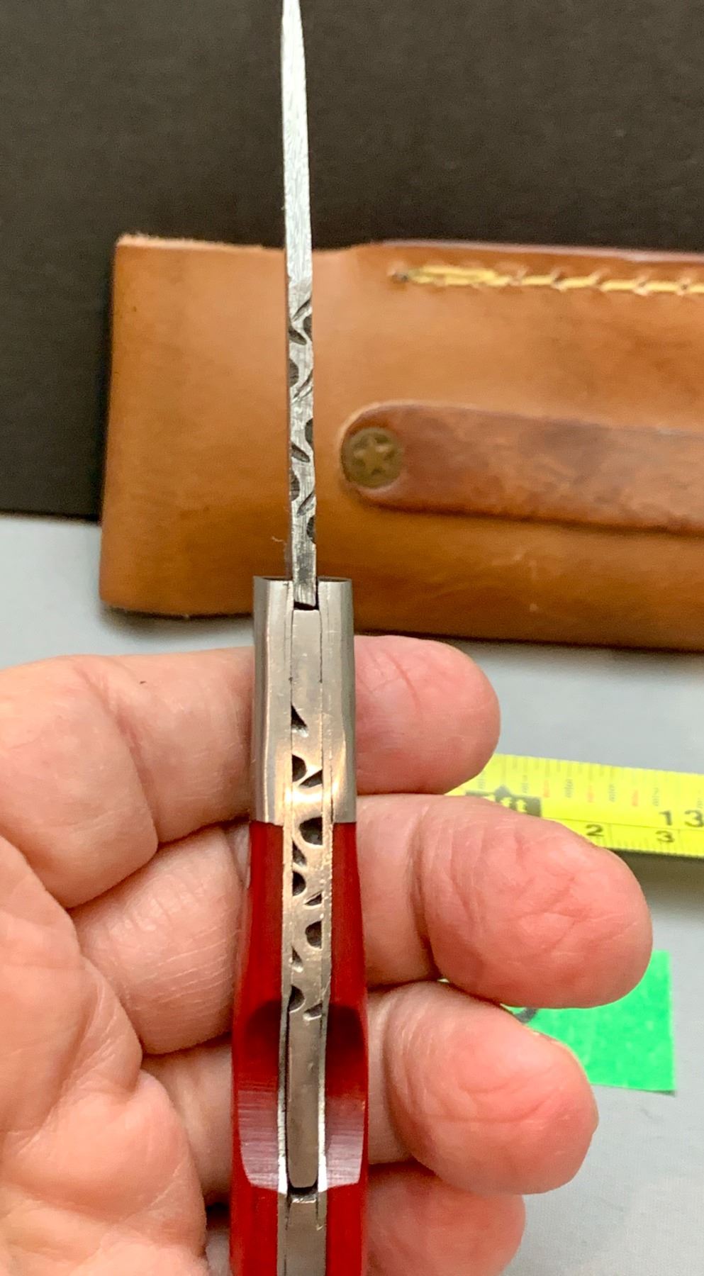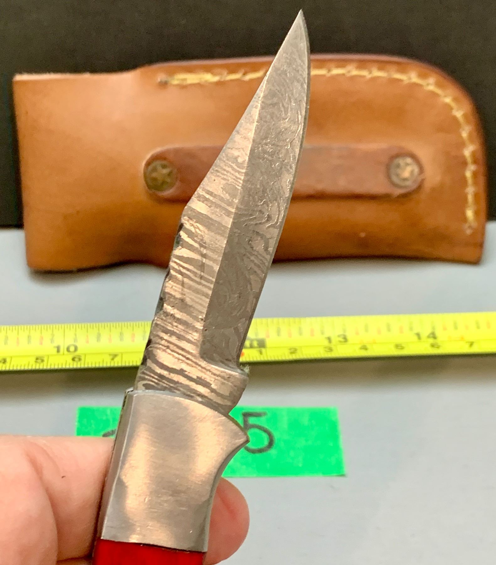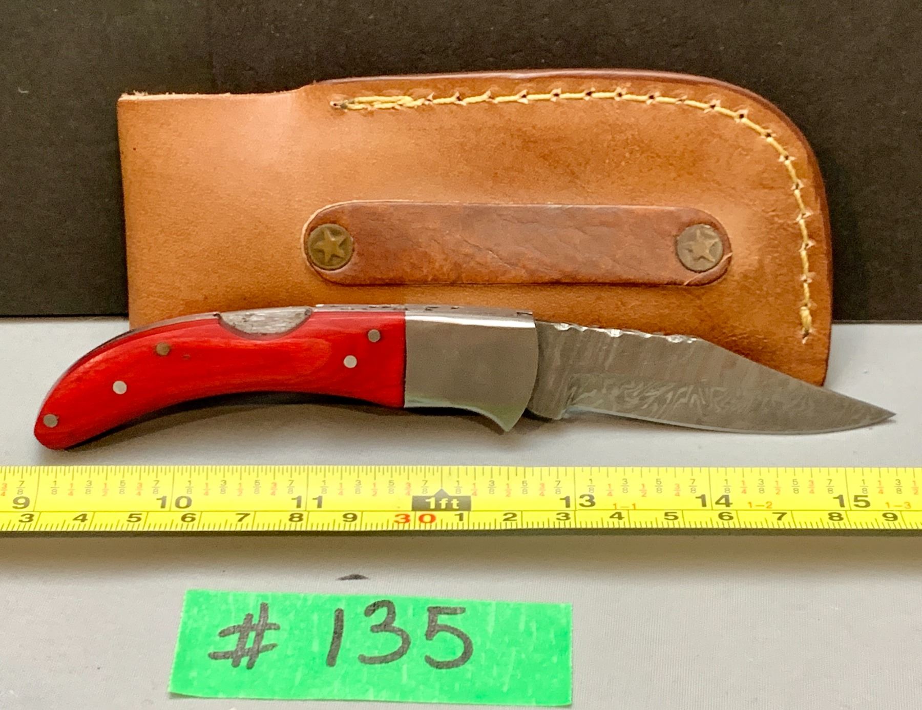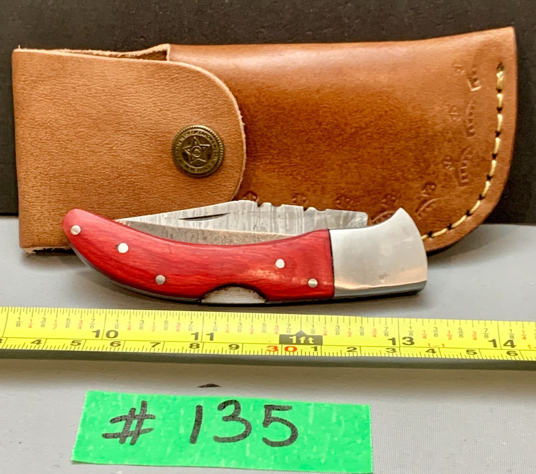 Damascus Steel Custom Handmade 260+ Folds Lock-Blade Knife Red Wood Handle with Leather Sheath