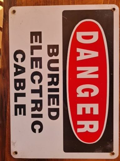 Danger- Buried Electric cable never used sign 14"x10" on metal