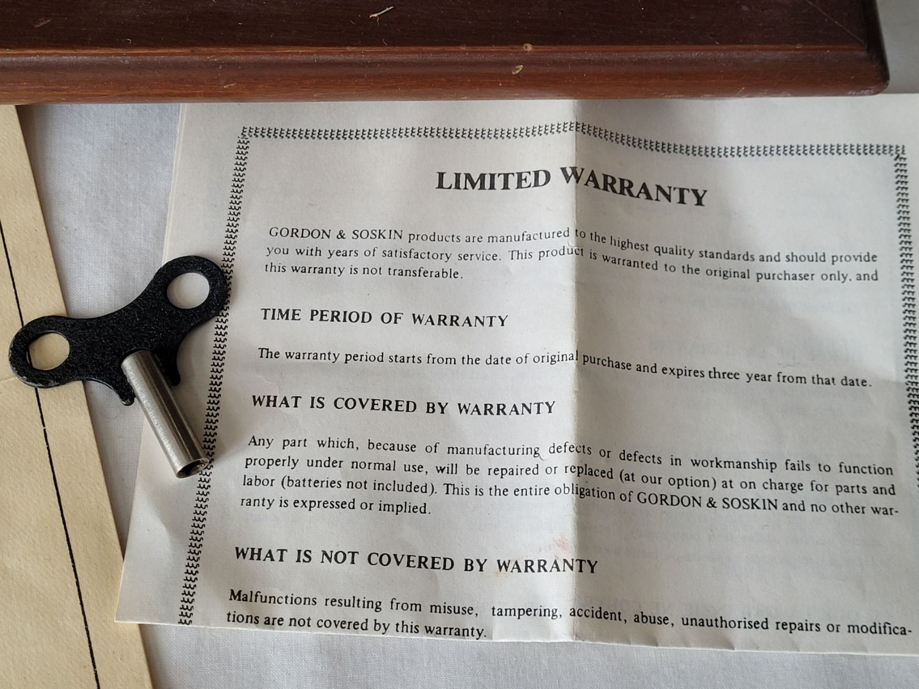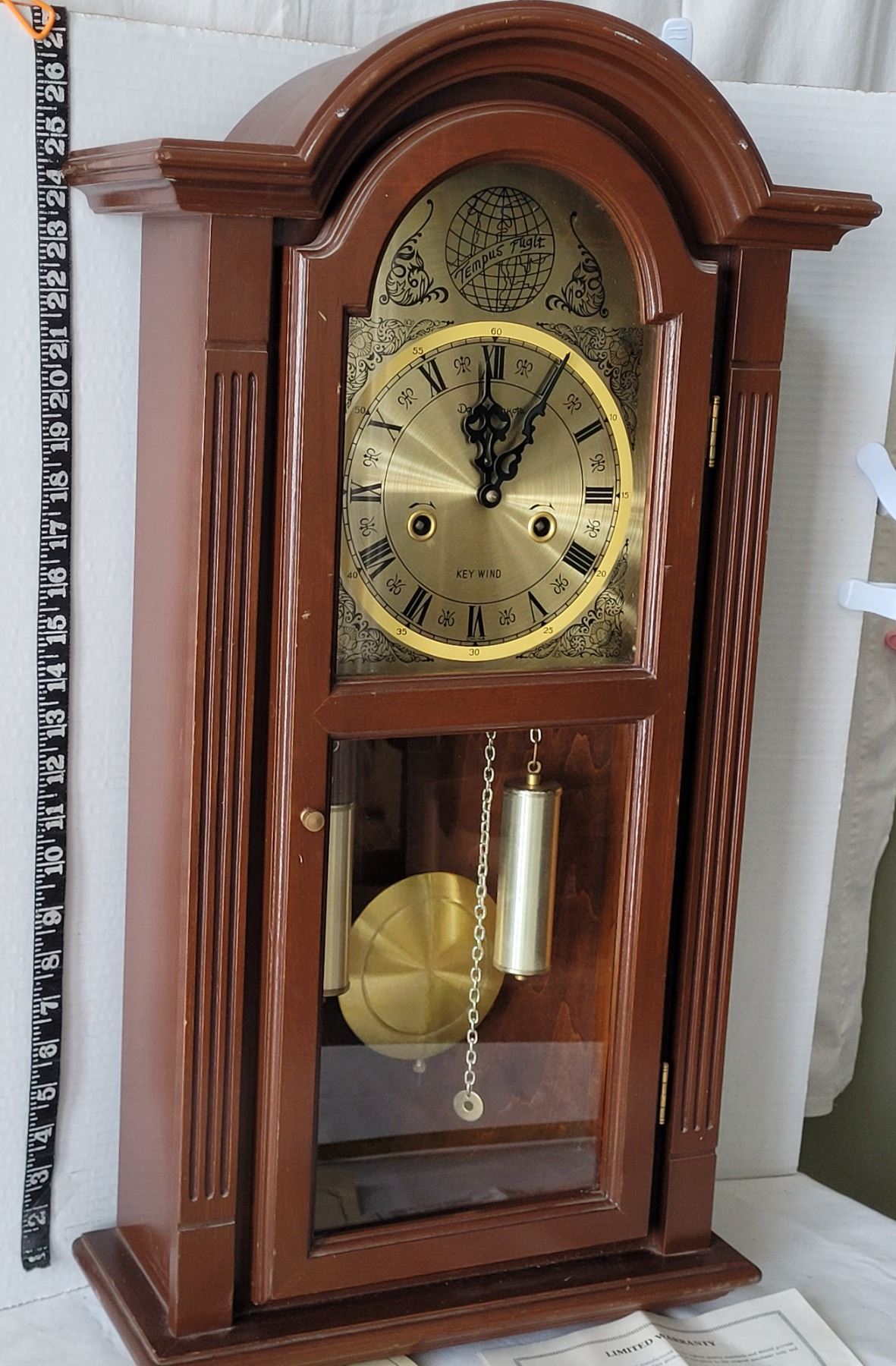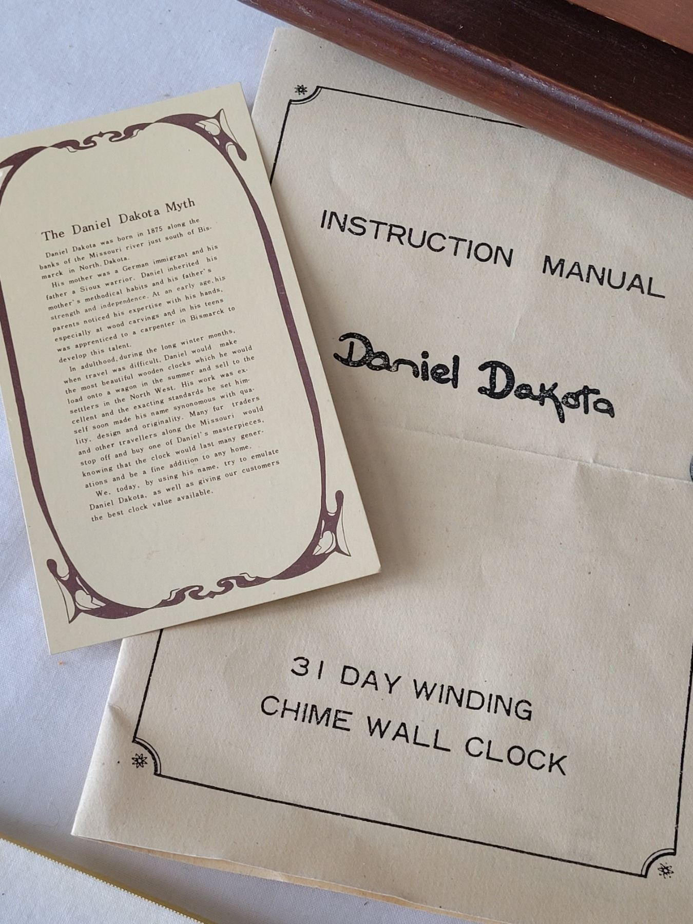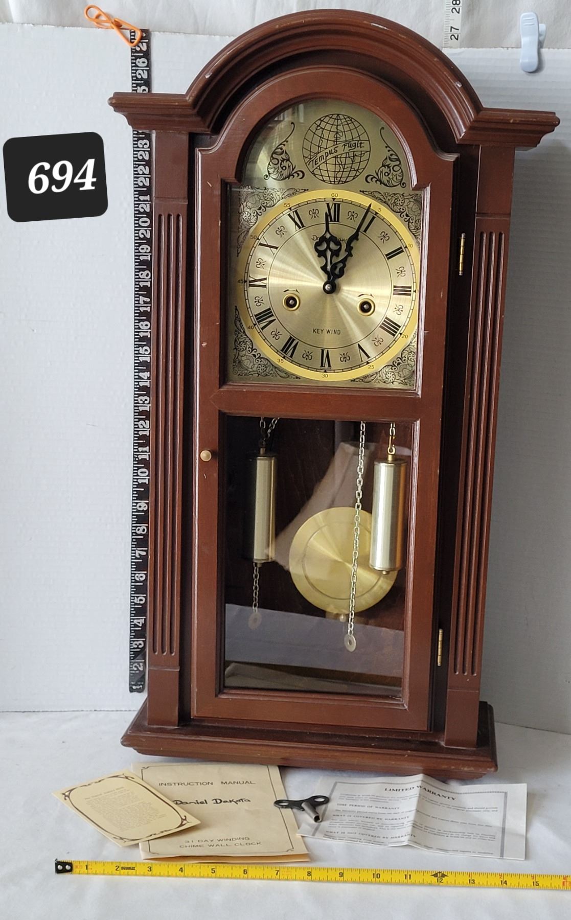 Daniel Dakota, key wind 31 day pendulum chime clock. Wall or Shelf.