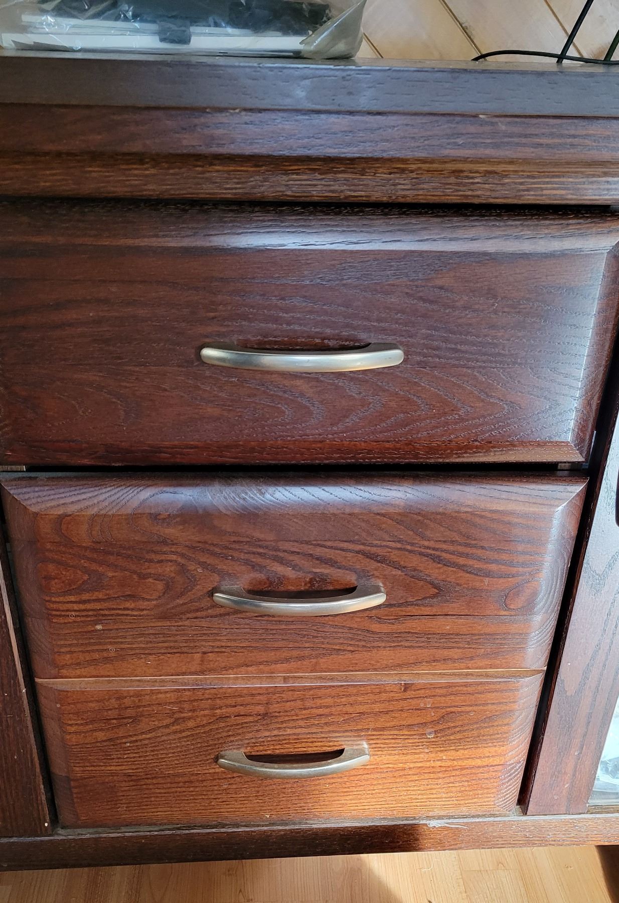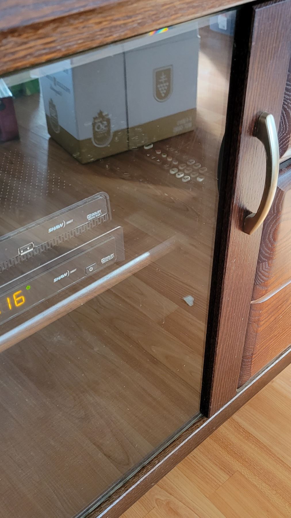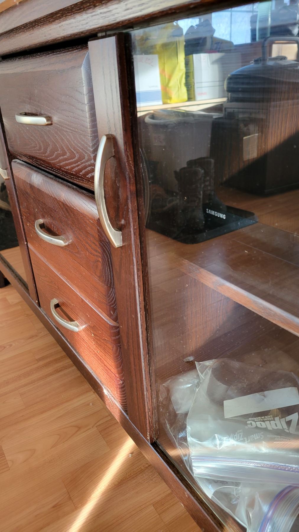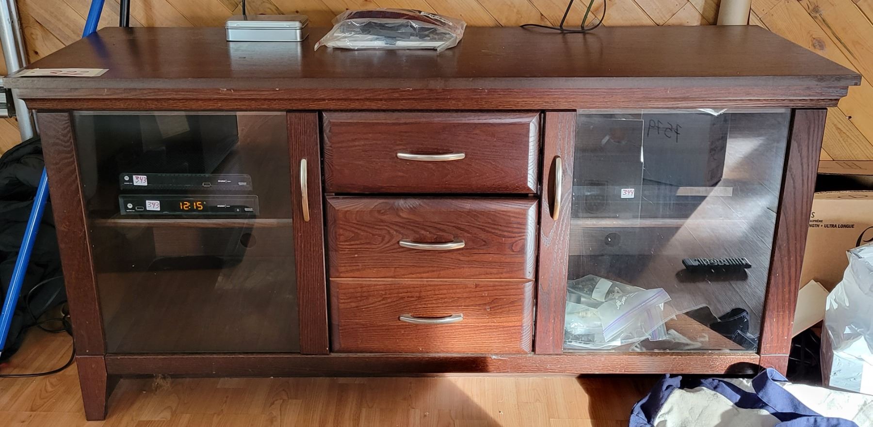 Dark Wood TV Stand with Glass Cabinets (Approx. 57"x20"x28")