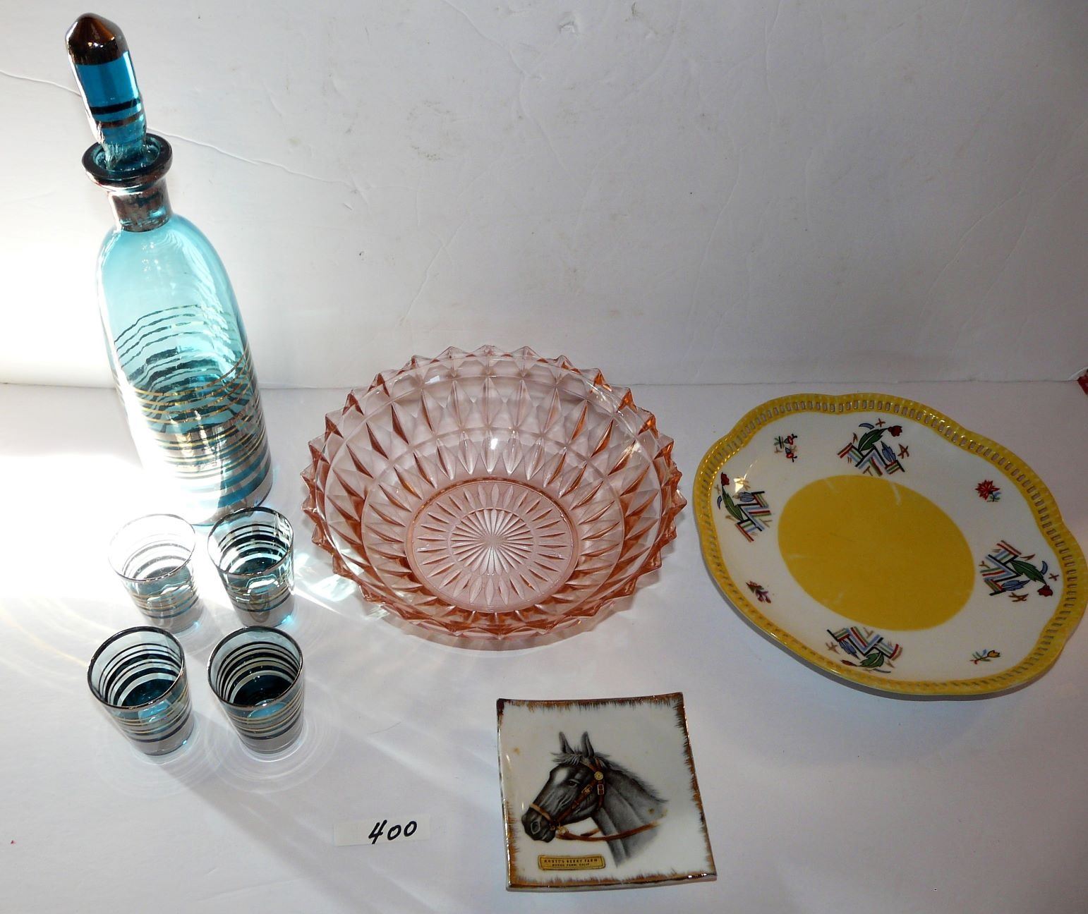 Decanter, Bowl, Plate, Horse Trinket Dish