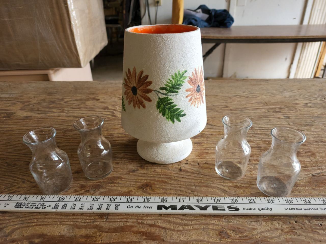 Decorative Handmade Ceramic Flower print vase, with 4 sm glass vases