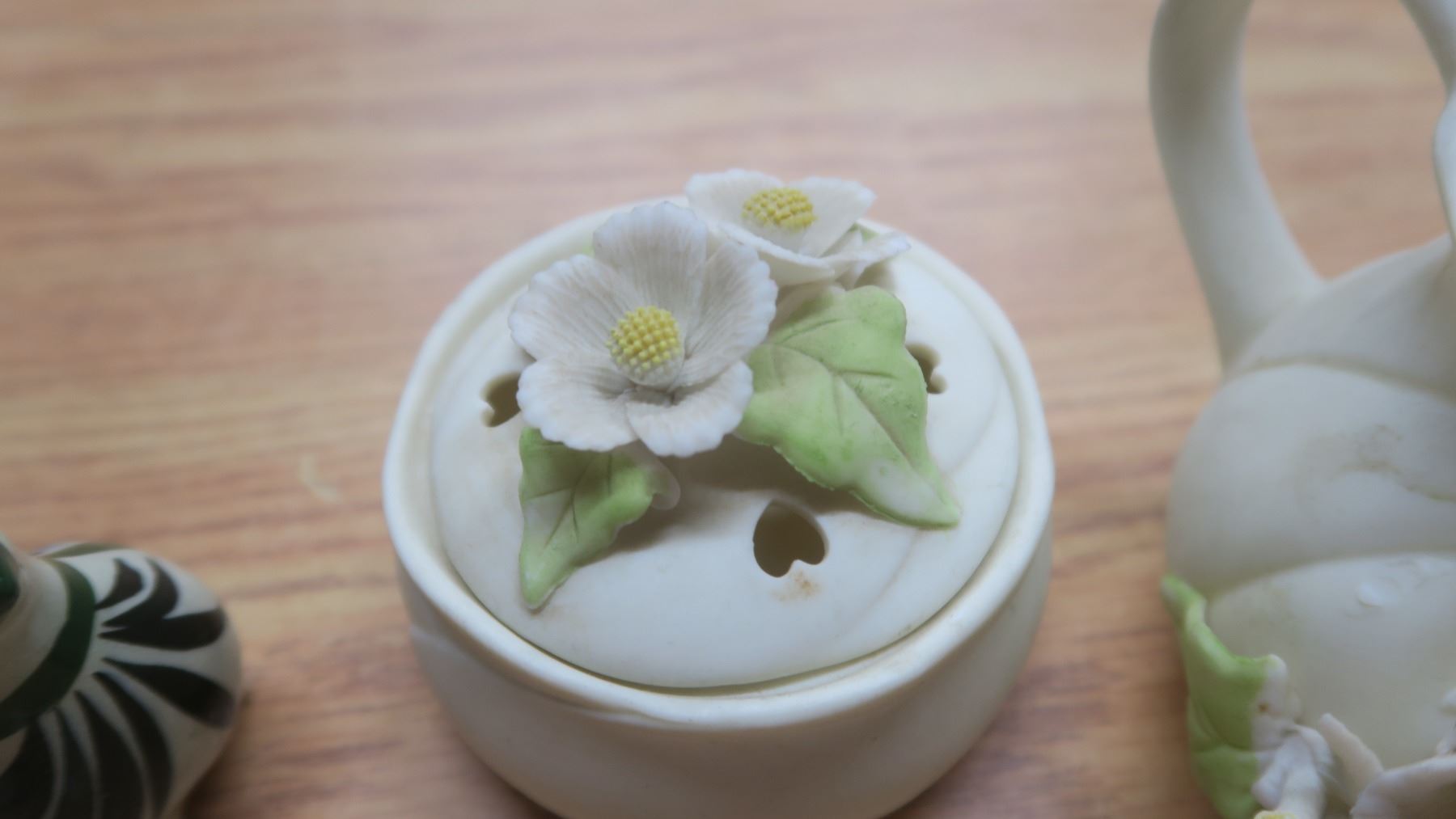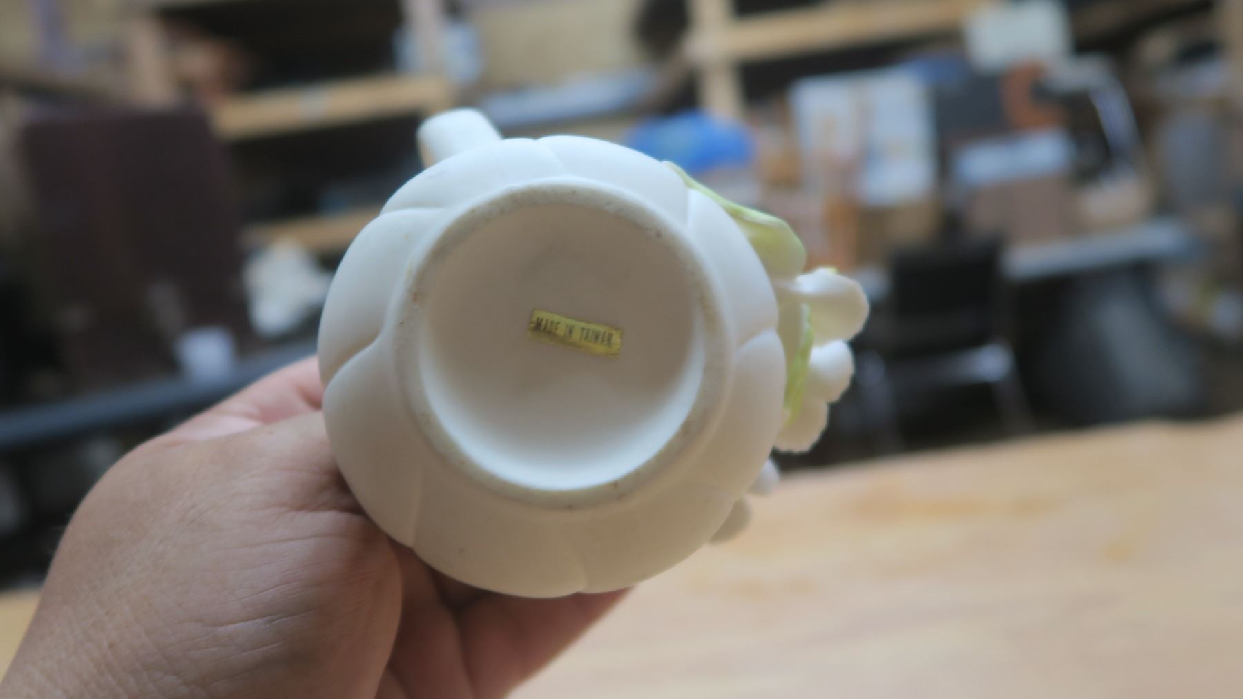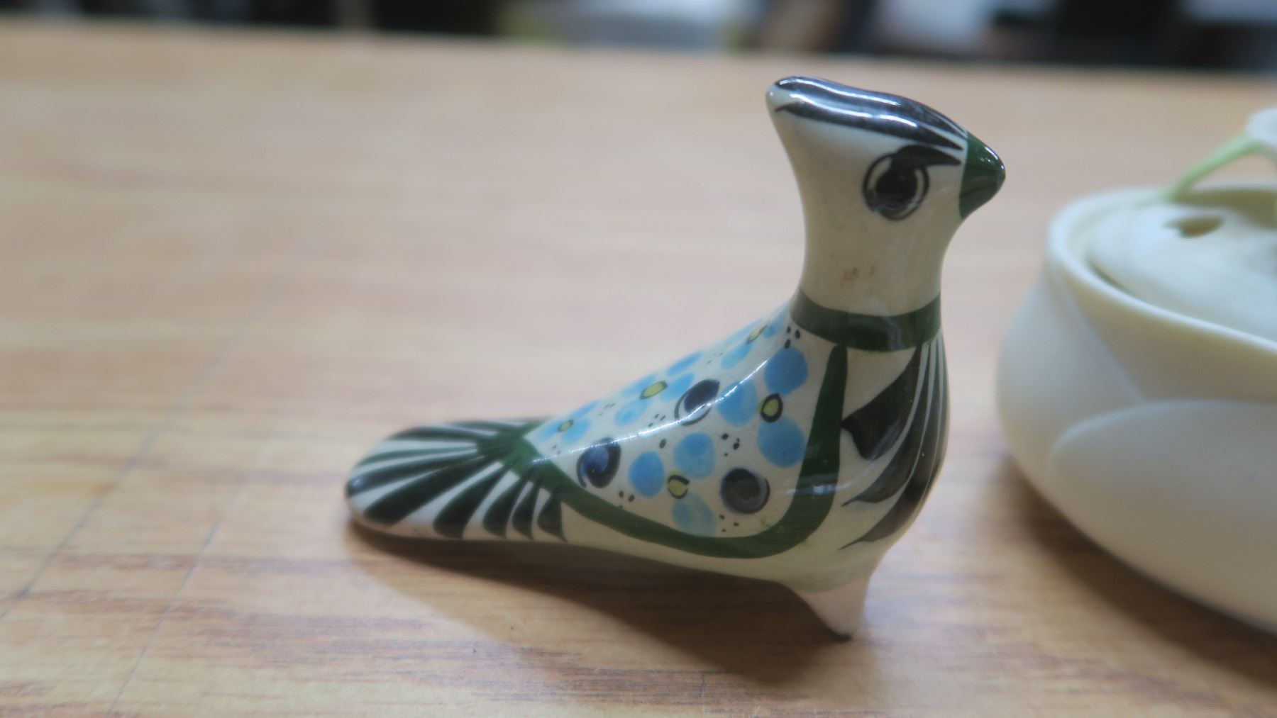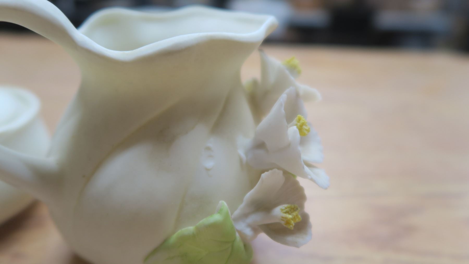 Decorative cream &sugar set with flowers. Ceramic bird.