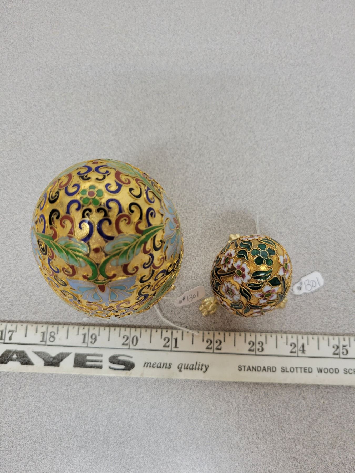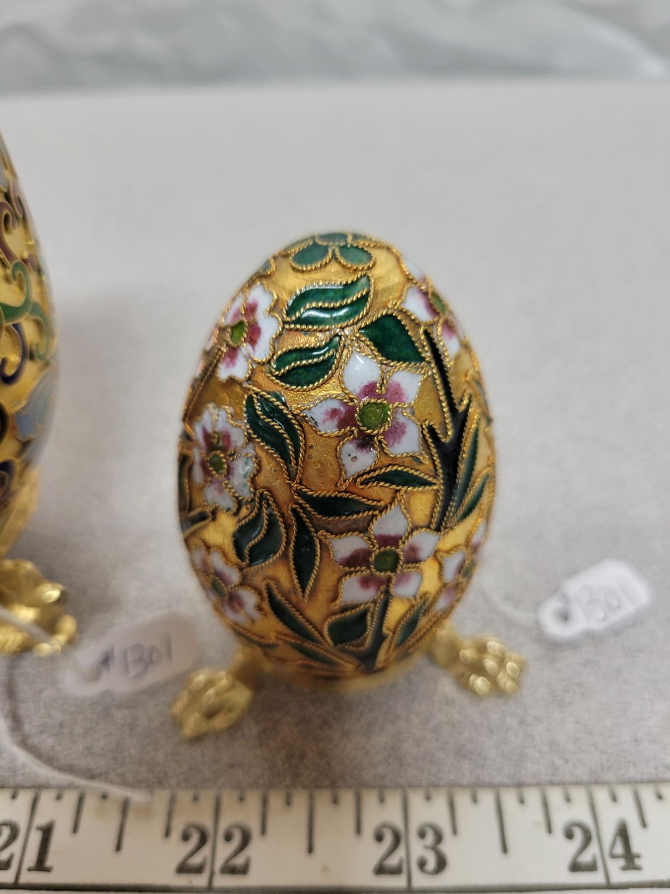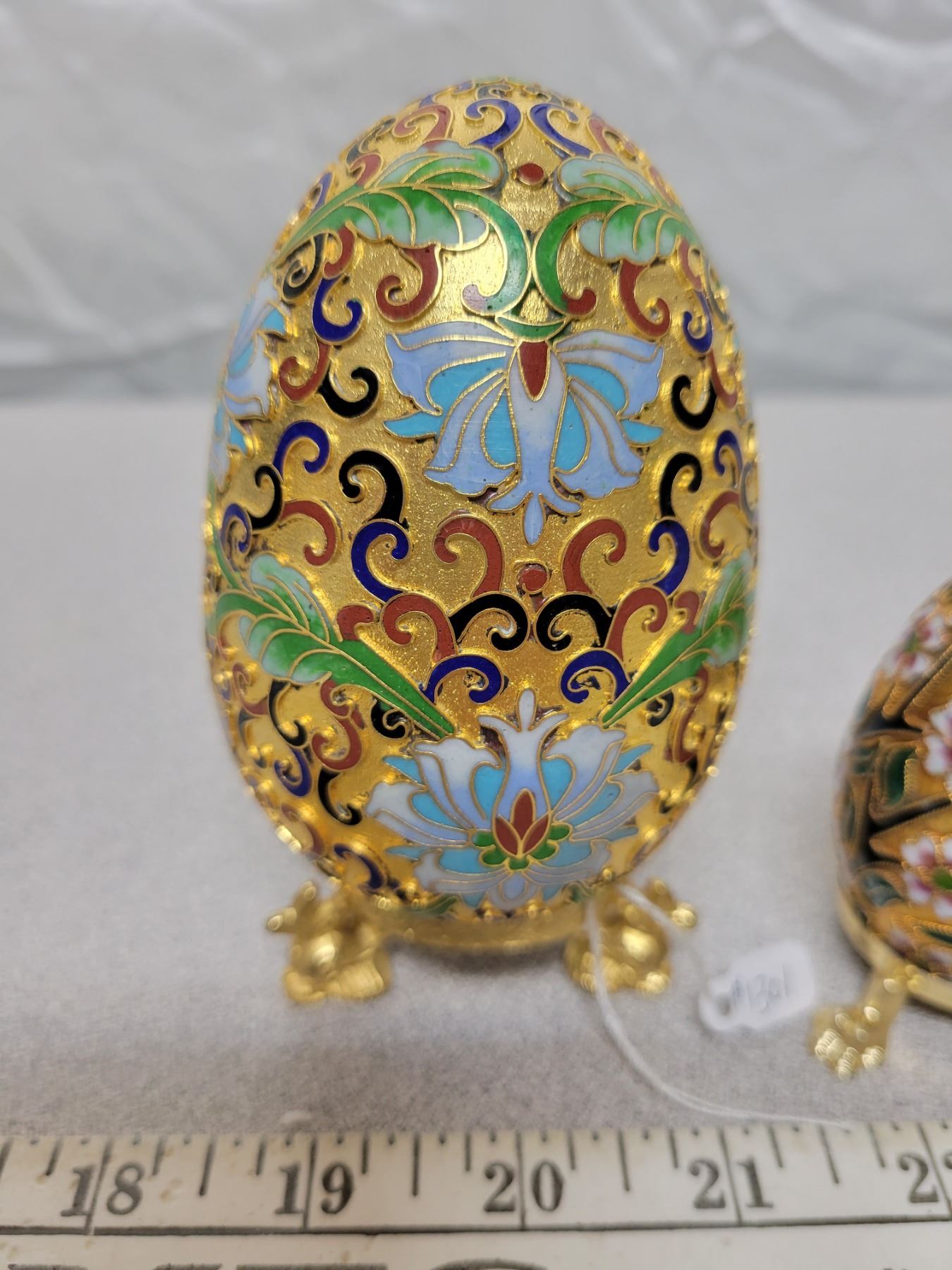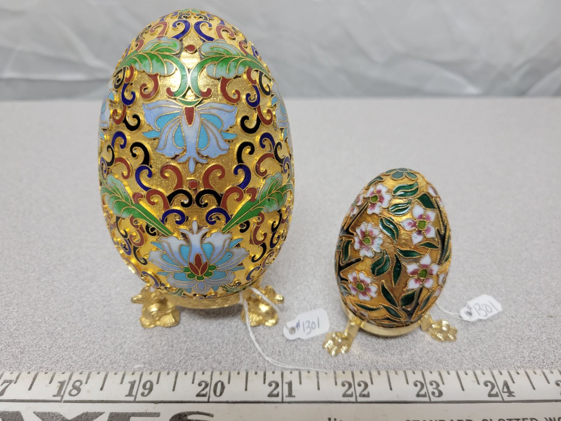 Decorative metal Easter eggs on stands (2)