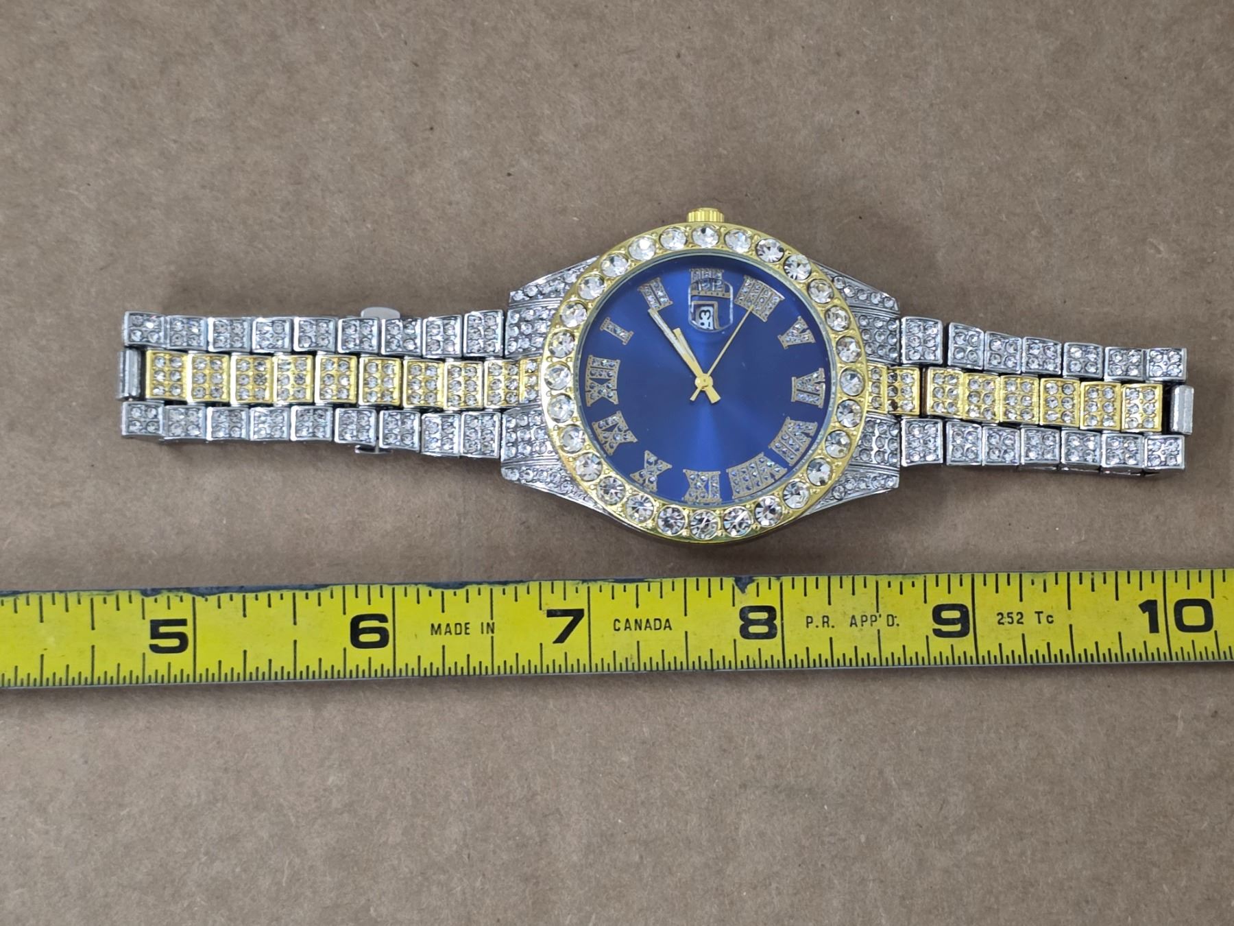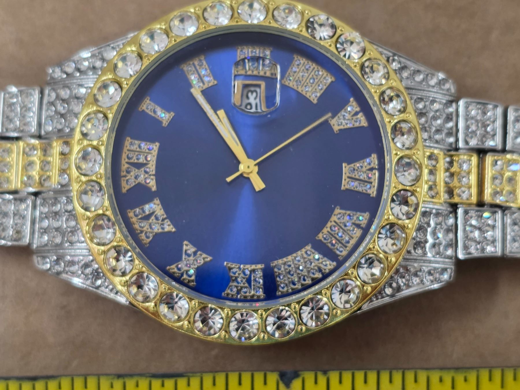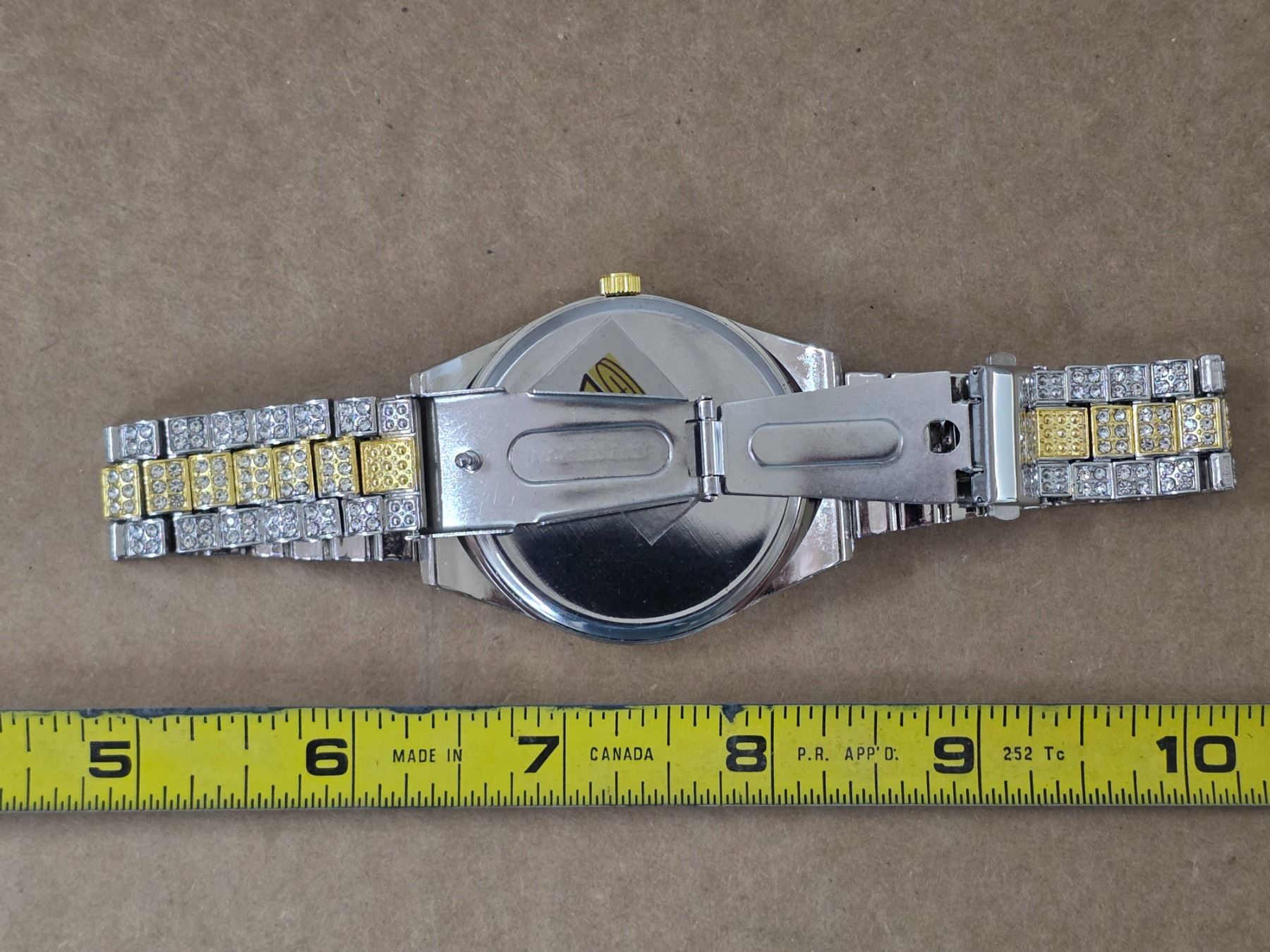 Decorative watch with fake diamonds and gold colored- works