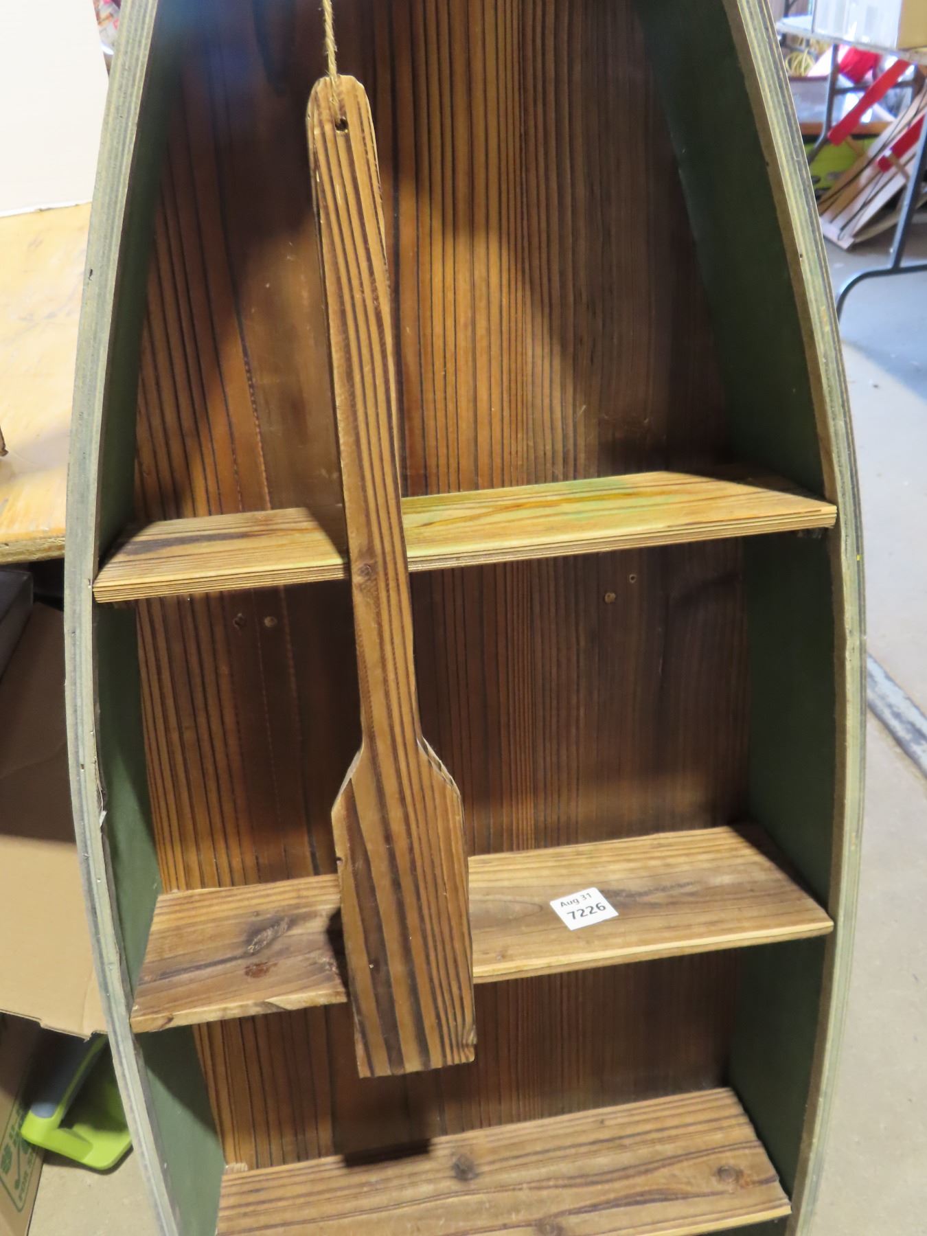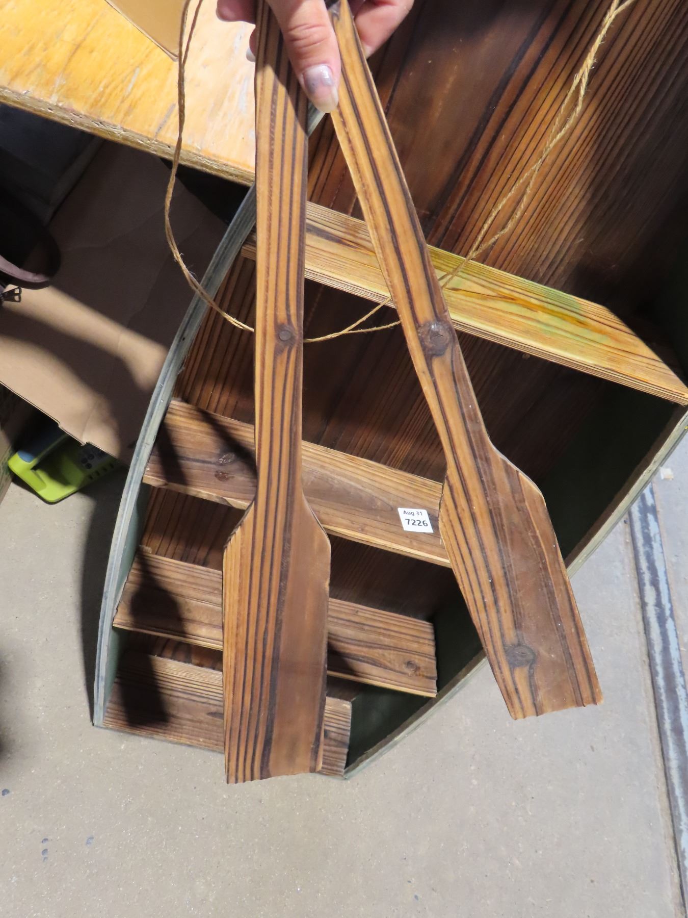 Decorative wooden boat with paddles shelf- 48"x16"