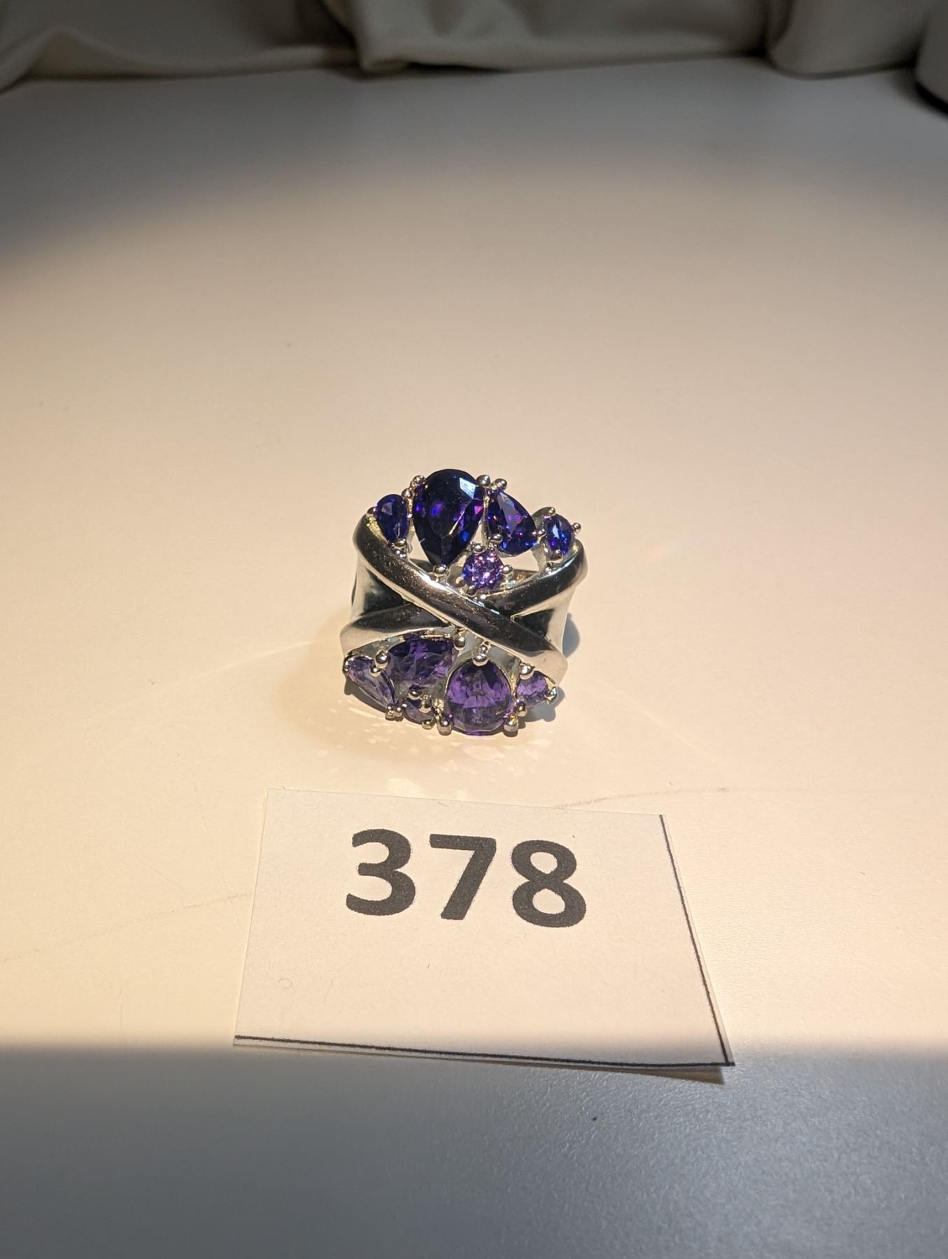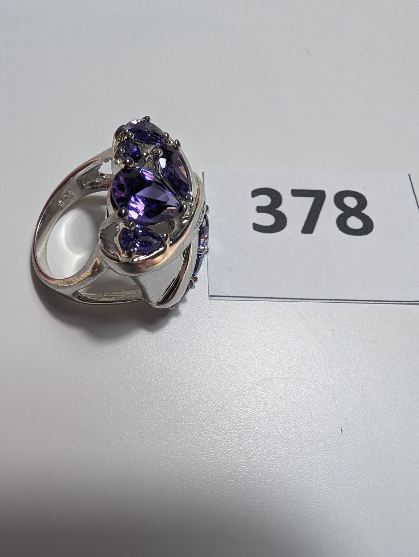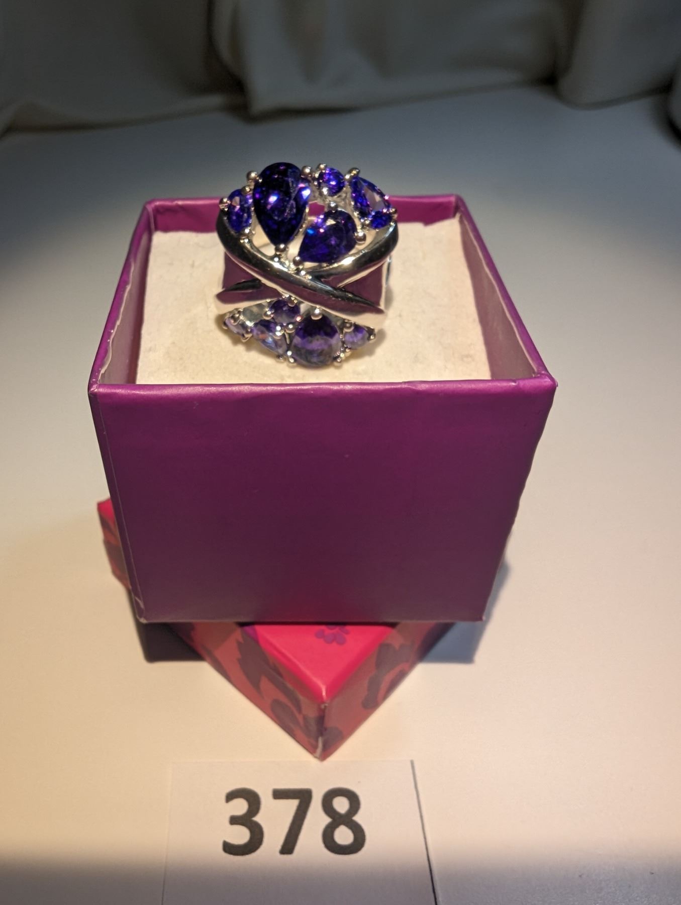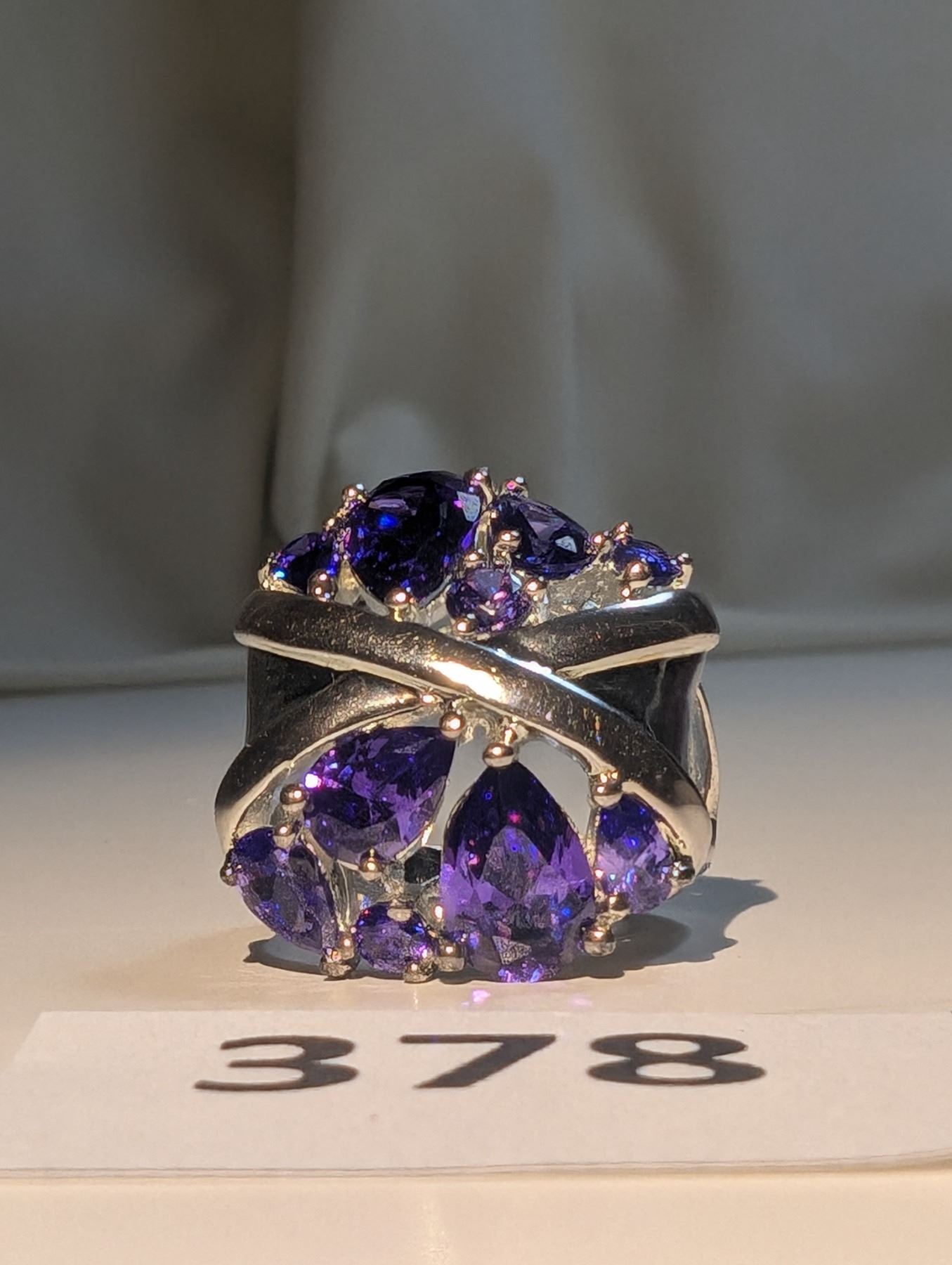 Deep purple stone and 925 silver ring. Size 6-1/4 to 6-1/2