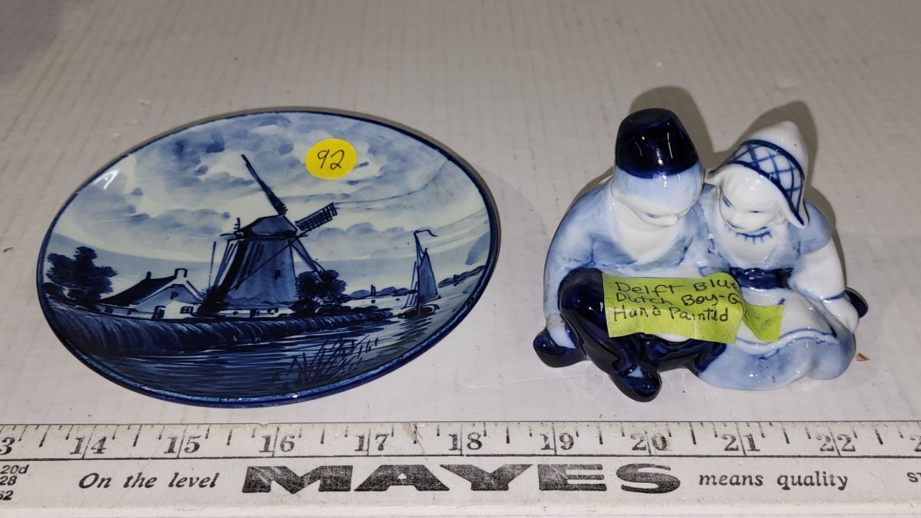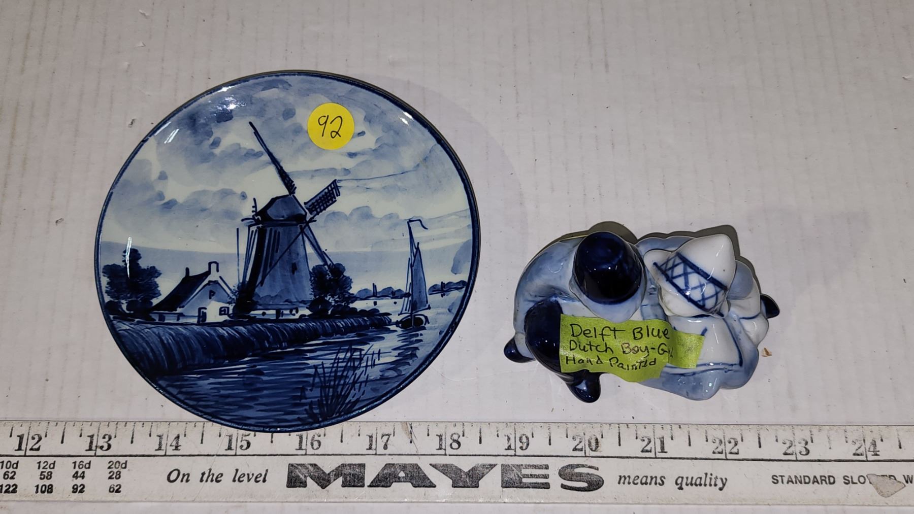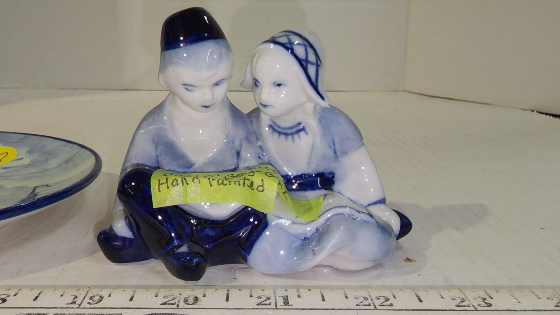 Delft Blue Holland Plate; Dutch Boy & Girl Figurine - Holland