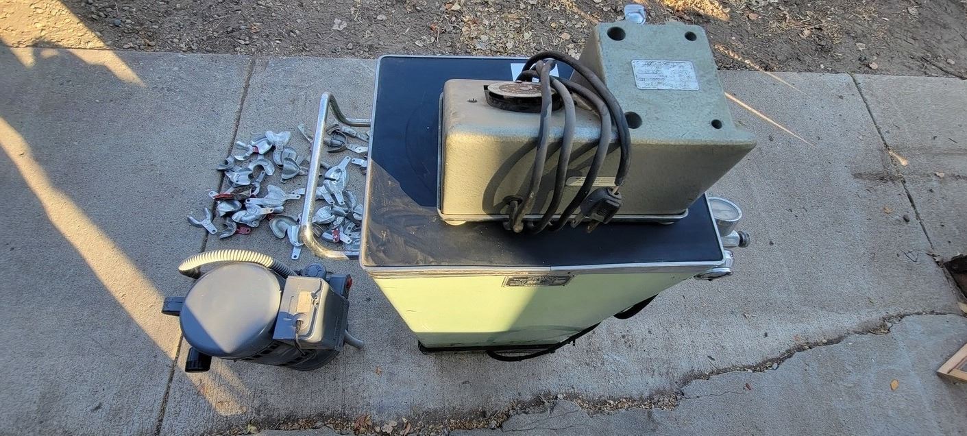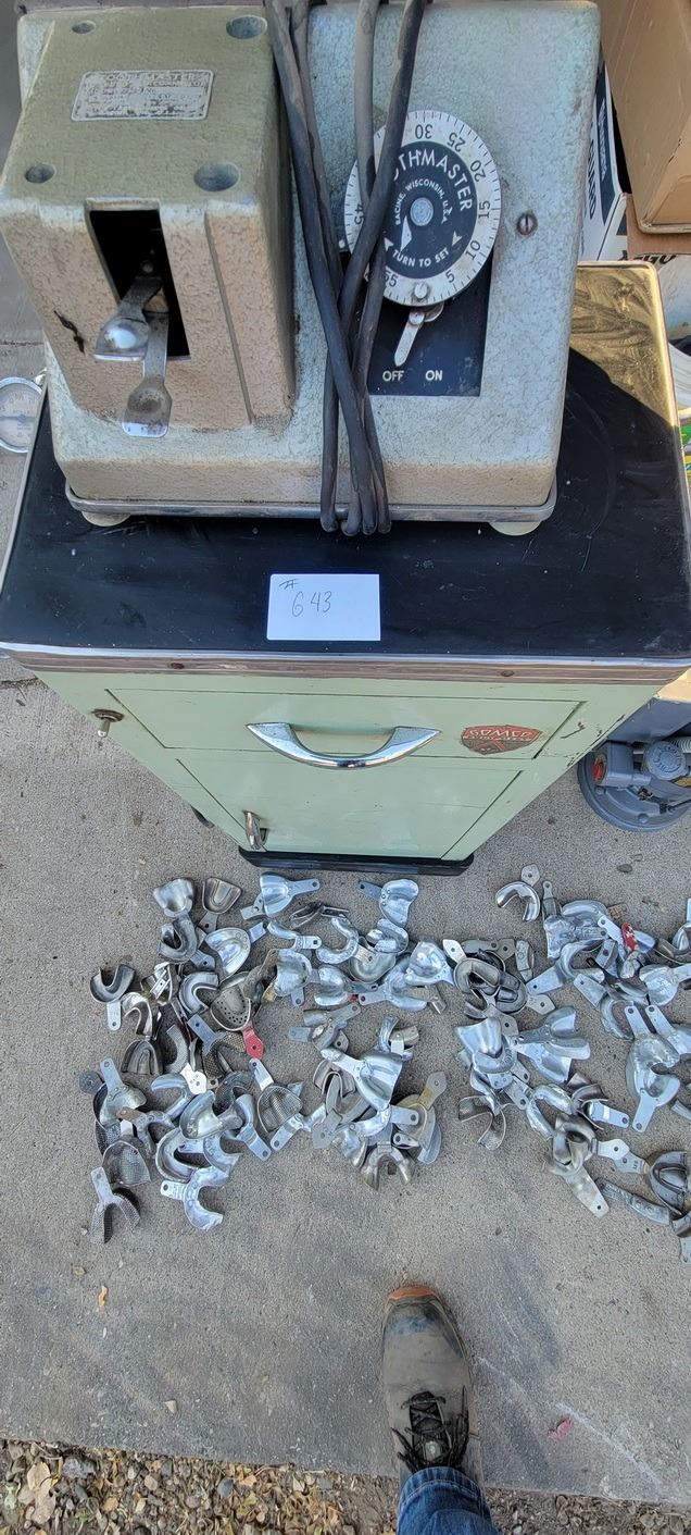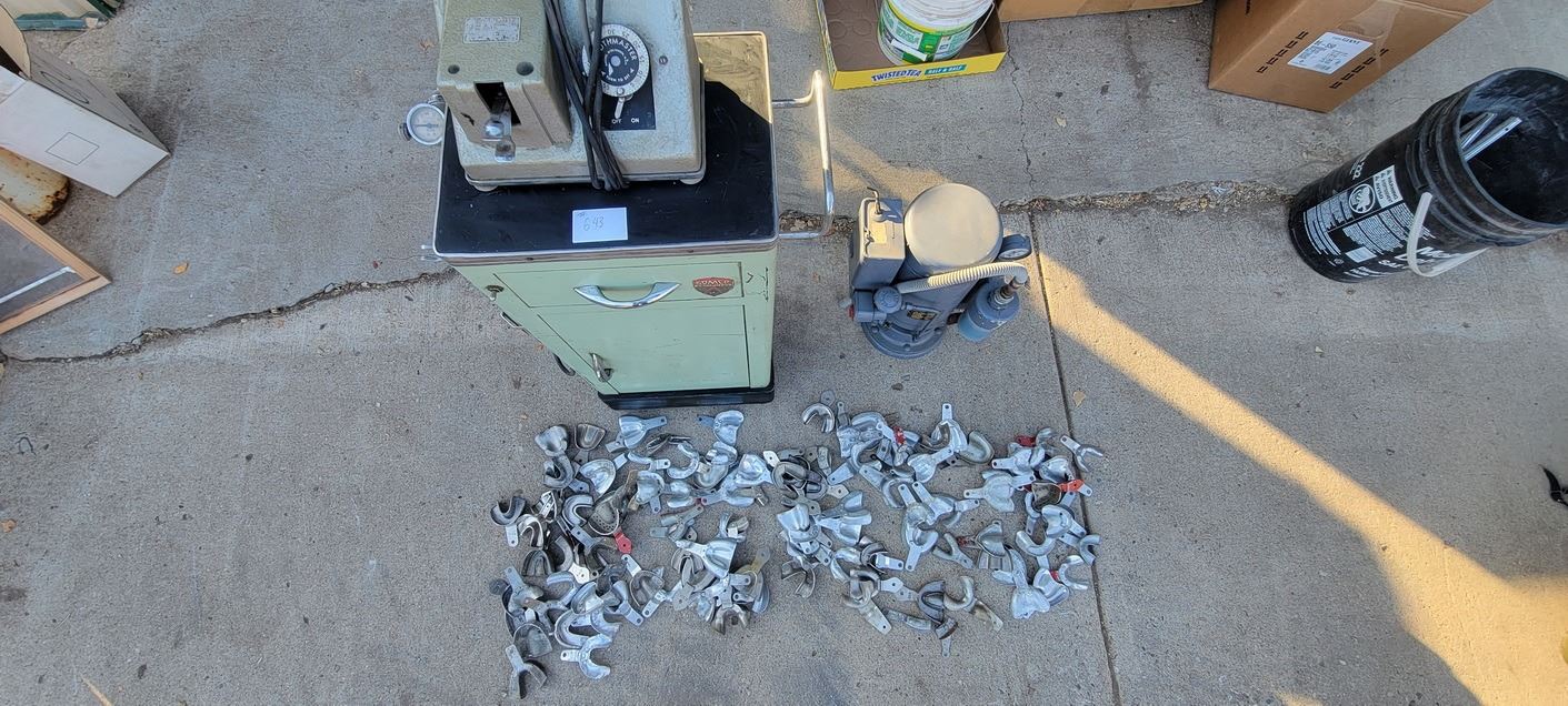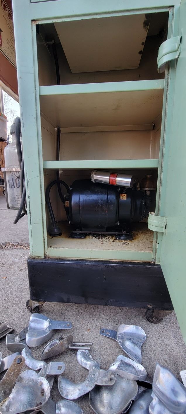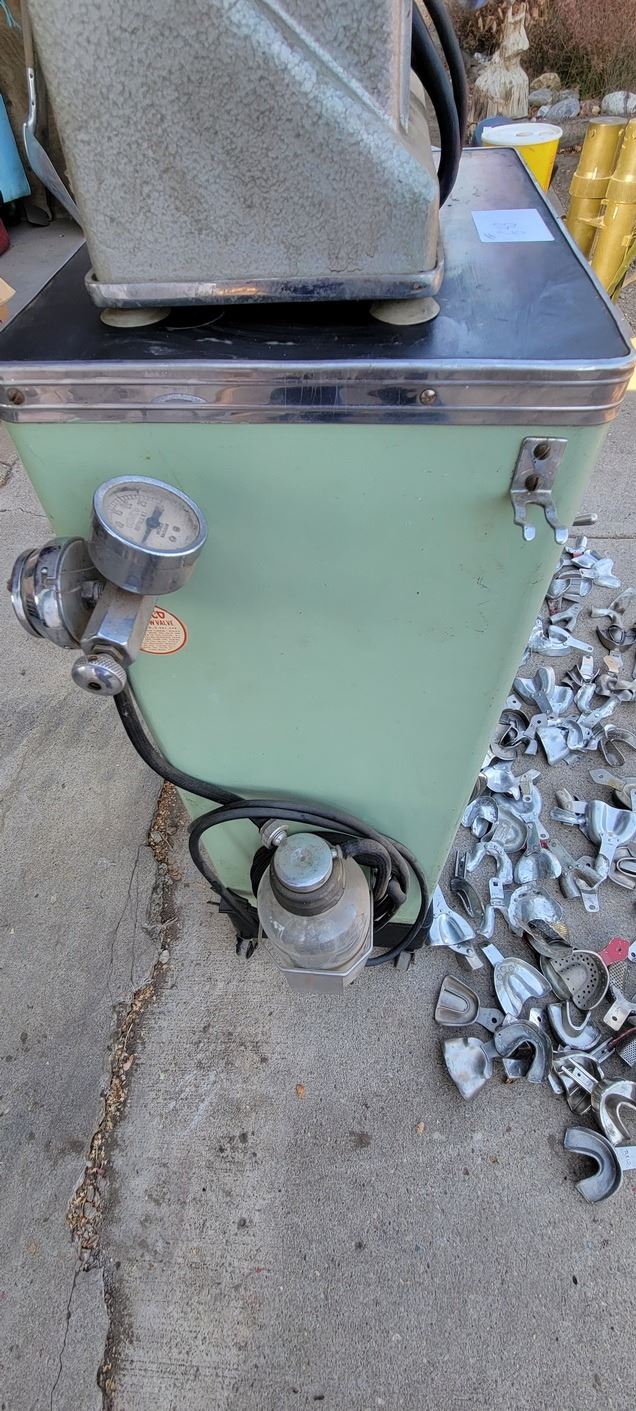 Dental Suction Units x 2 (Cabinet model moteo was rewound in 1979) w numerous trays for taking impressions (molds)