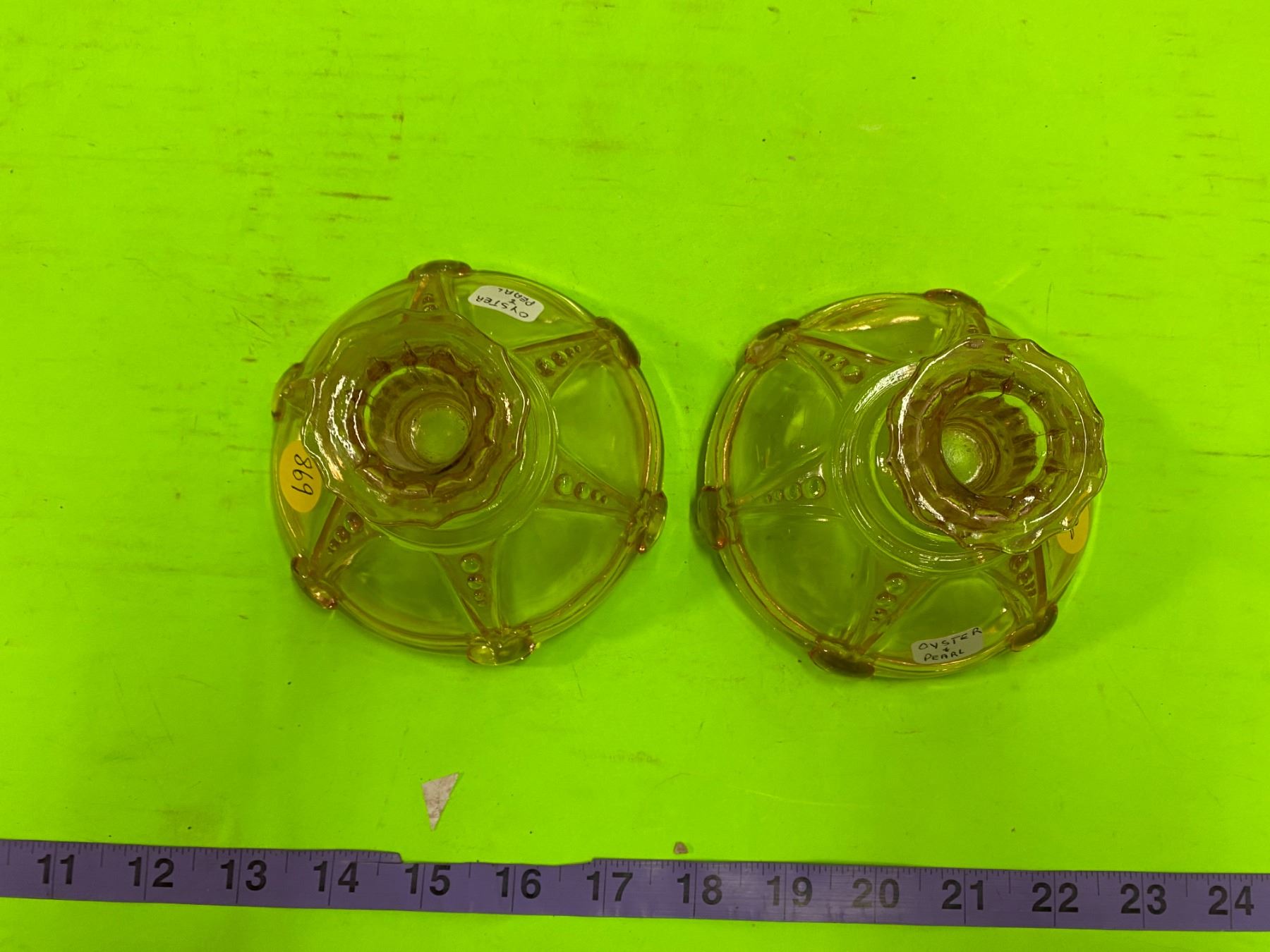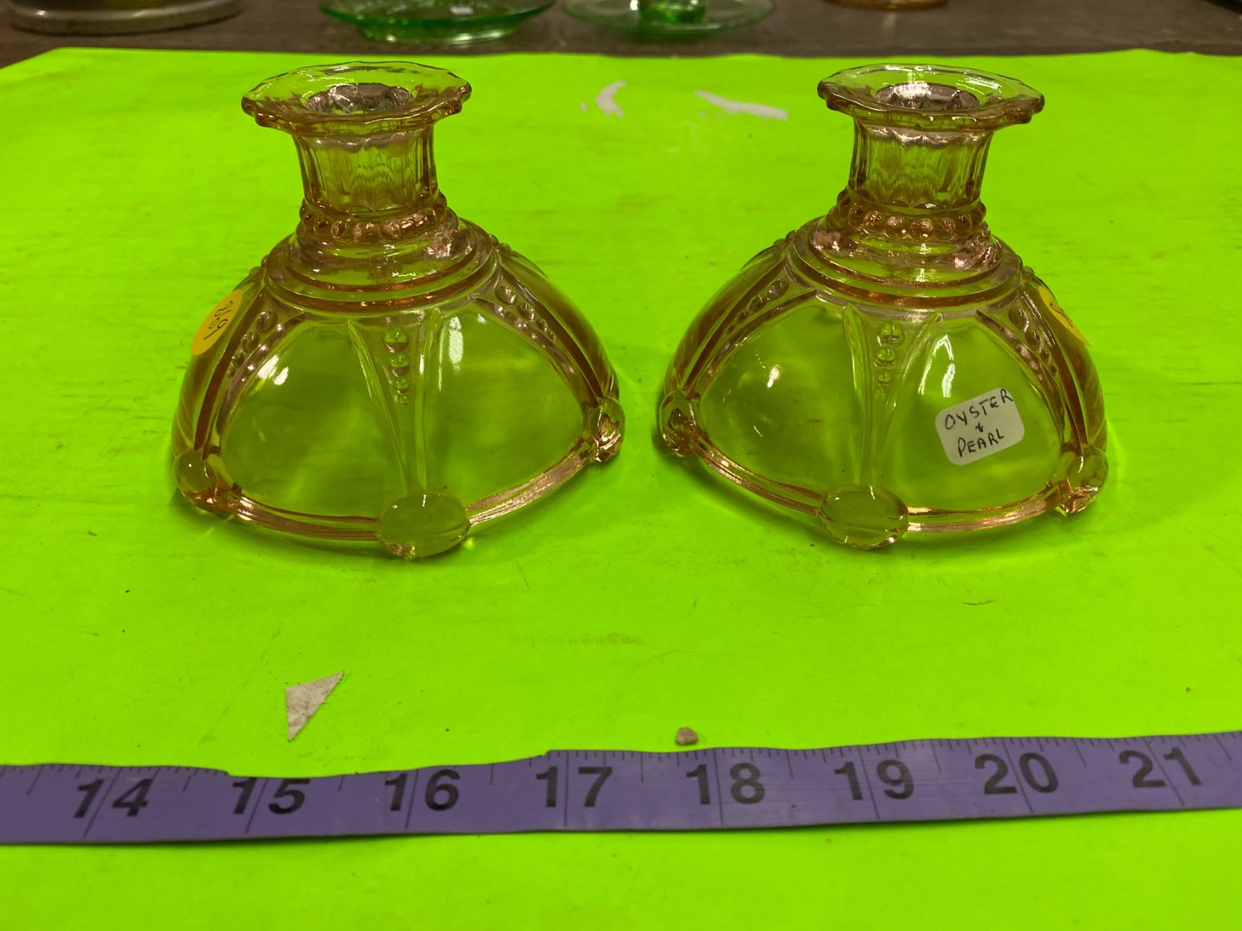 Depression Glass Candle Holders ( Oyster & Pearl)