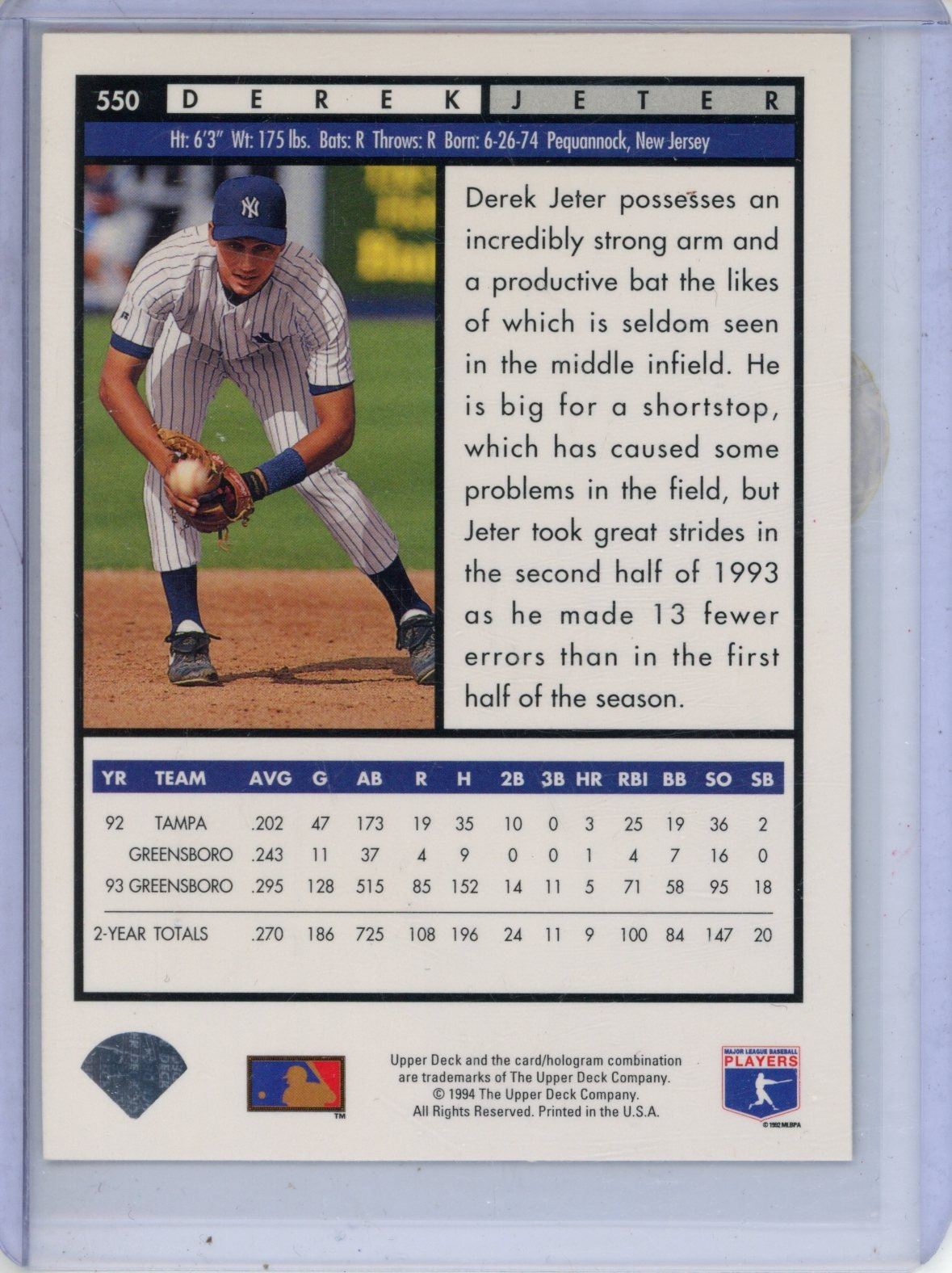 Derek Jeter Top Prospects - 1994 Upper Deck Card #550.