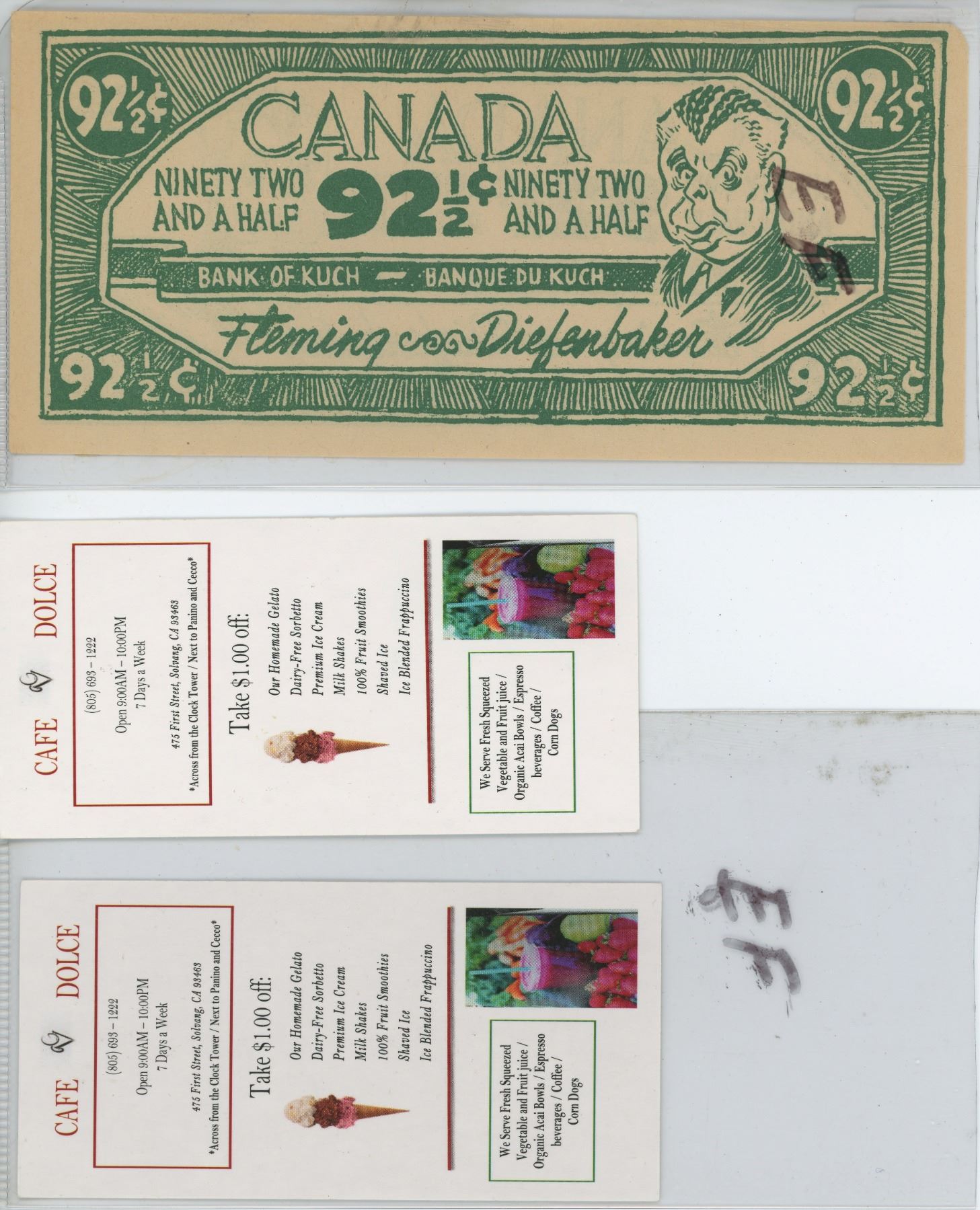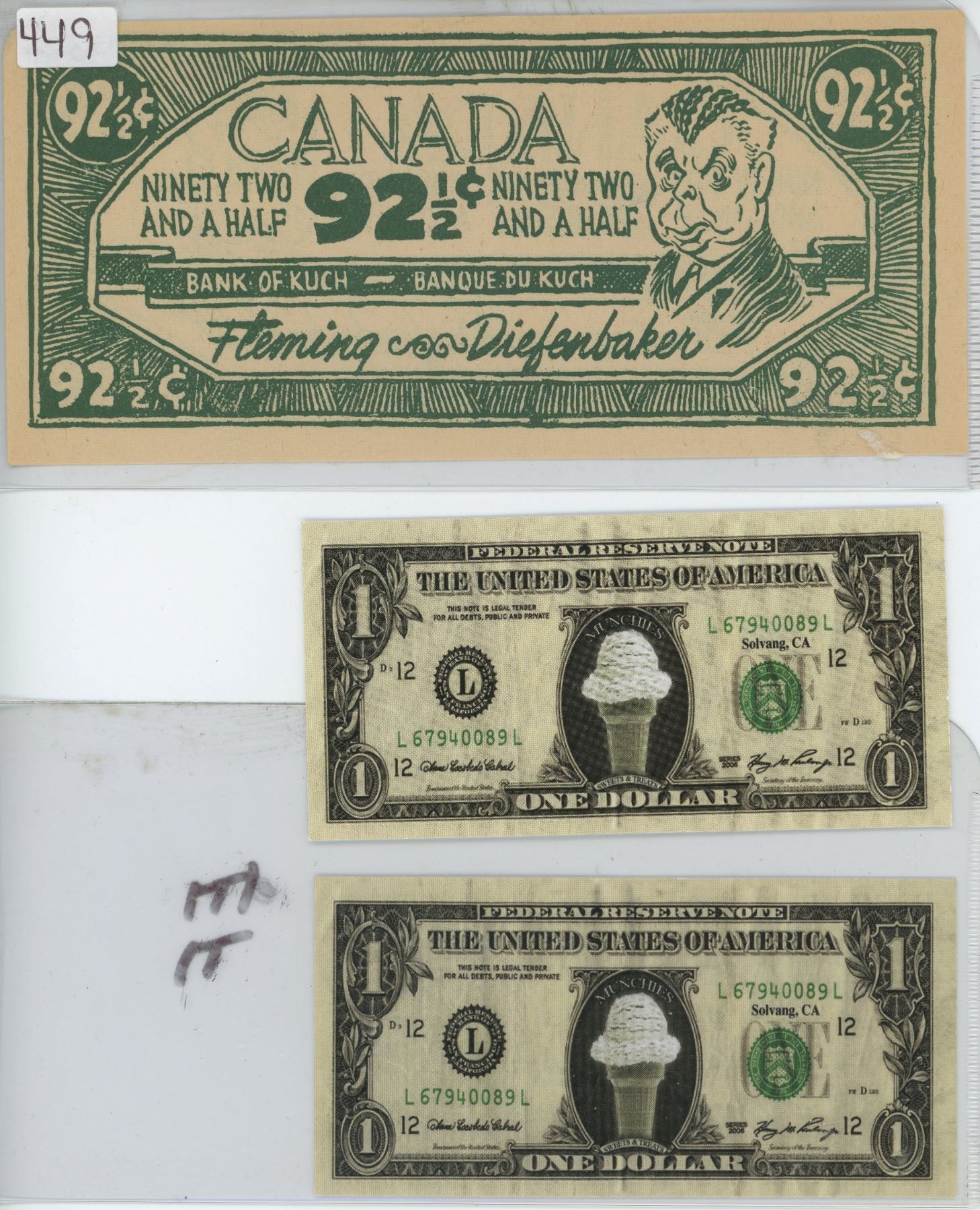 Diefibaker deflated dollar and 2-american dollar off coupons,3- bills