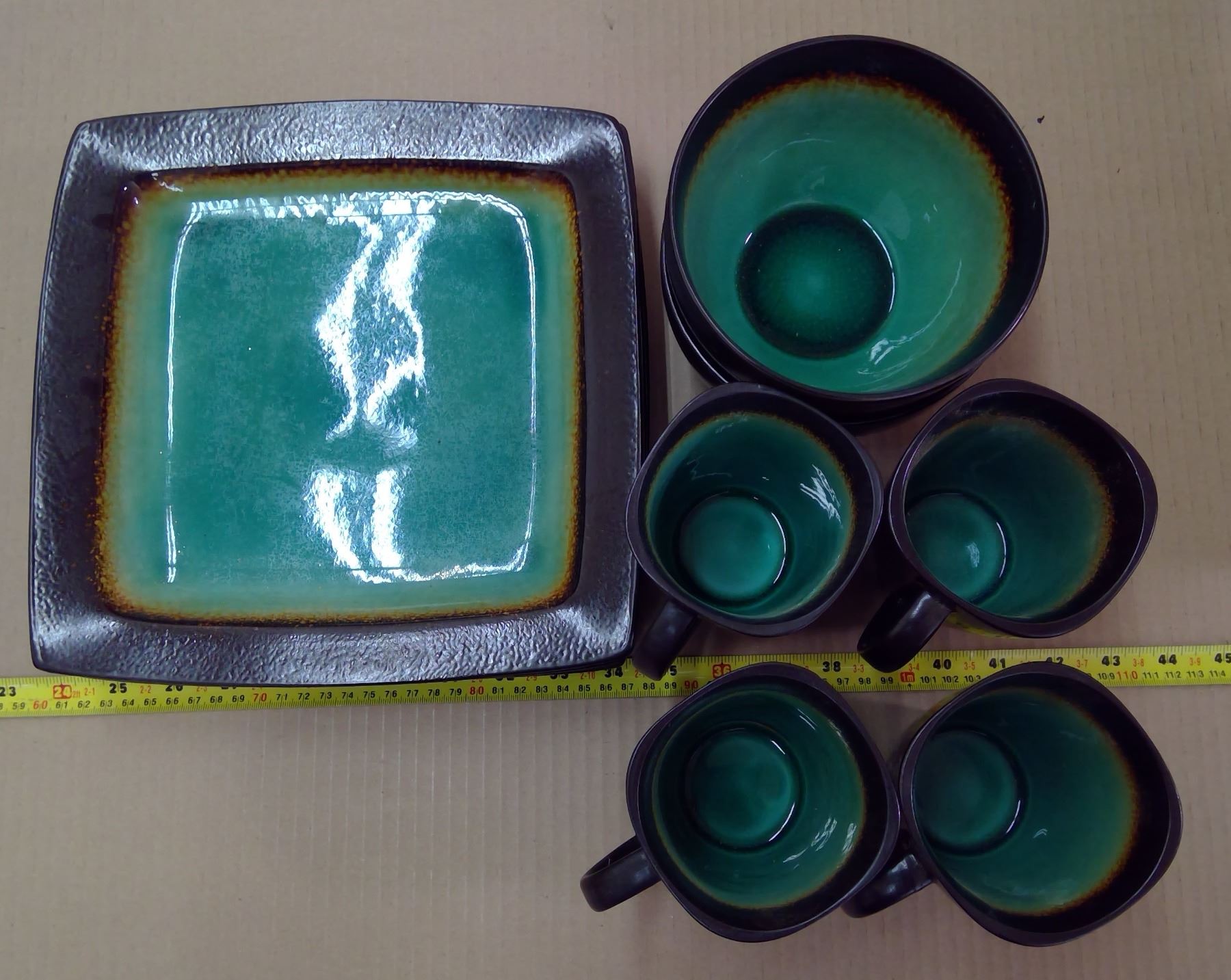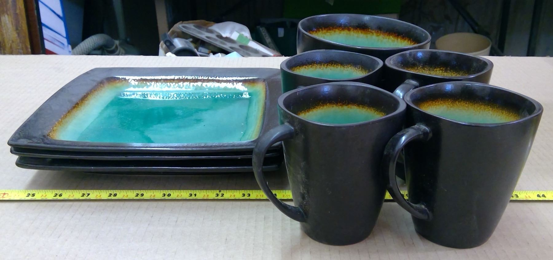 Dishes - Cobalt Blue & Brown - 4 Mugs, 3 Plates, 2 Bowls