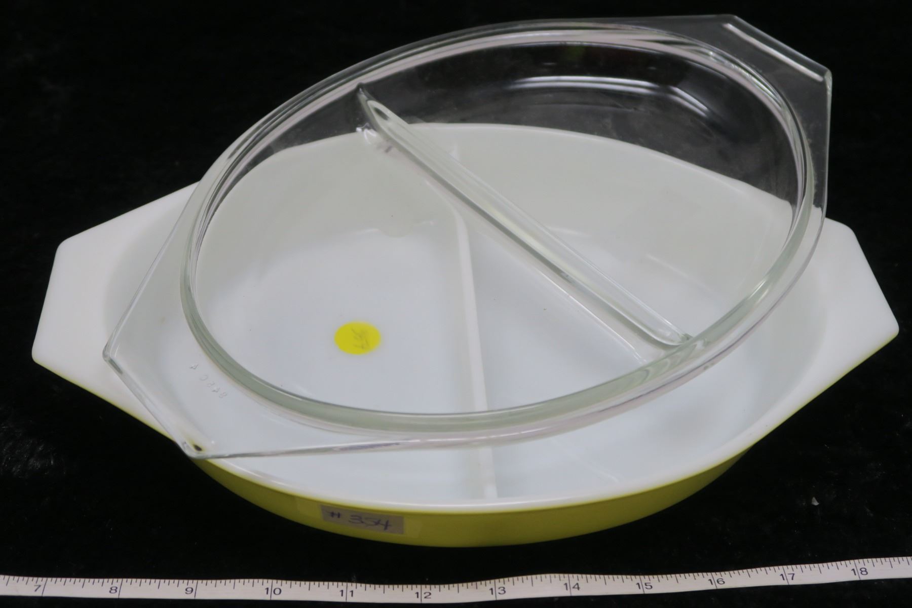Divided Yellow Pyrex Dish 1.5 litre with lid
