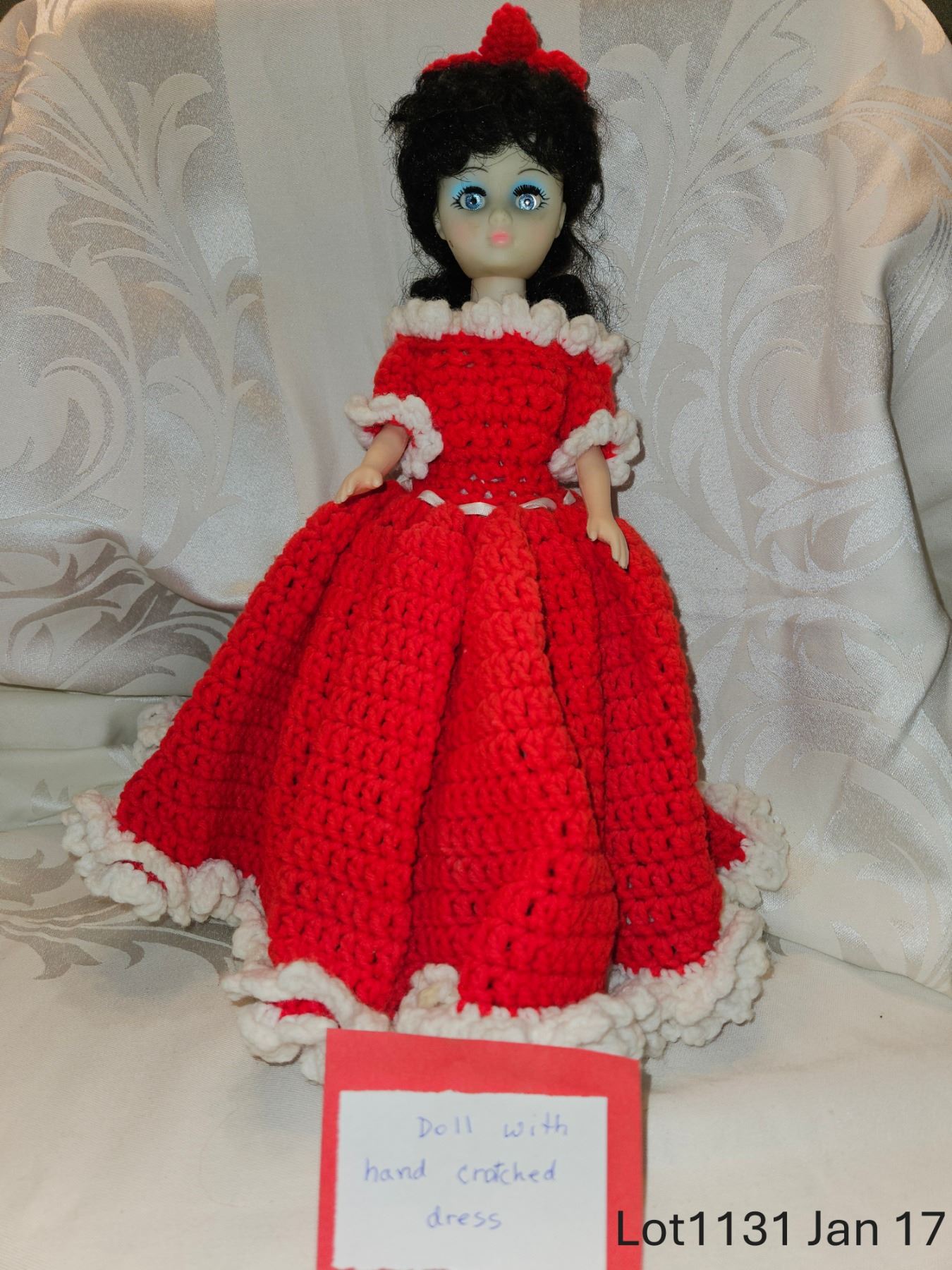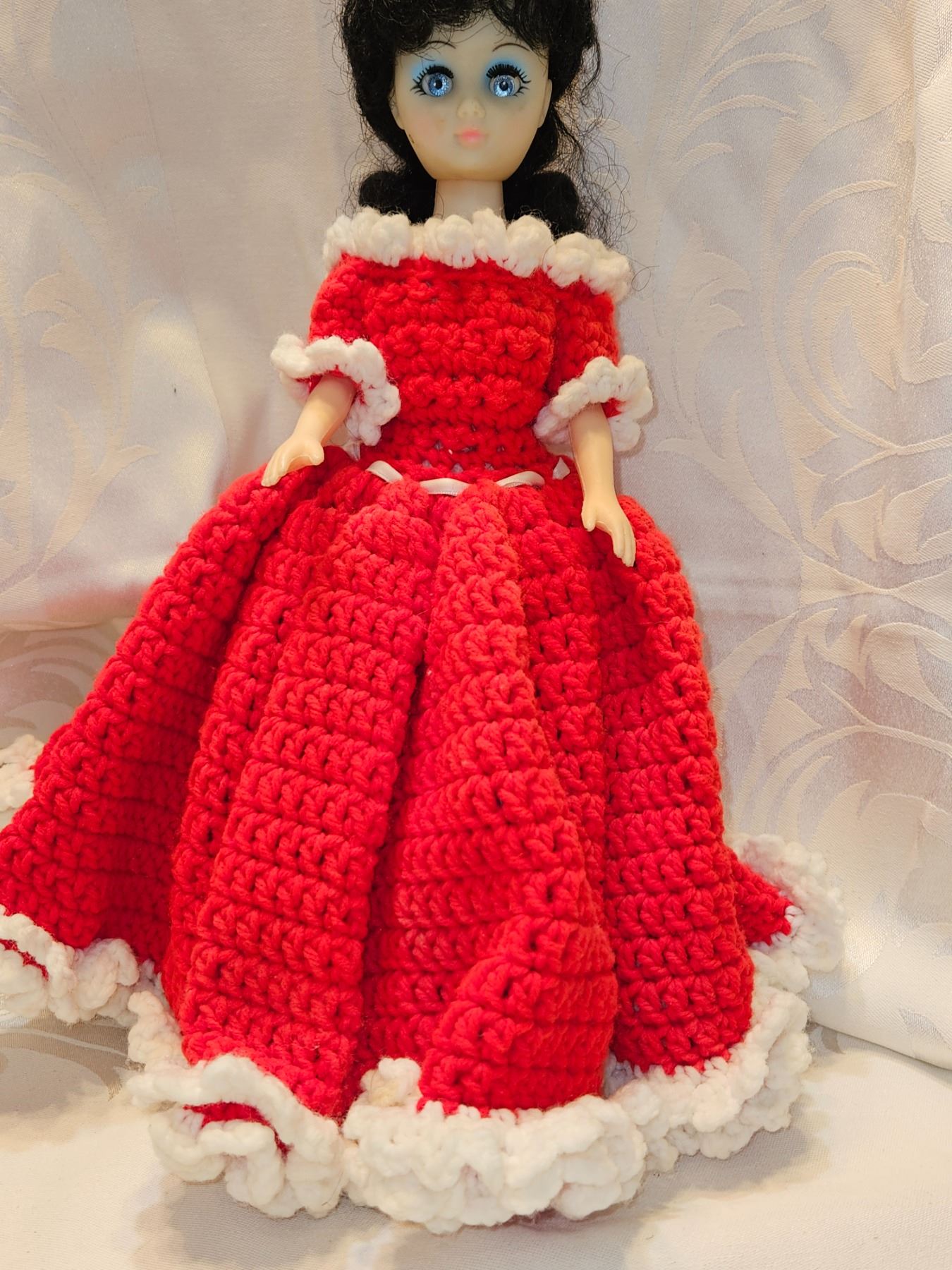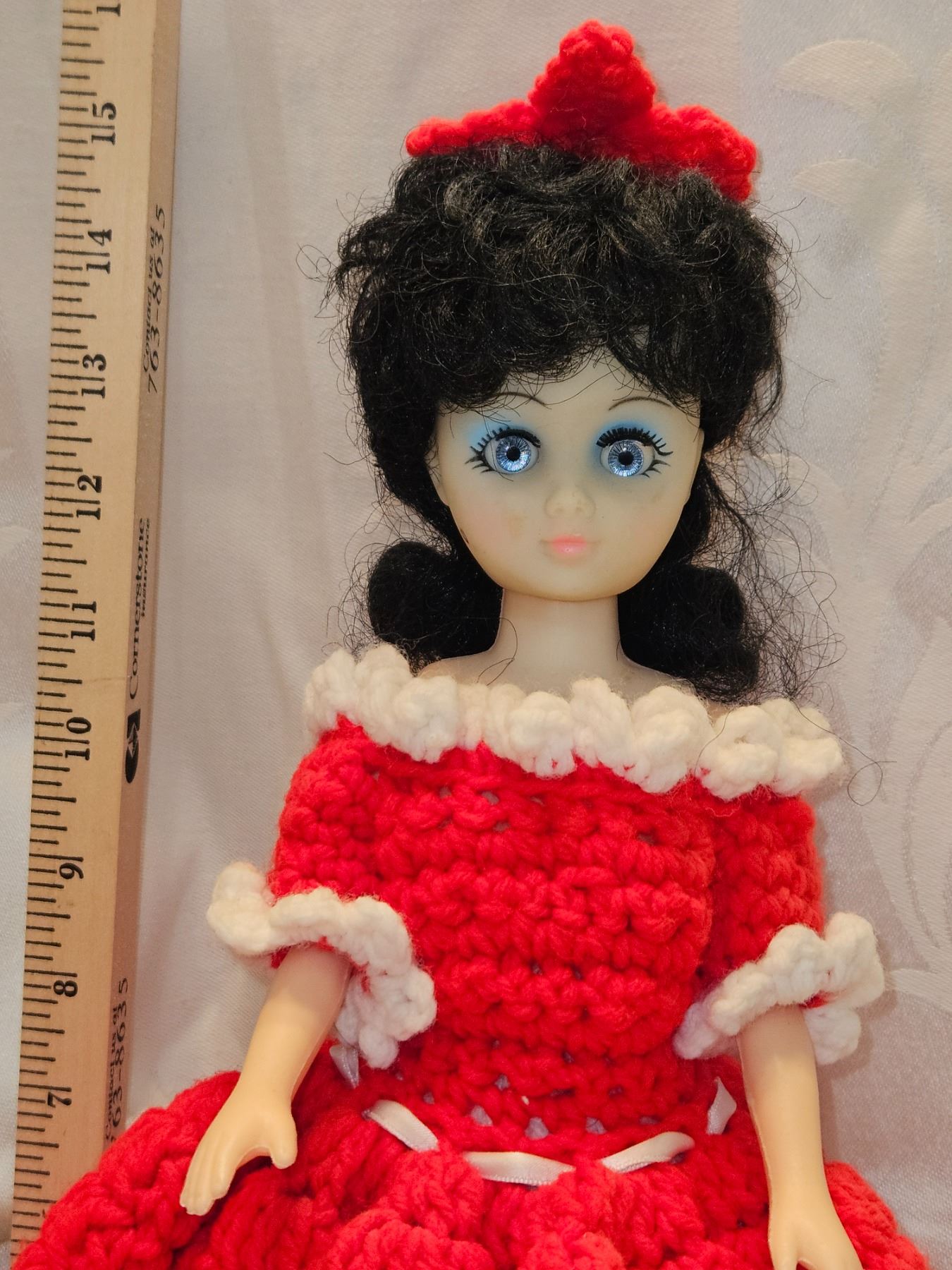 Doll with Red Crochet Dress