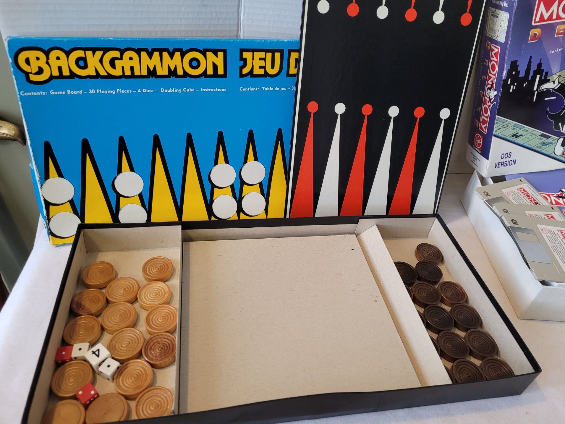 Dos version Monopoly & Backgammon/ checkers board game.