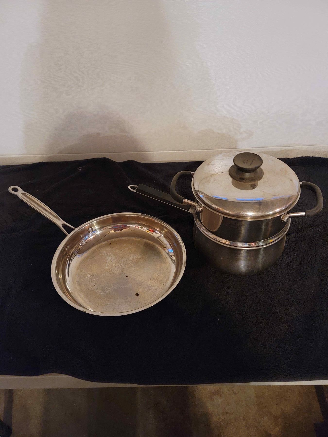 Double boiler and quisinart stainless steel fry pan