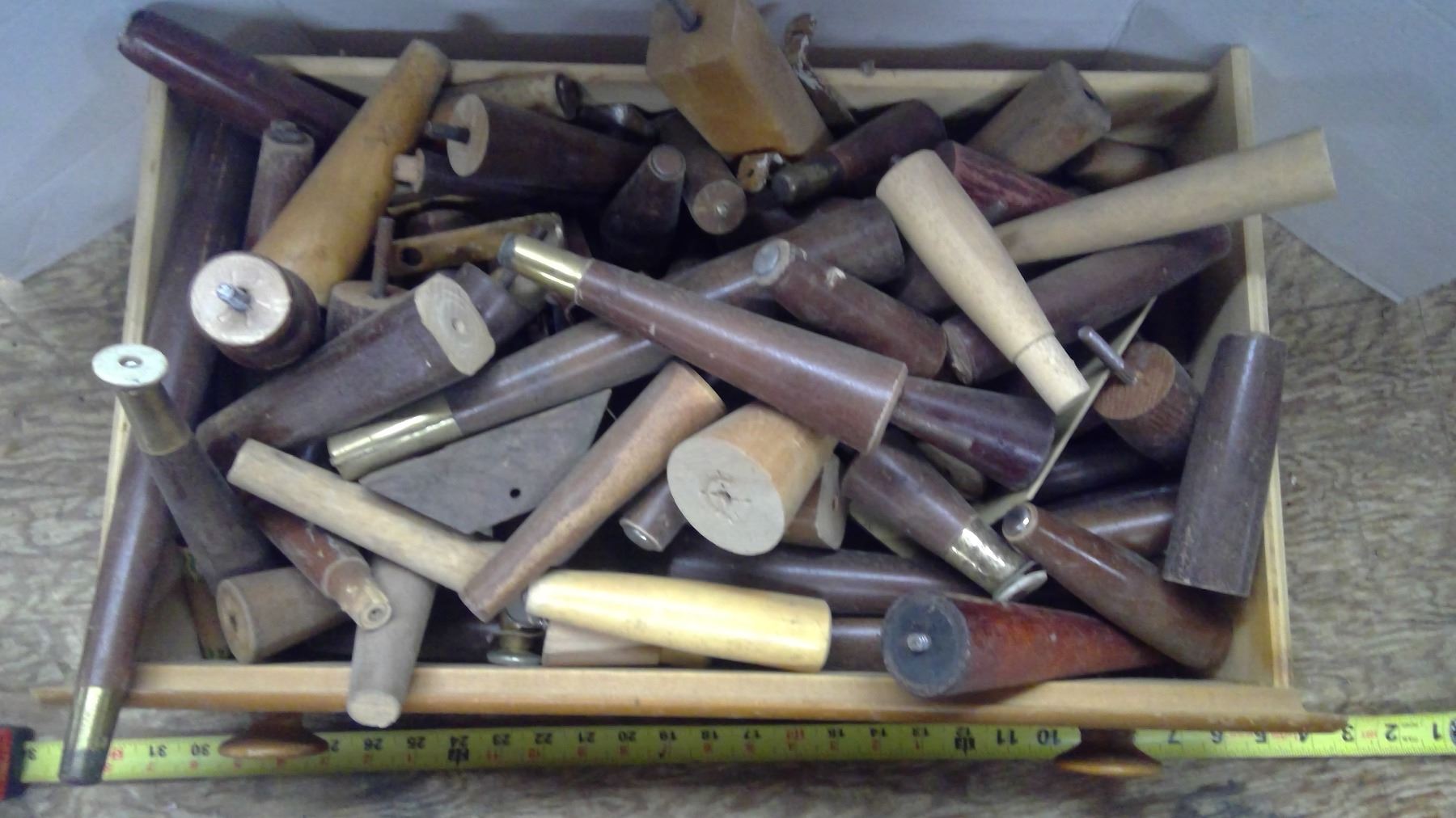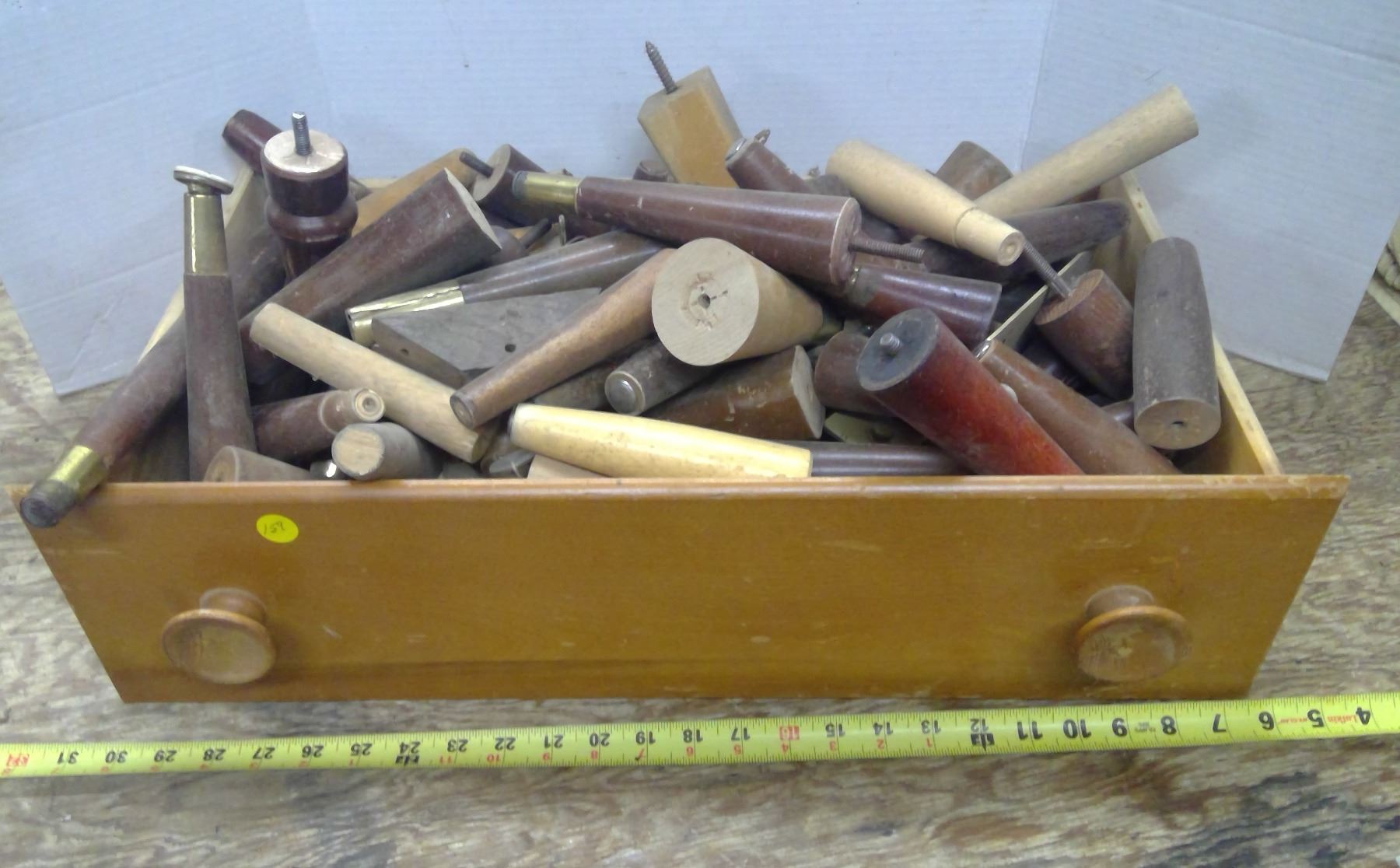 Drawer full of assorted furniture legs