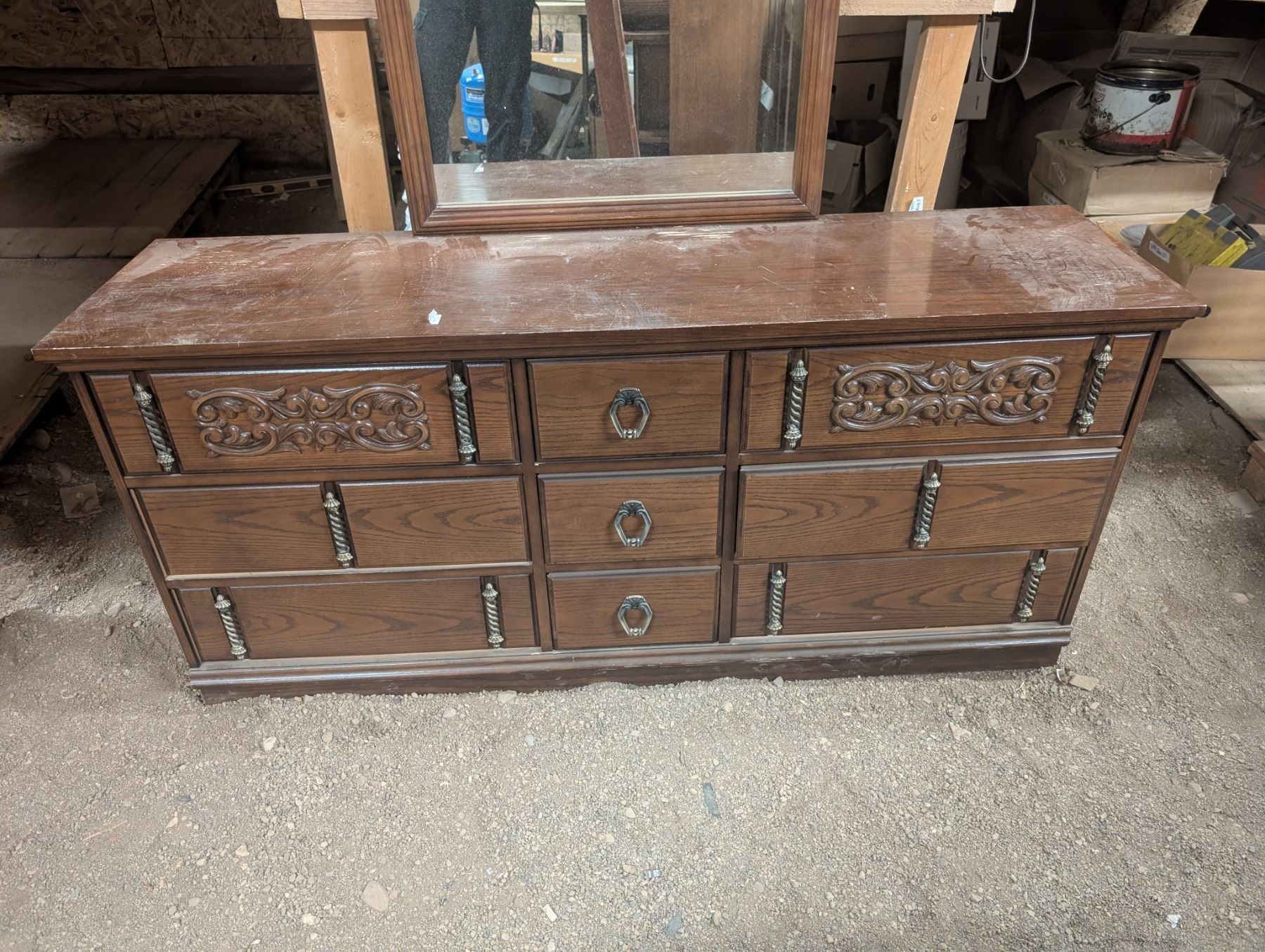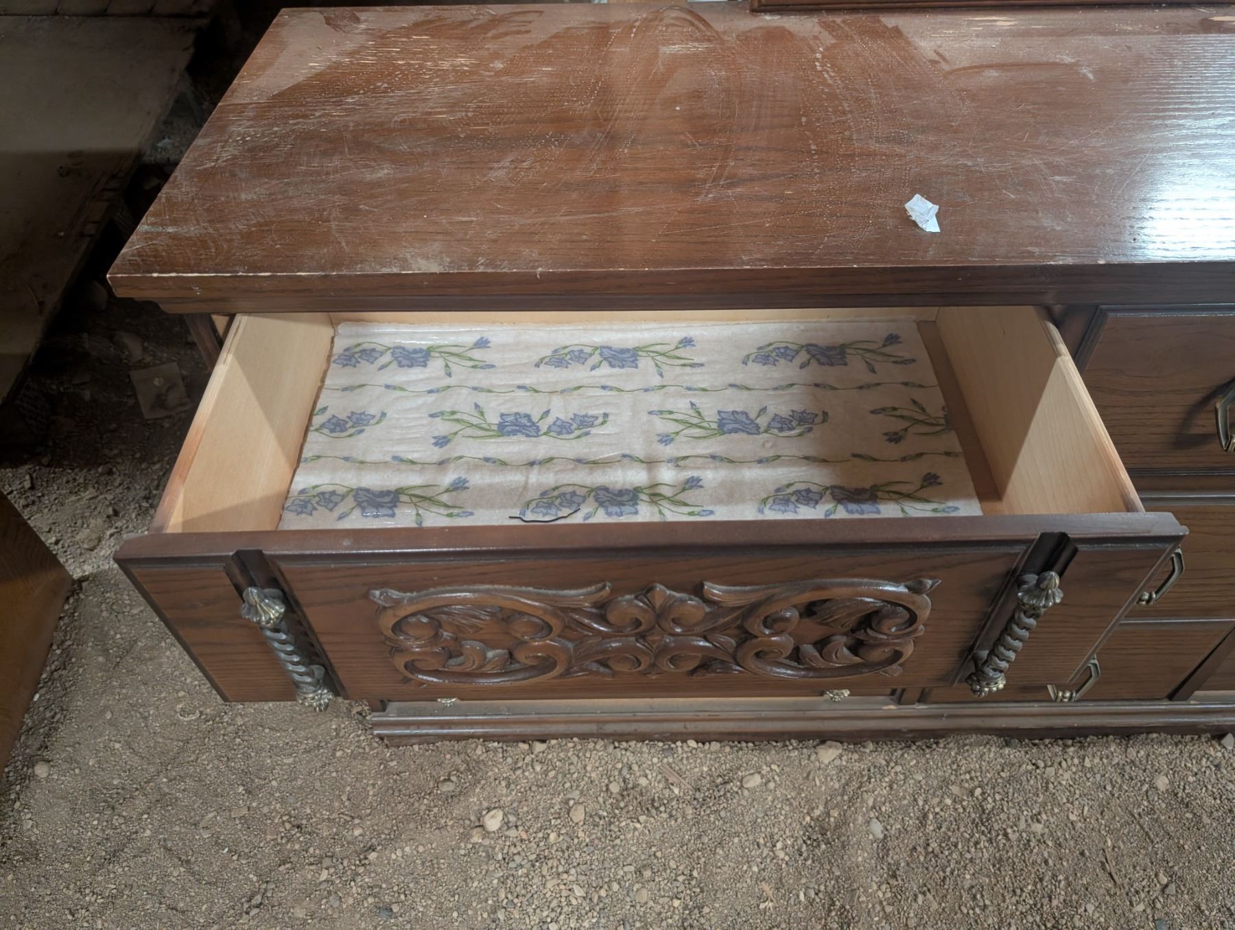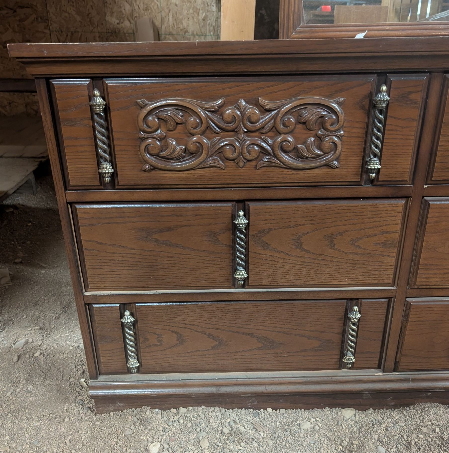 Drawer w/ Spiral Design Handles and Mirror 66"x18"x30-72"