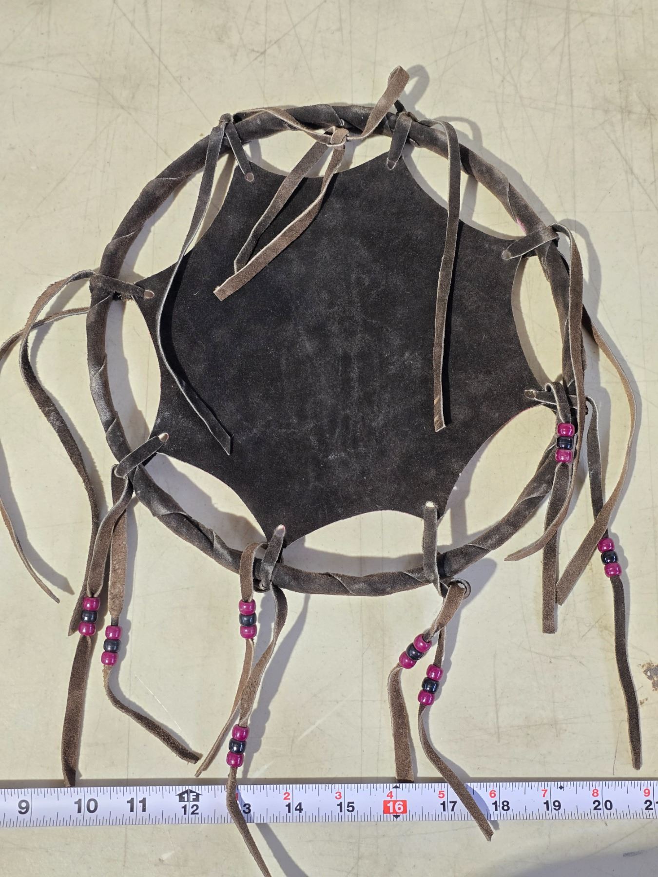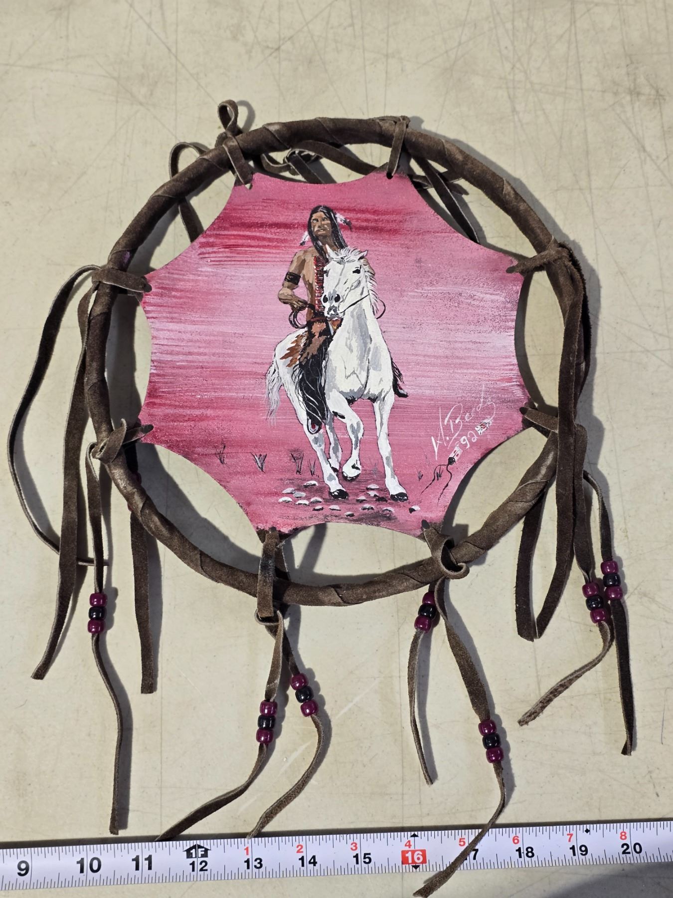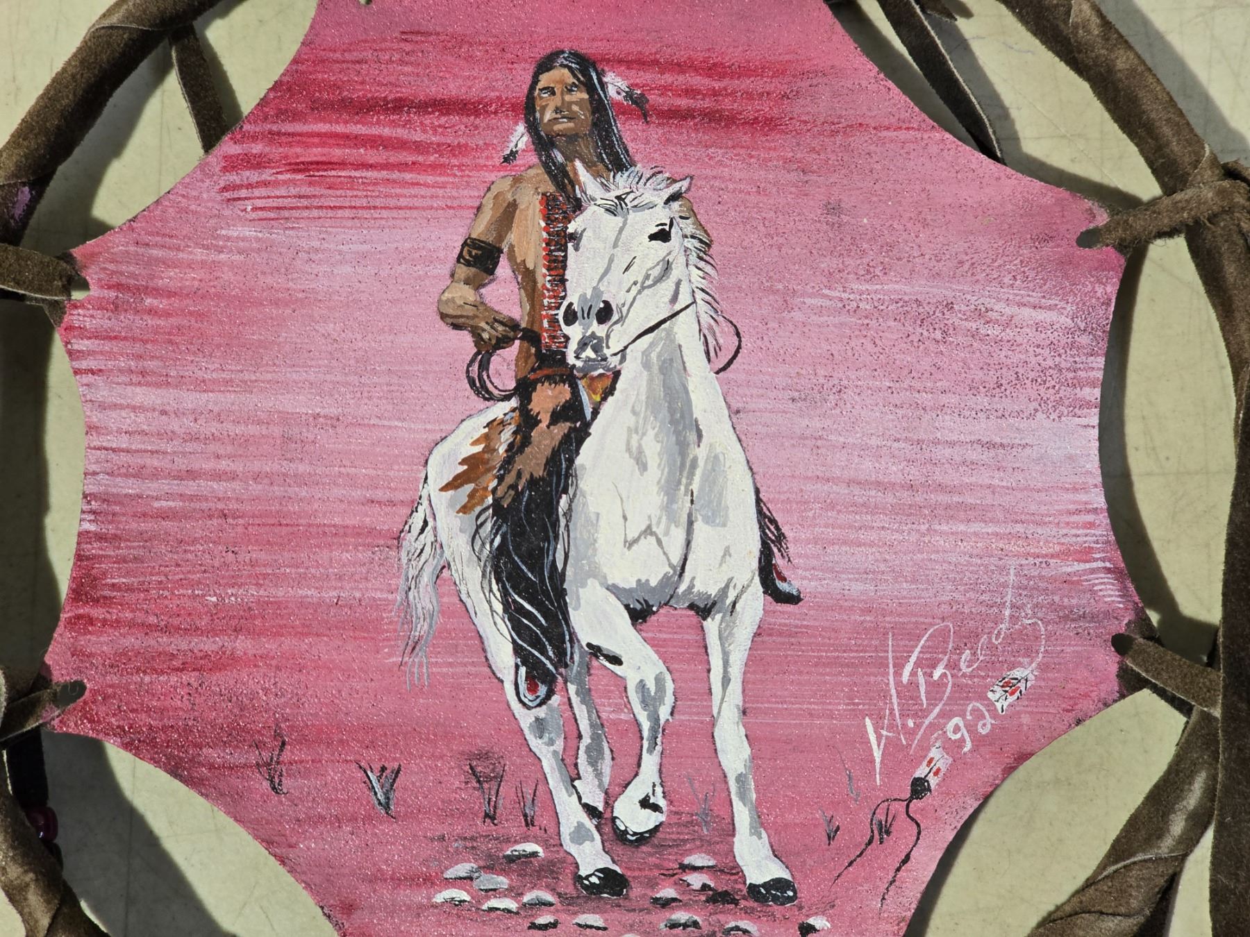 Dream catcher, w/ painted native on horseback by W. Beads 92' - 10" across