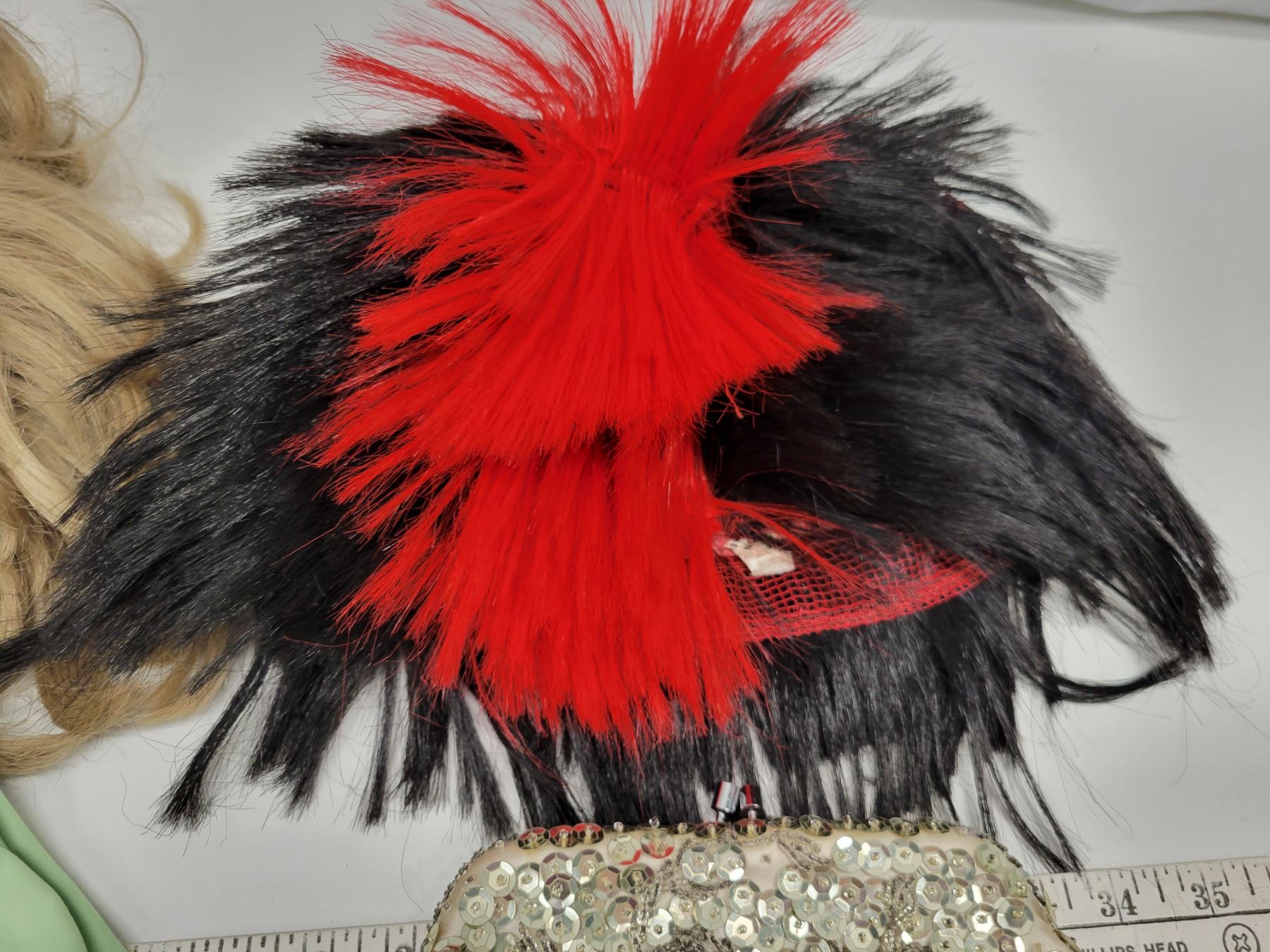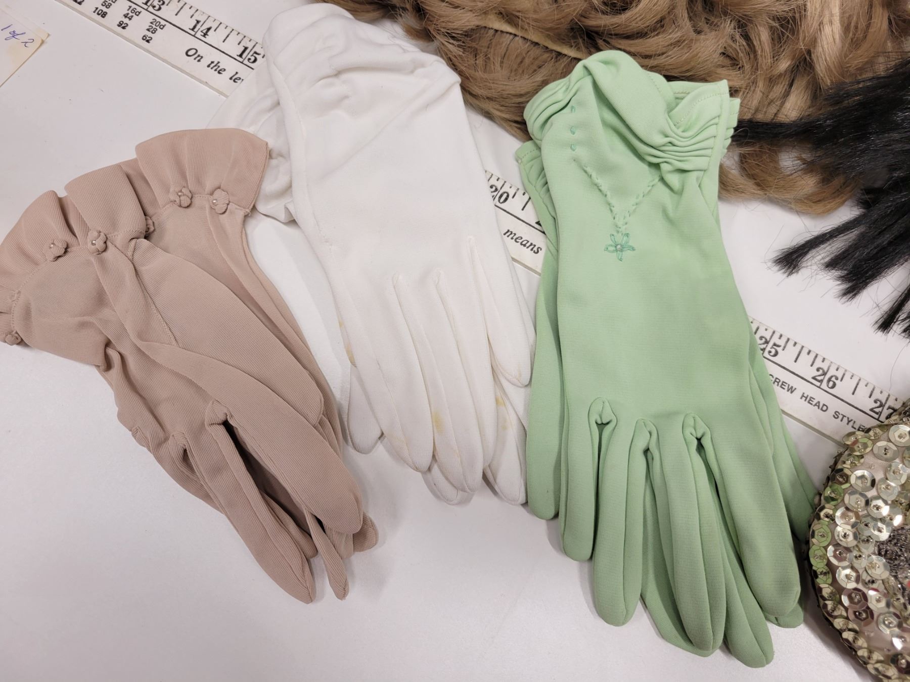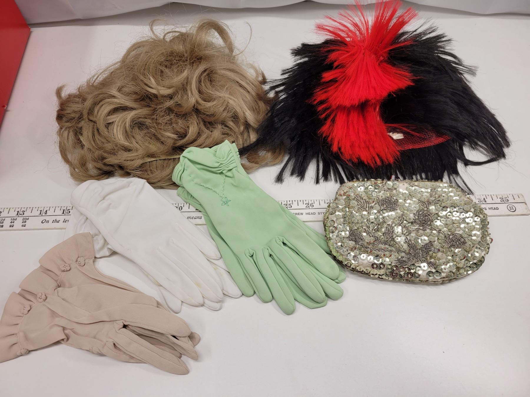 Dress up gloves, wigs, purse etc