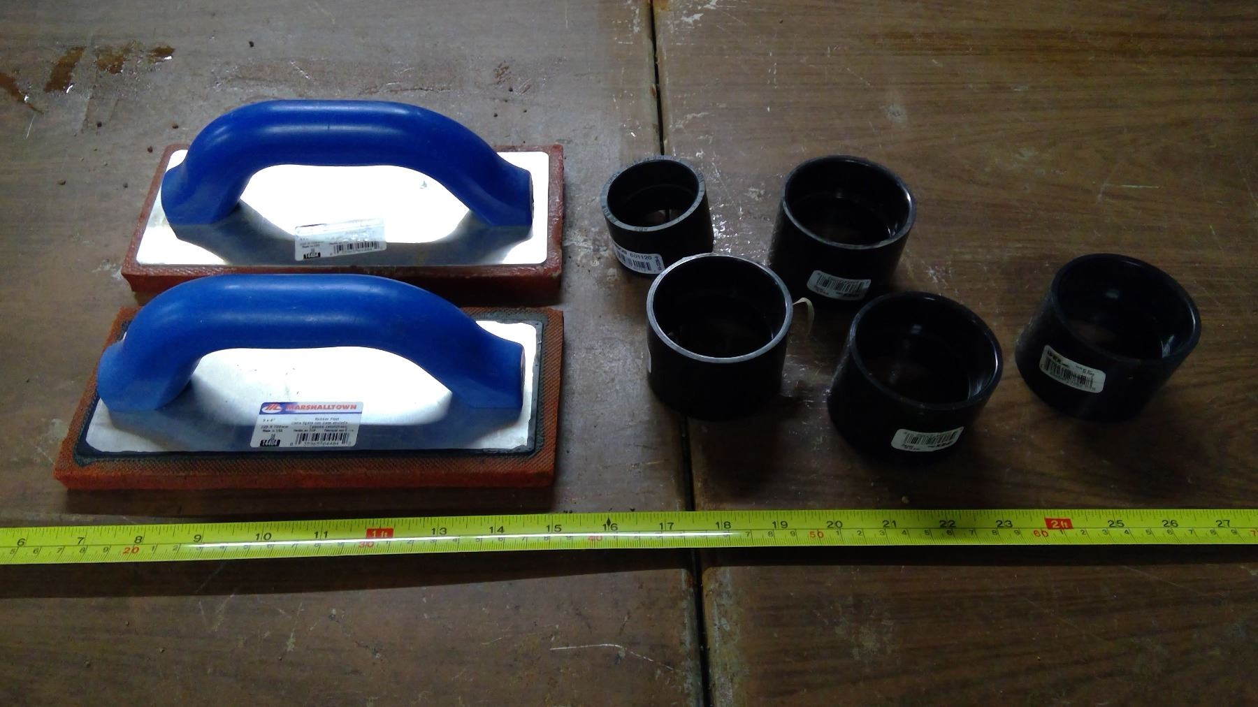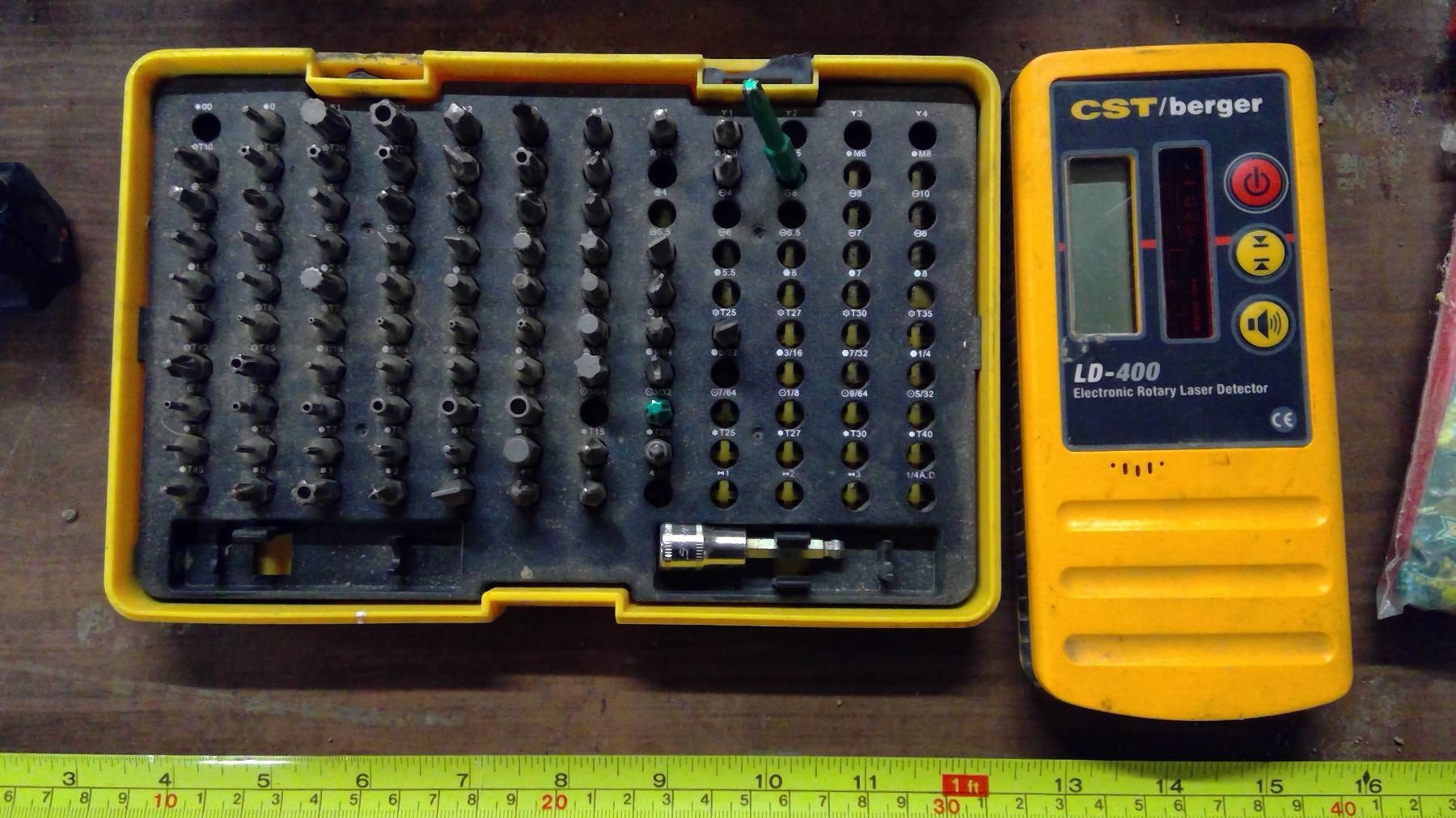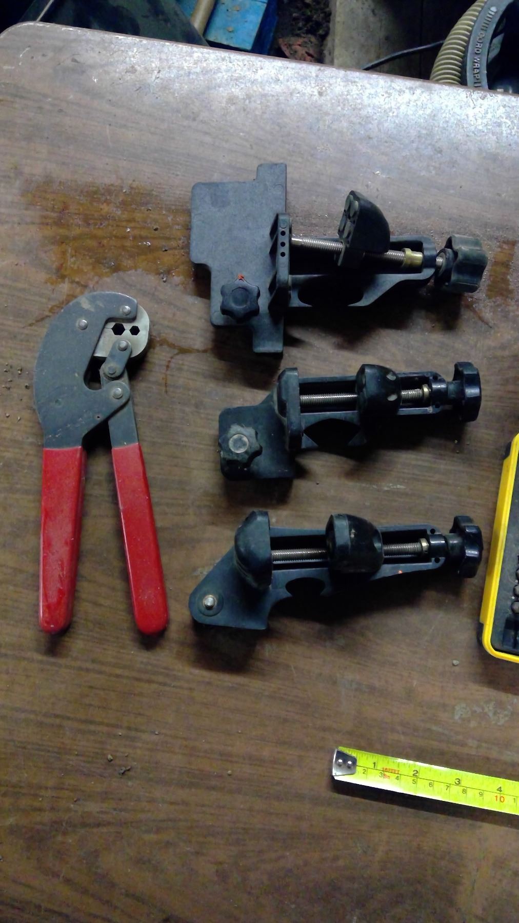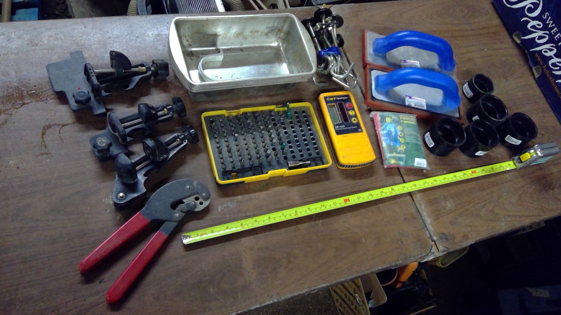 Drill Bits, Rubber Float, Vices, PVC Pipe Scraps, Plastic Organizers, Laser Finder, etc.