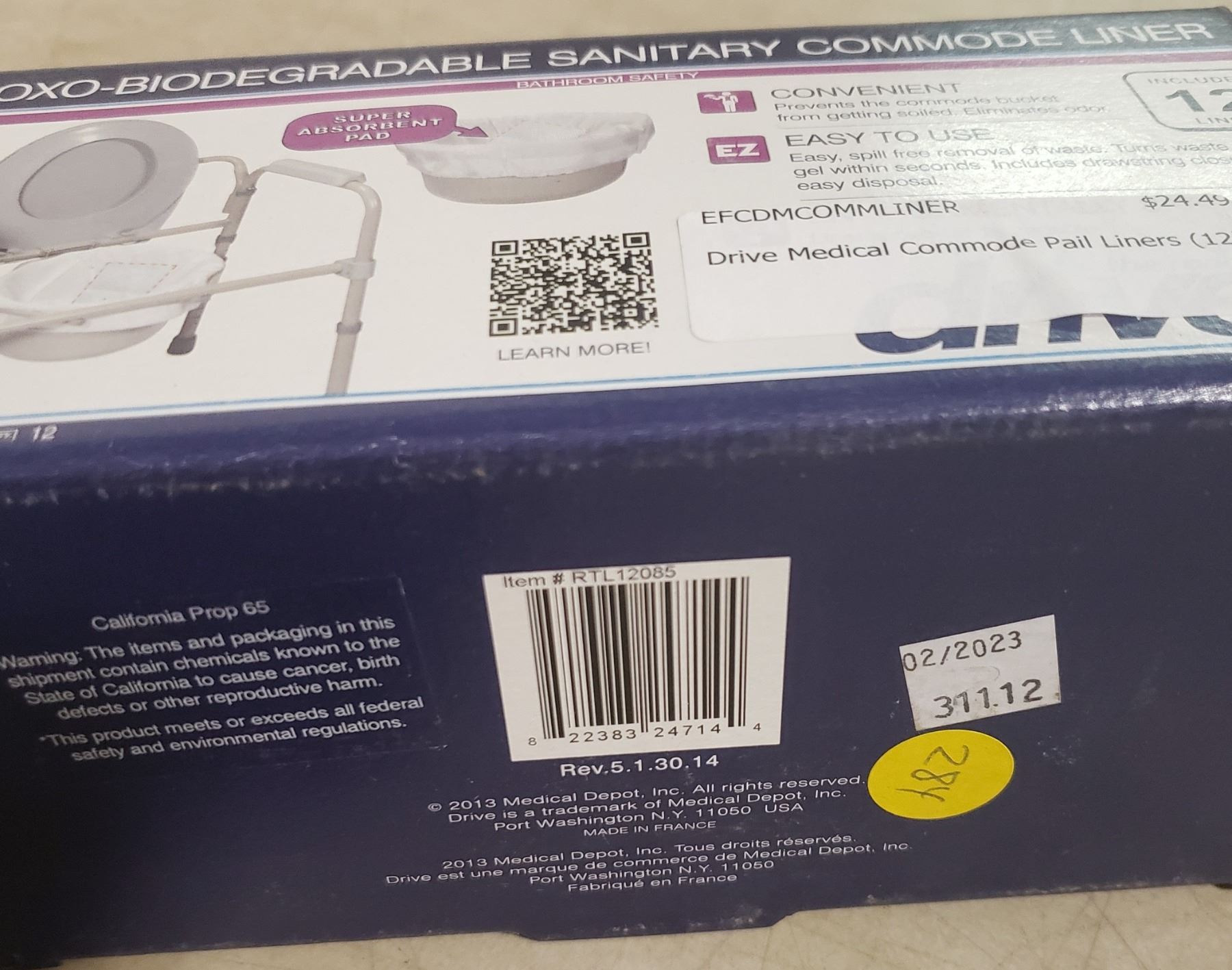Drive Medical Commode Pail Liners (12) SRP $24.49