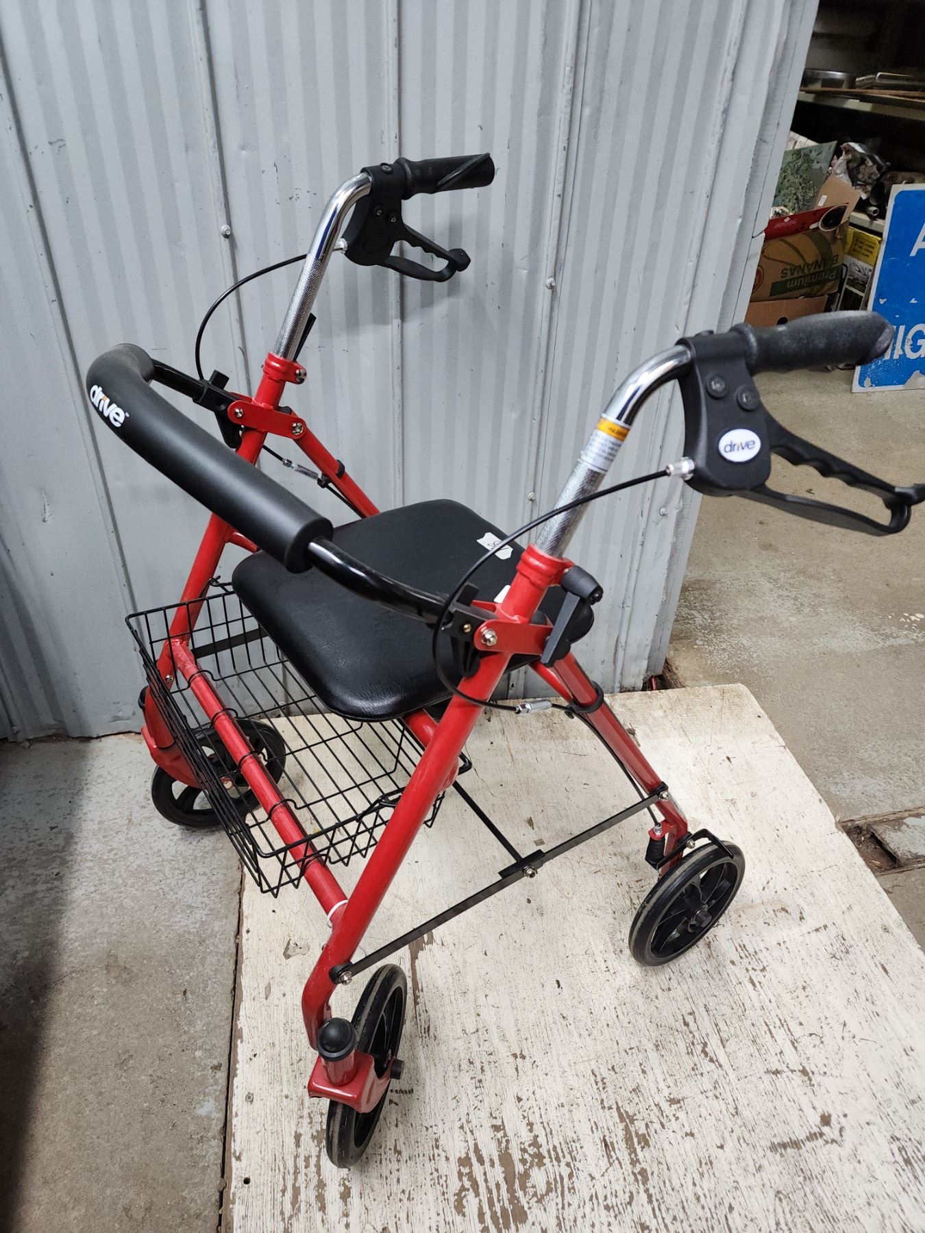 "Drive" assisted red walker, excellent condition - turns freely - 18"x33"H