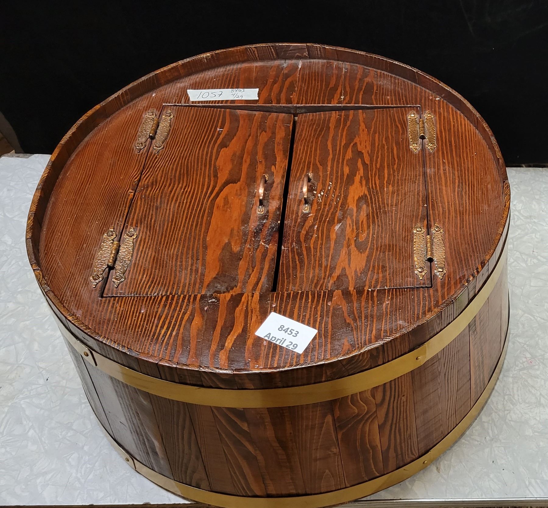 Drum Cabnet - Drum: 22" Dia. x 11", Cabnet: 22"x14"x9.5" back brass ring is loose, some repair needed