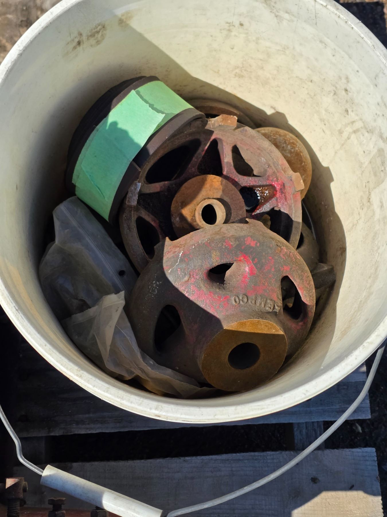 Drumbreak and rotor break lathe with extra parts in bucket