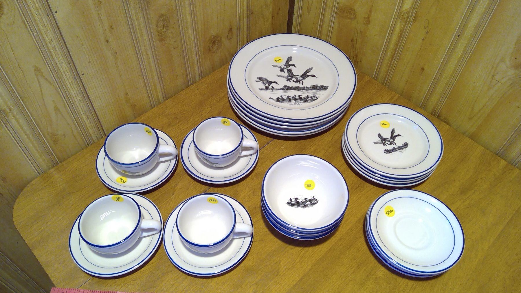 5 dinner plates, 4 side plates, 4 tea saucers, 4 cup and saucers, 3 bowls