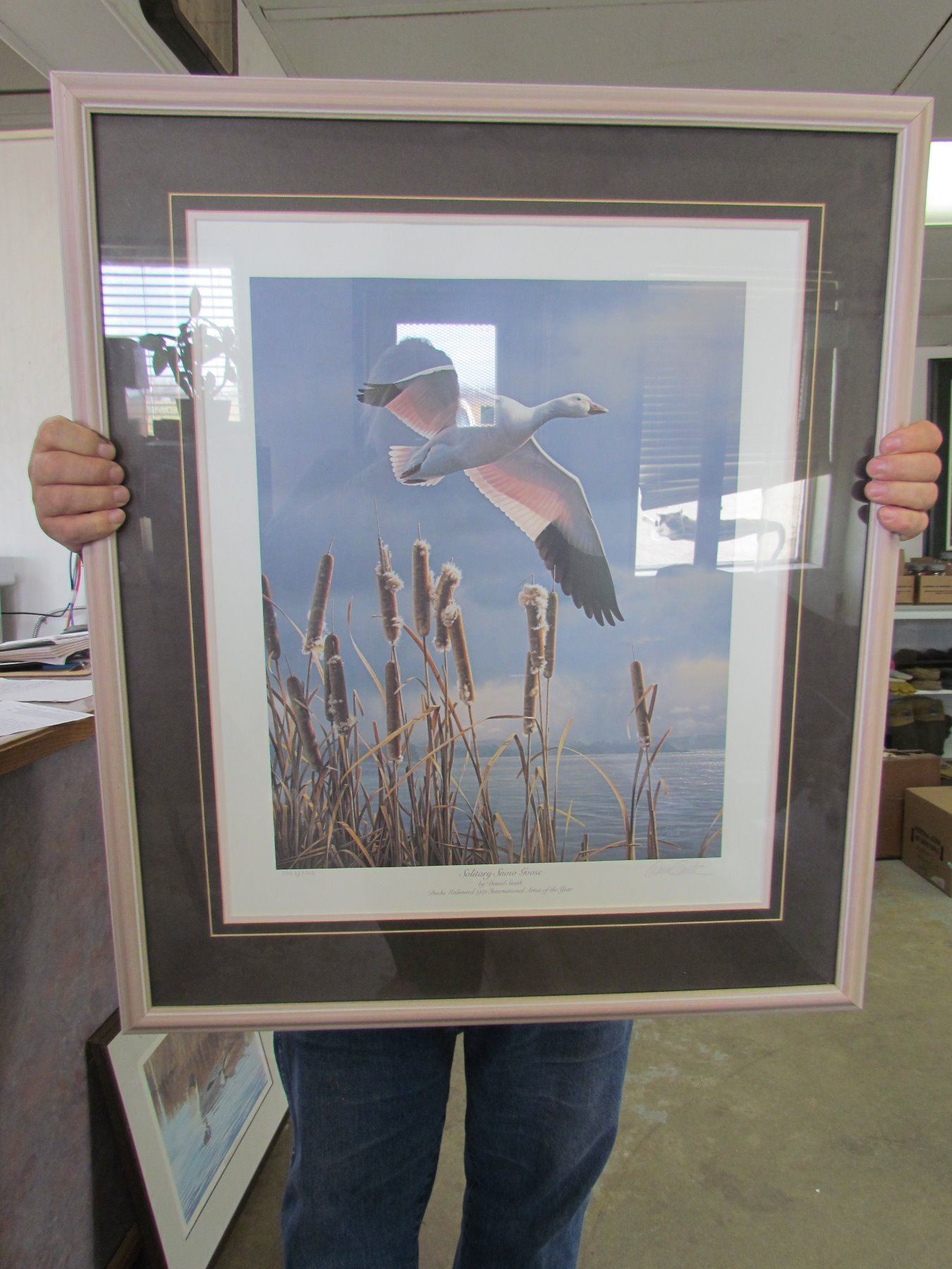 Ducks Unlimited framed art 5568/5600 "Salitary Snow Goose" by Daniel Smith (artist of the year)