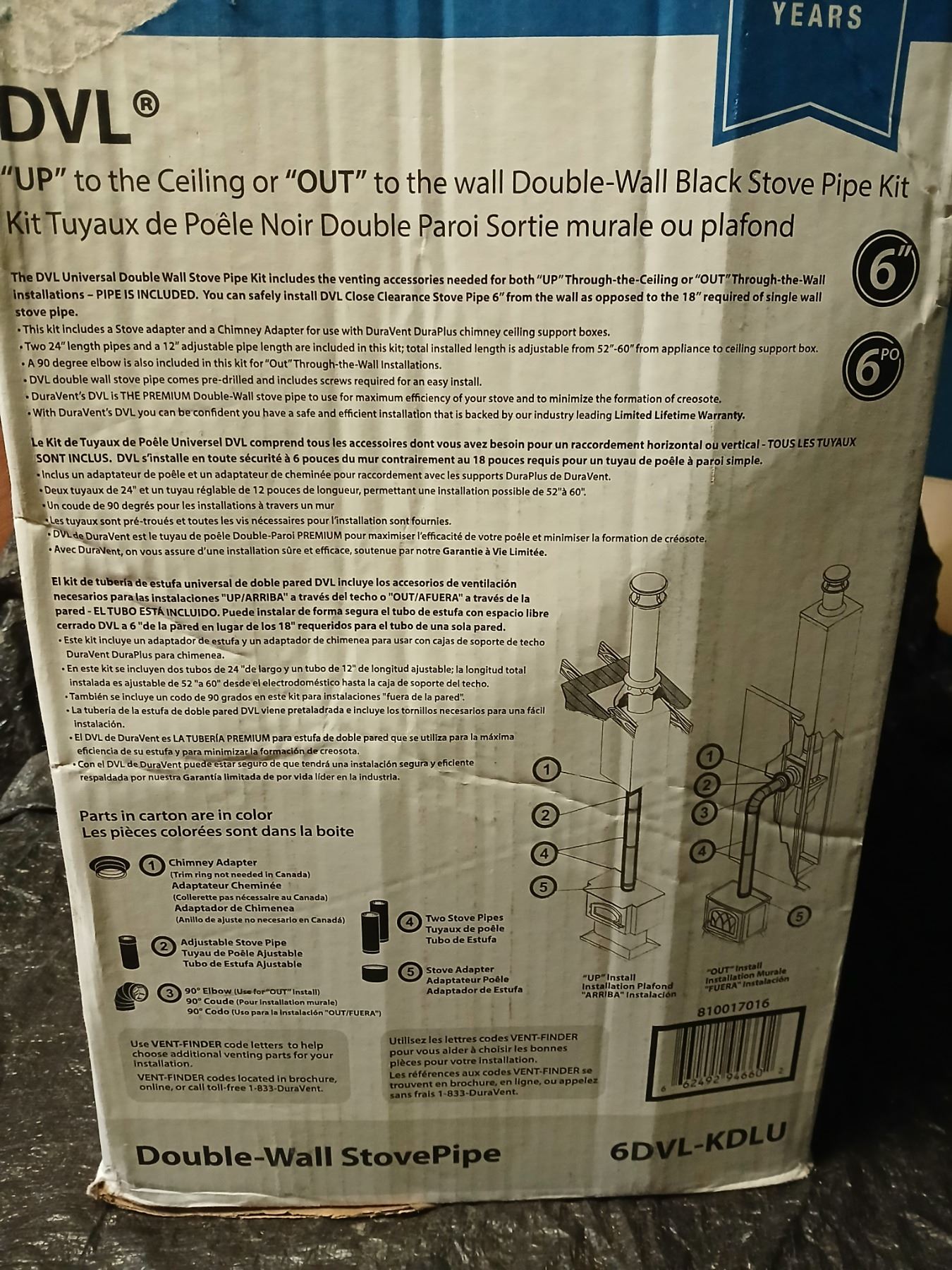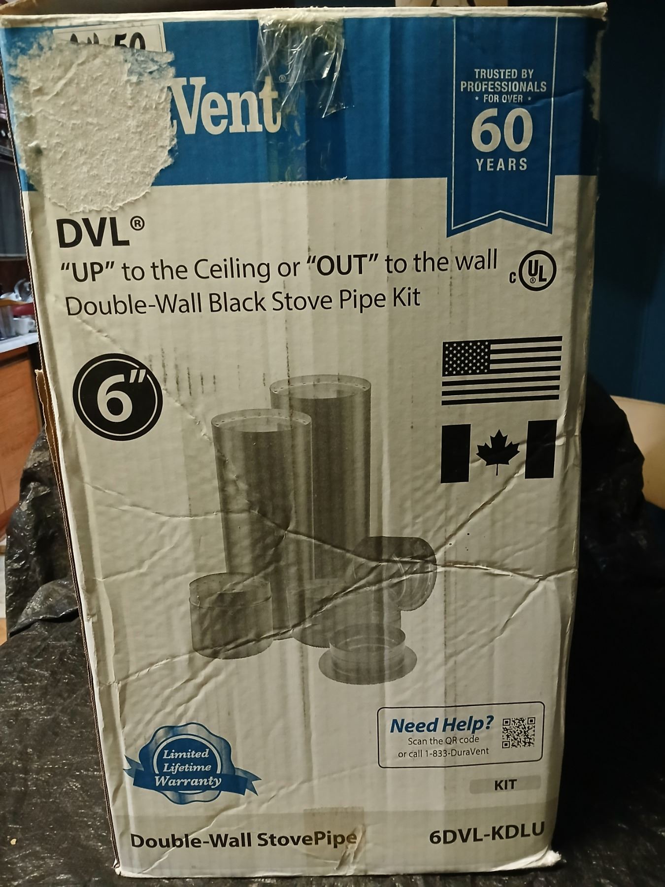 Duravent 6DV 6" Double Wall Stove pipe kit w/ Wall Adapter