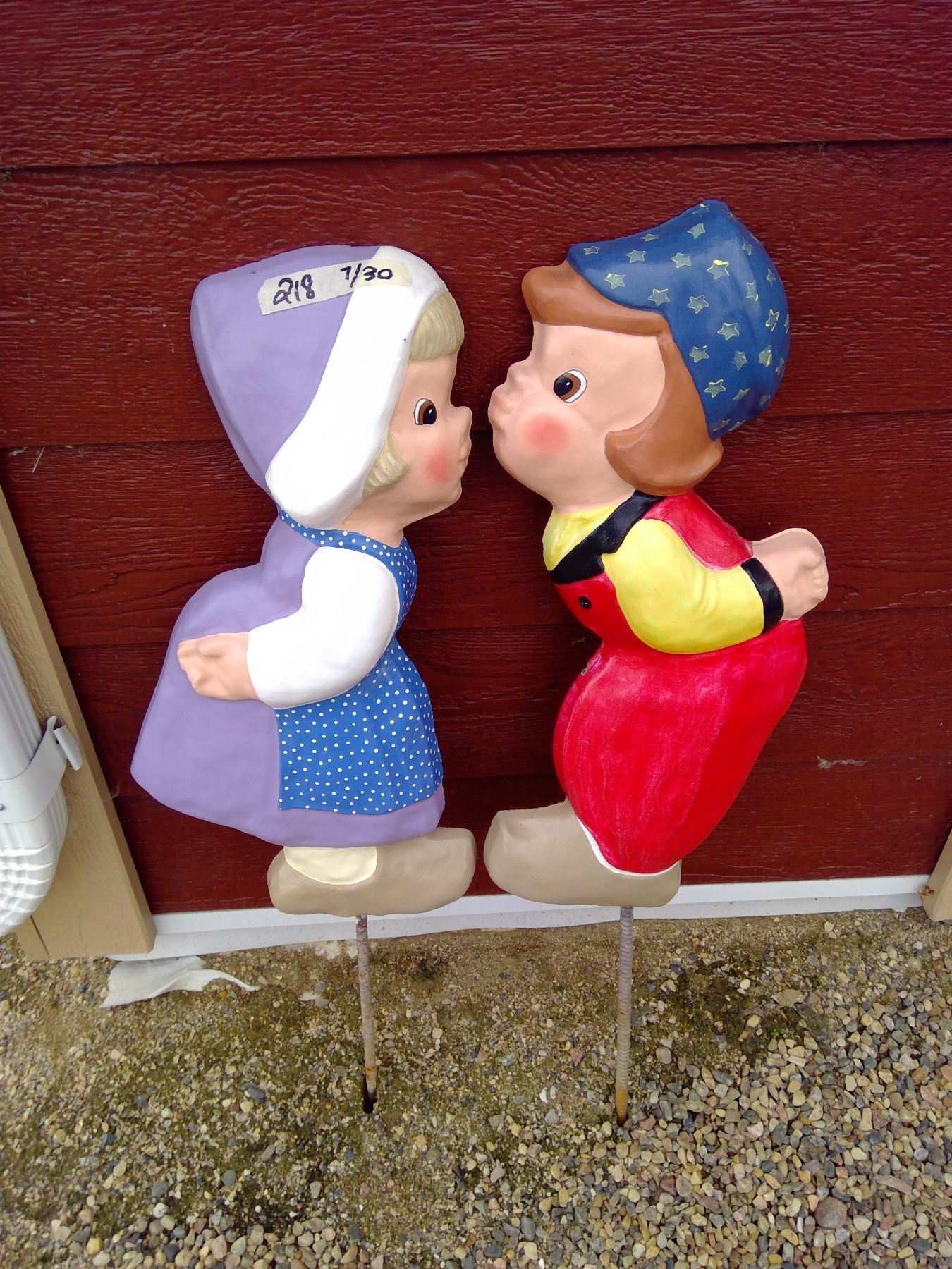 Dutch Kissing Boy and Girl Plaster Lawn Ornaments - 24" w/o Stake