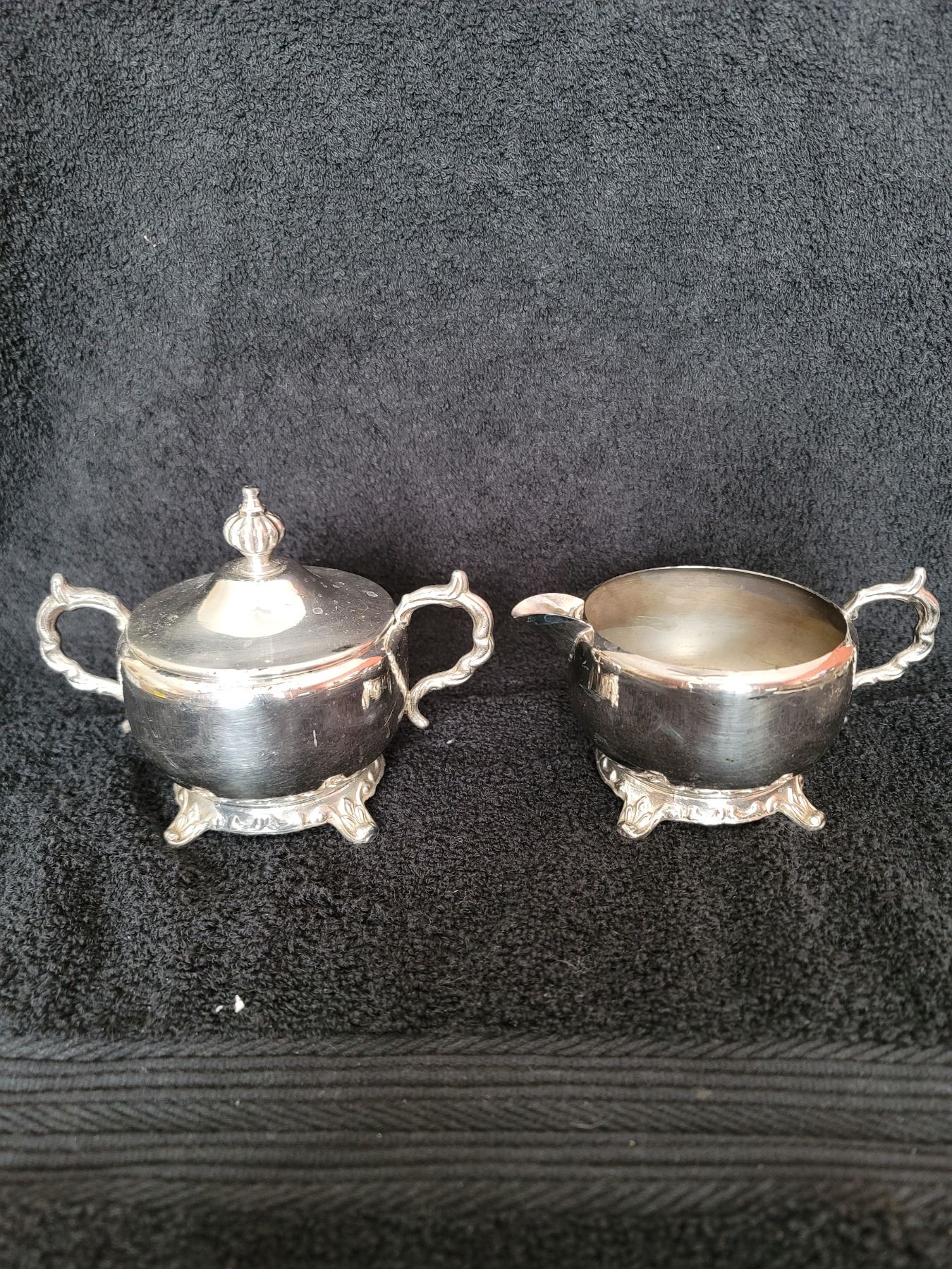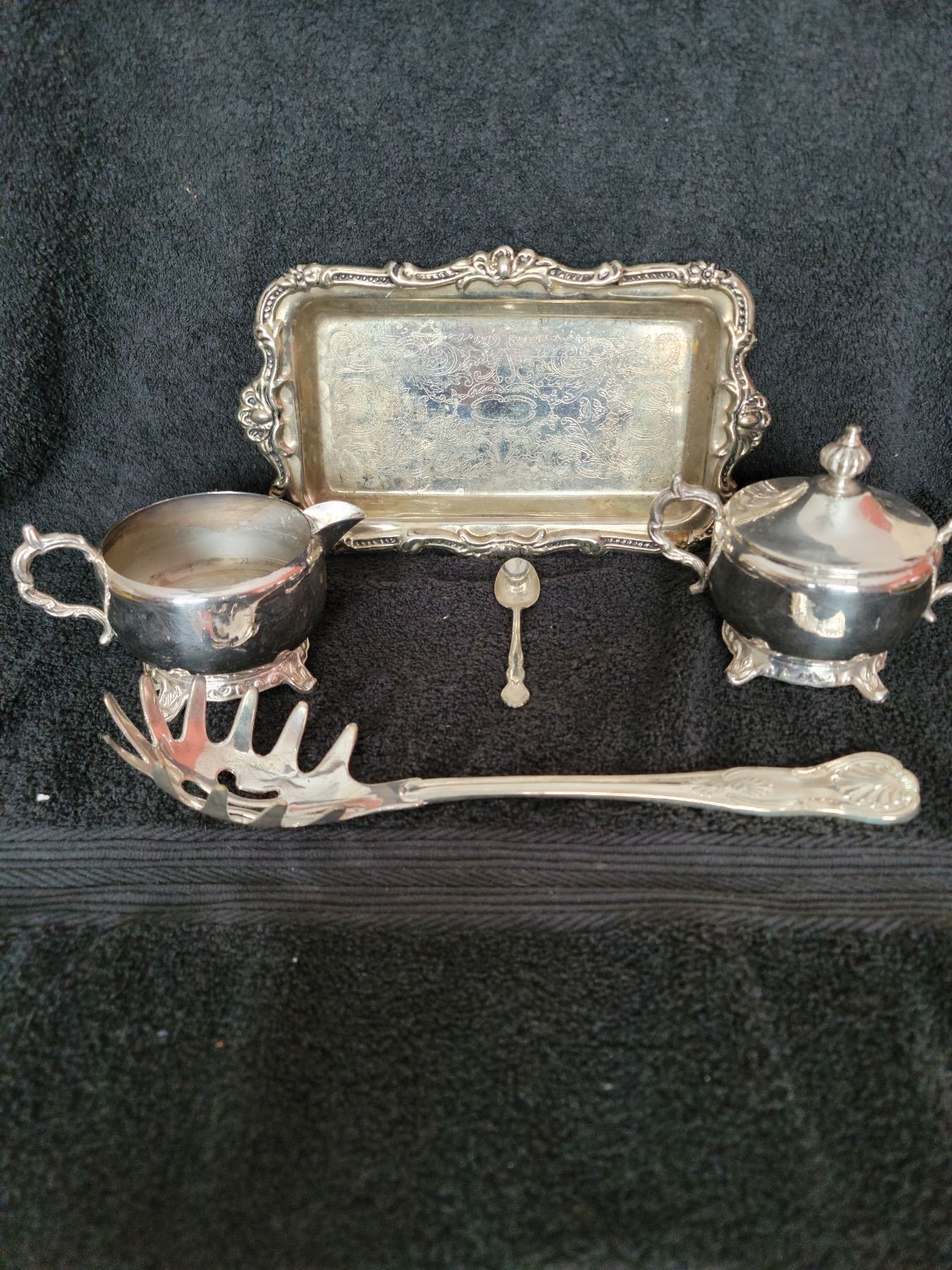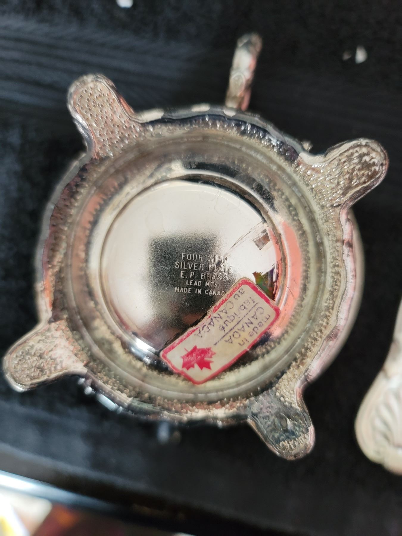 E.P Brass Four Star silver plate sugar bowl/creamer with misc. silver peices