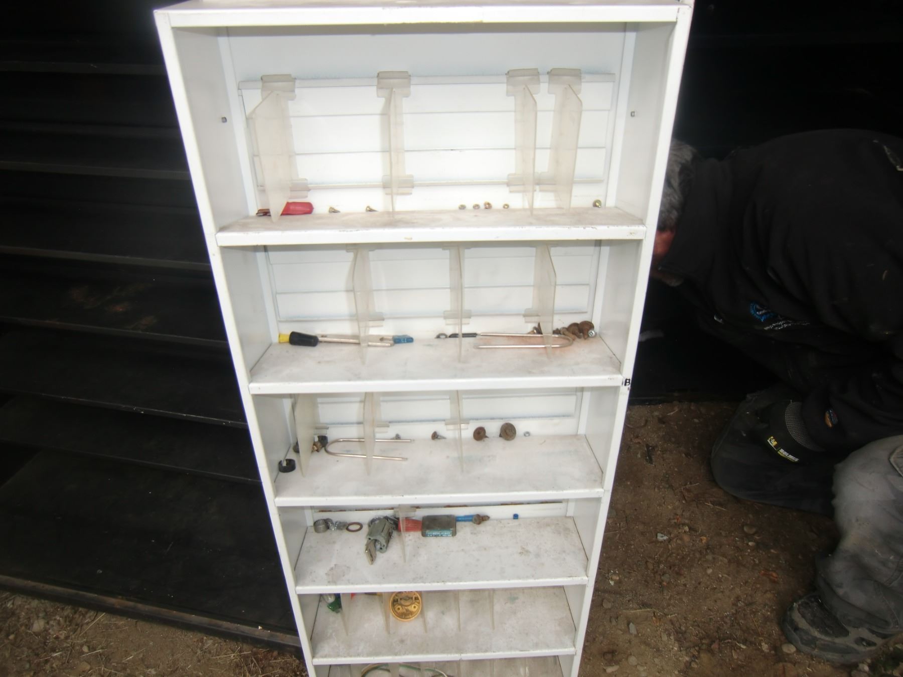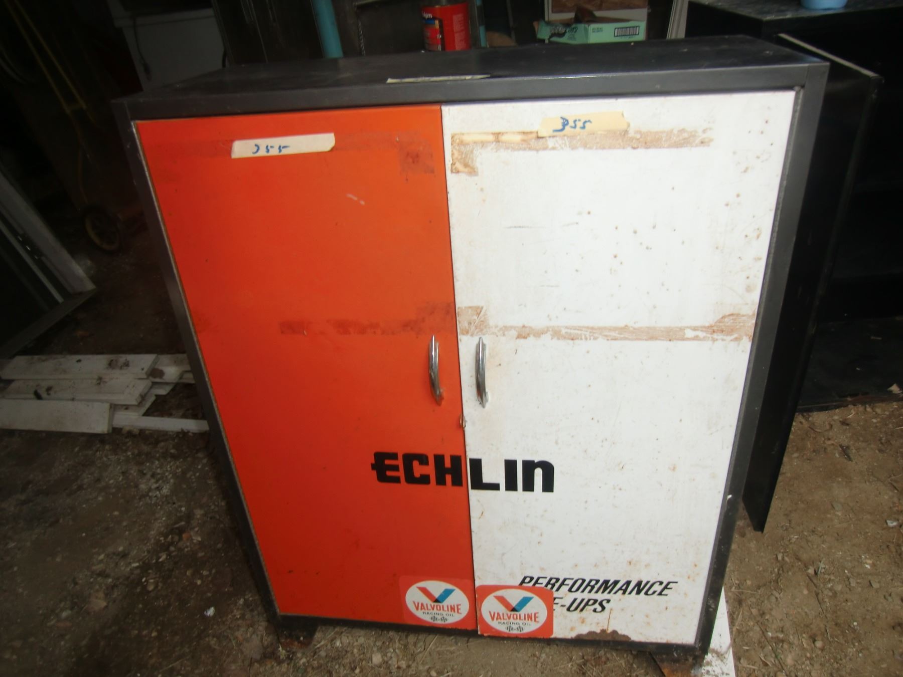 ECHLIN METAL SHOP CABINET ORANGE AND WHITE