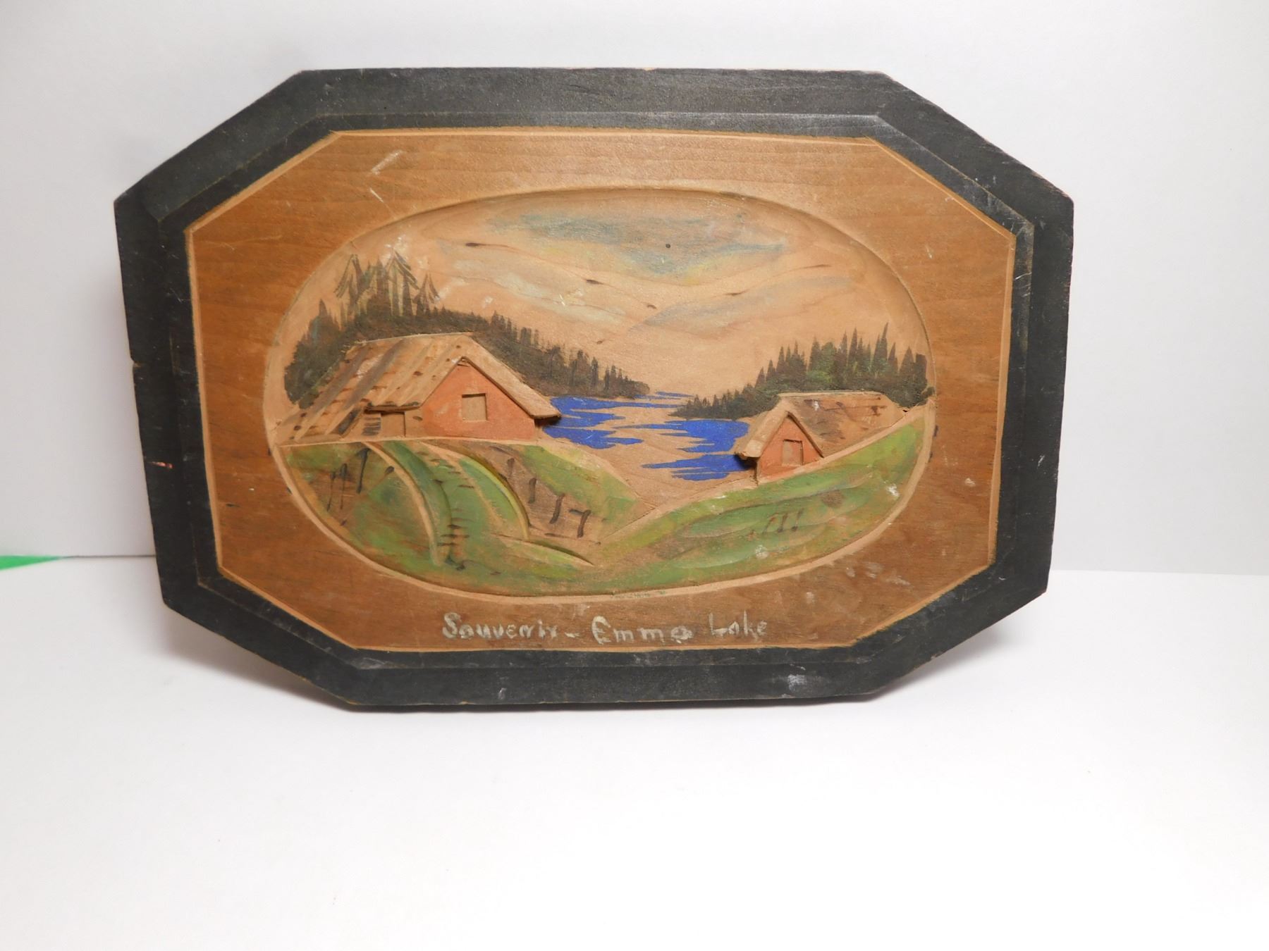 EMMA LAKE CARVING AND PAINTING ON WOOD VINTAGE SOUVENIR