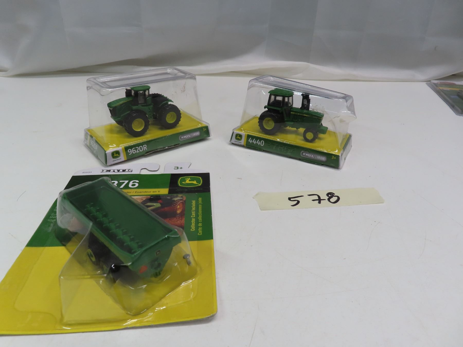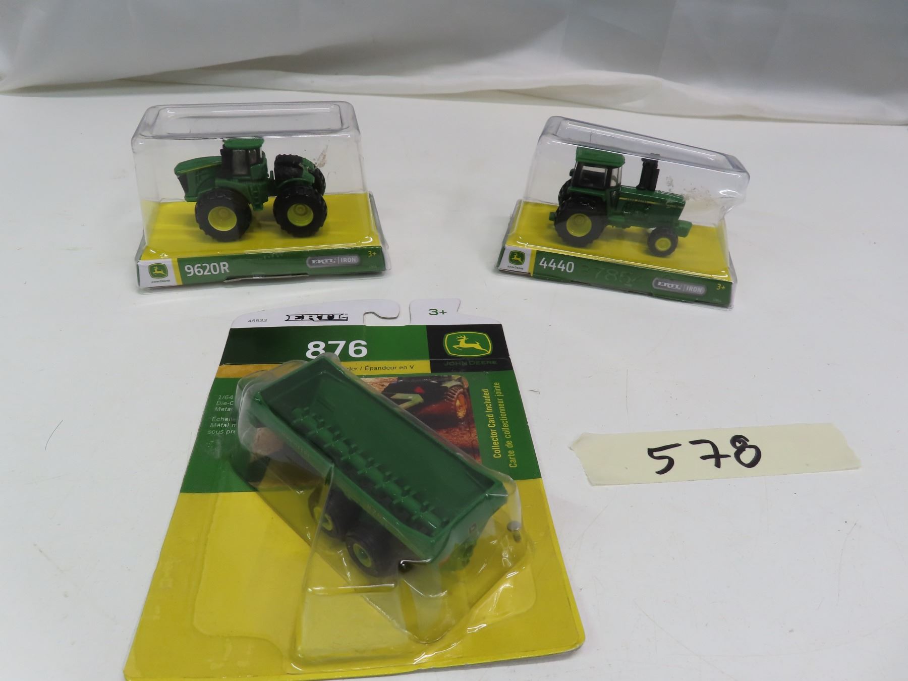 ERTL Miniature John Deere Toys - 440 -Tractor, 9620R - Tractor, V-Tank Spreader 876