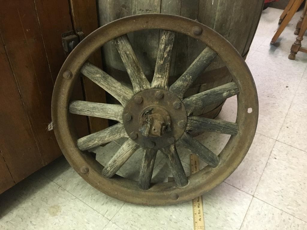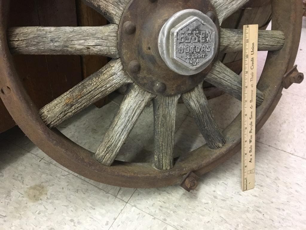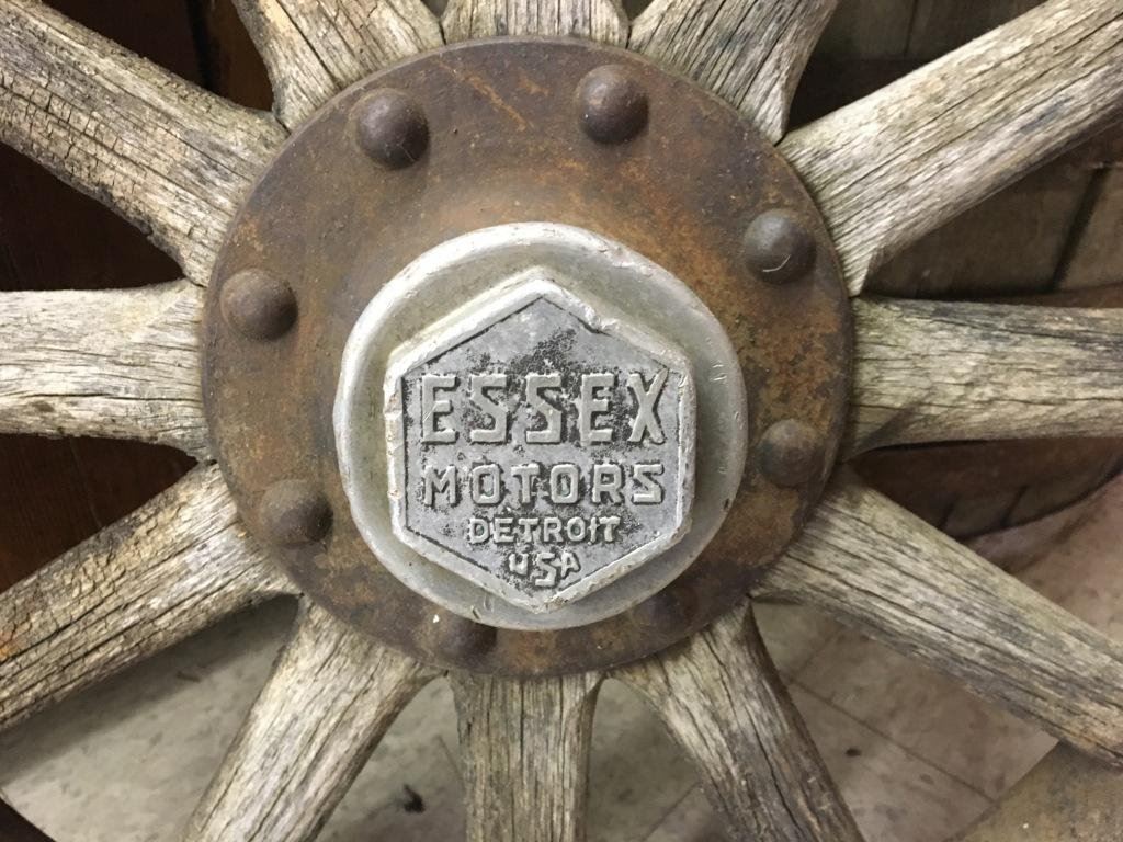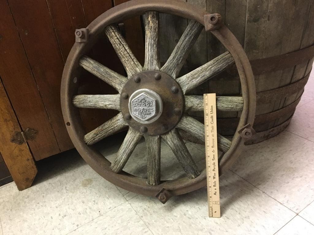 ESSEX MOTORS WOODEN CAR WHEEL W/DUST HUB CAP