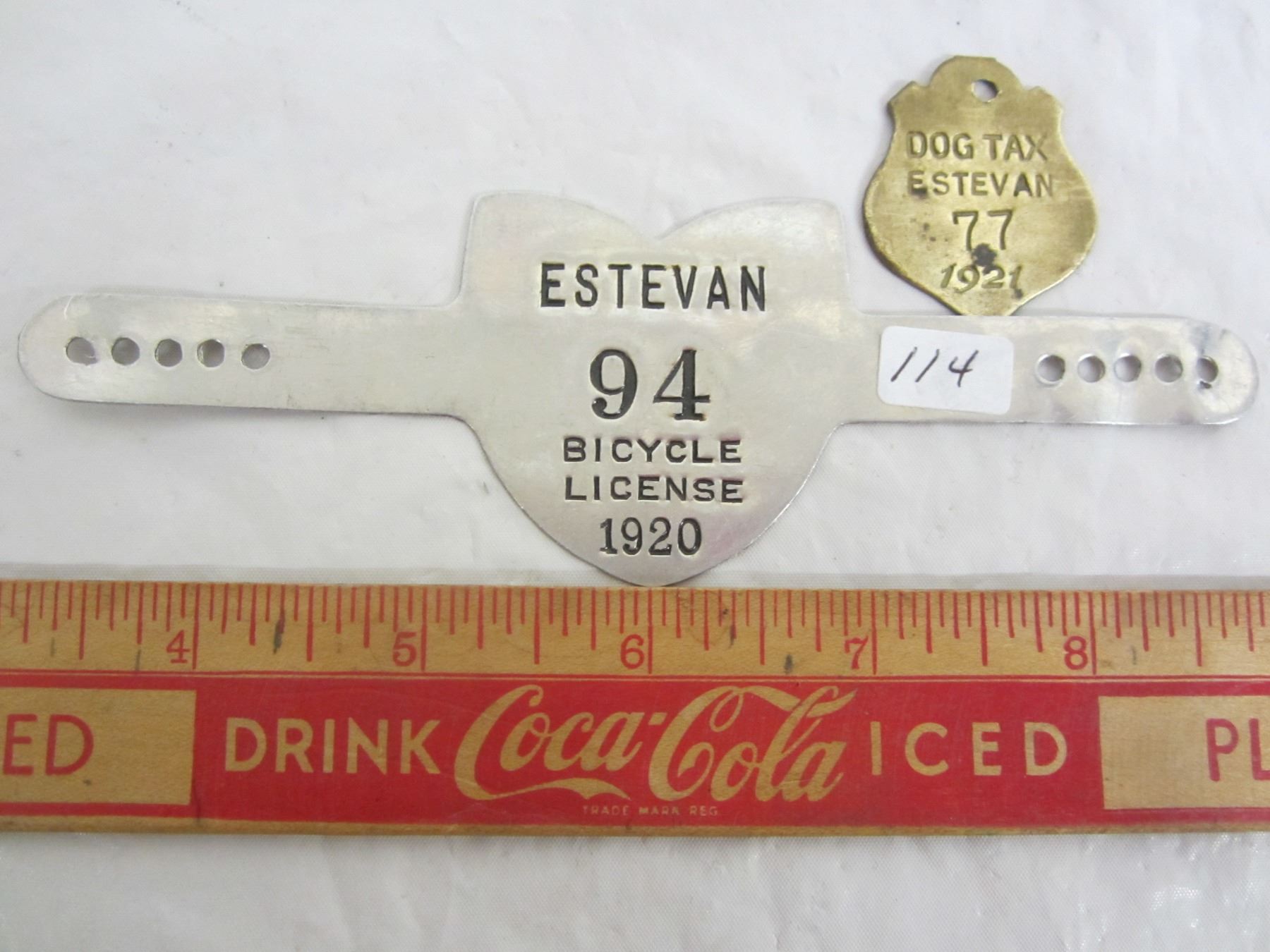 ESTEVAN 1920 BIKE LICENSE AND 1921 DOG LICENSE