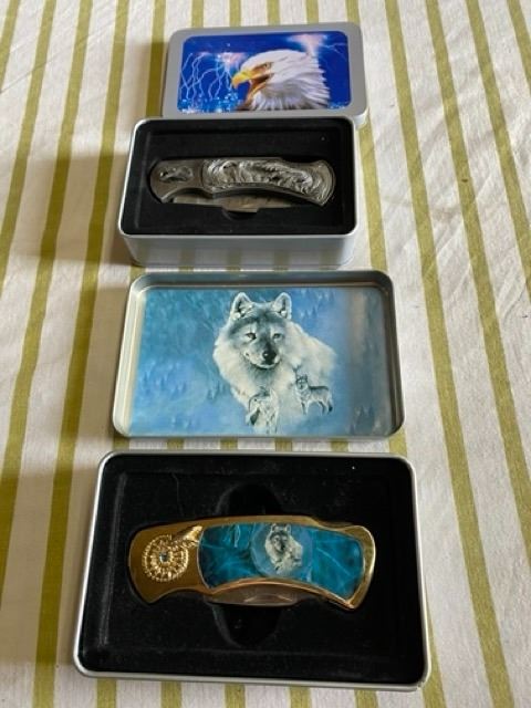 Eagle & Wolf Knives In Tin Cases