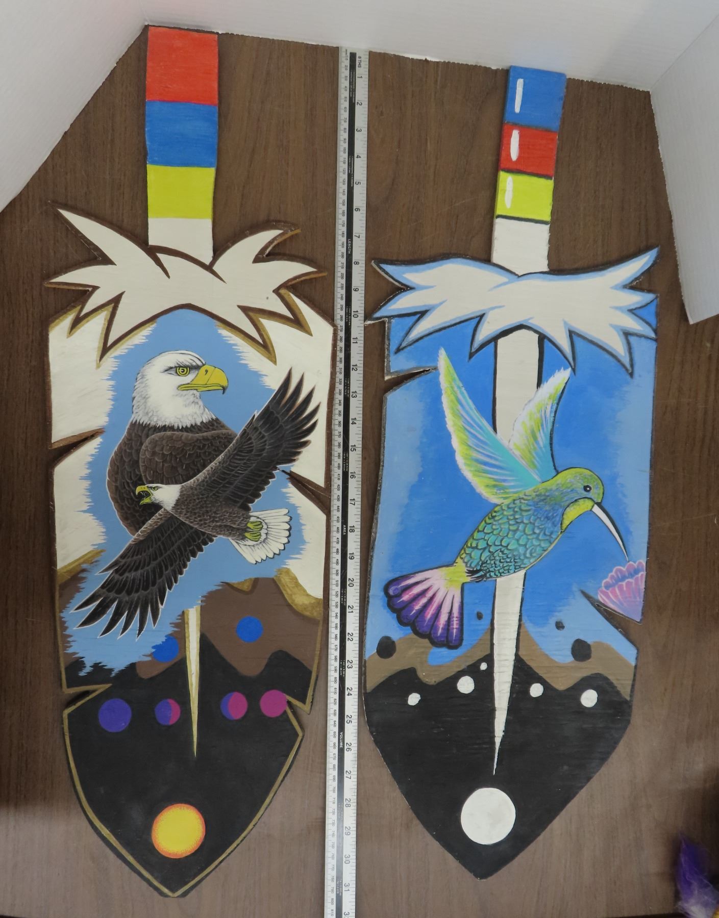 Eagle and humming bird art wooden pieces -31"X10"