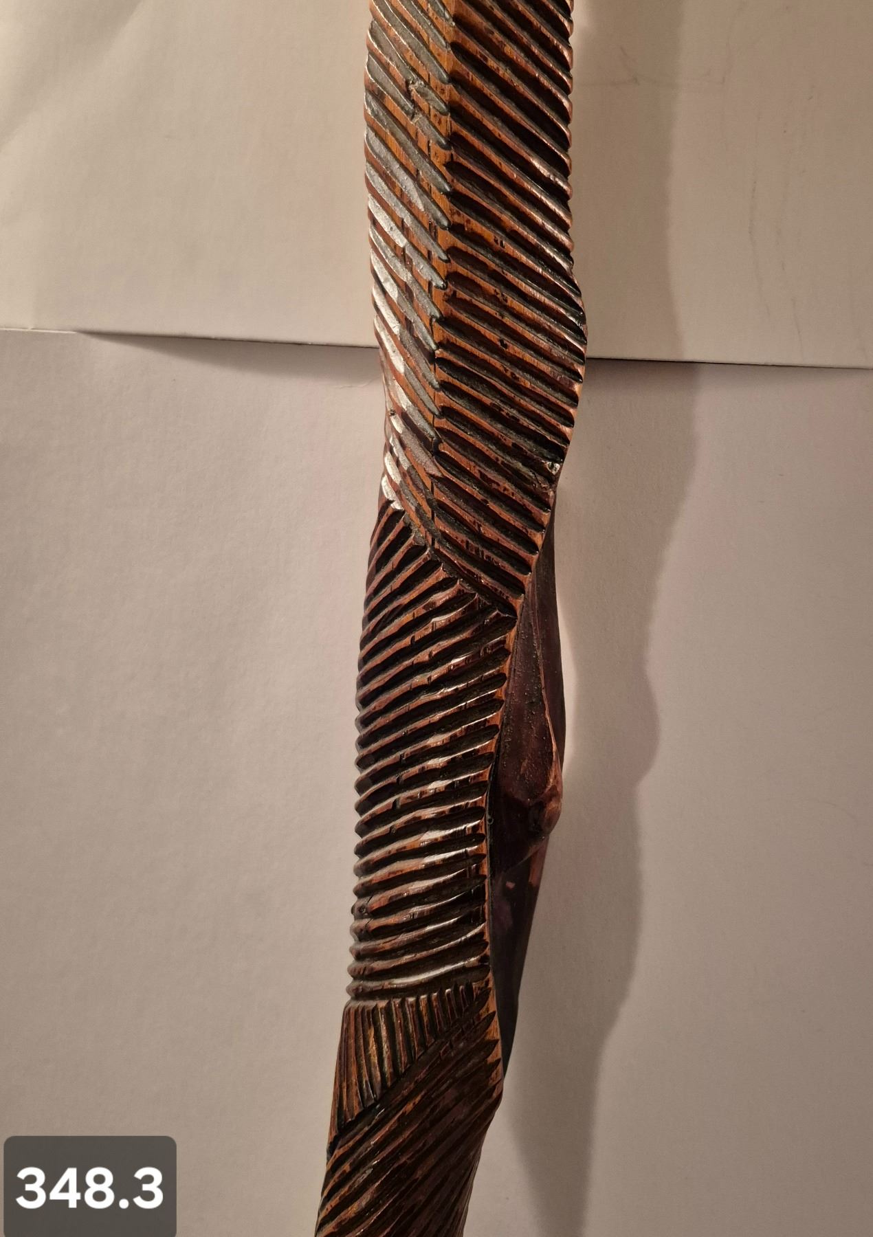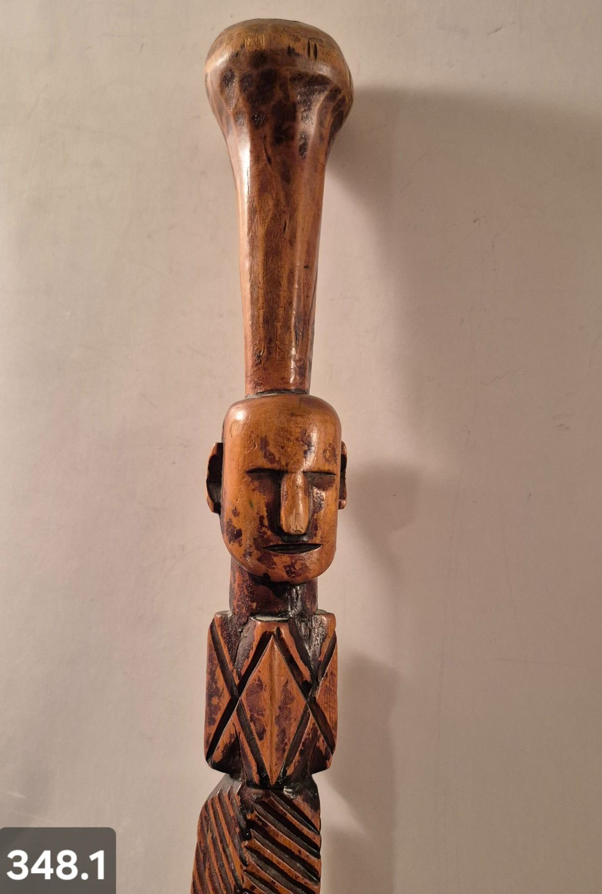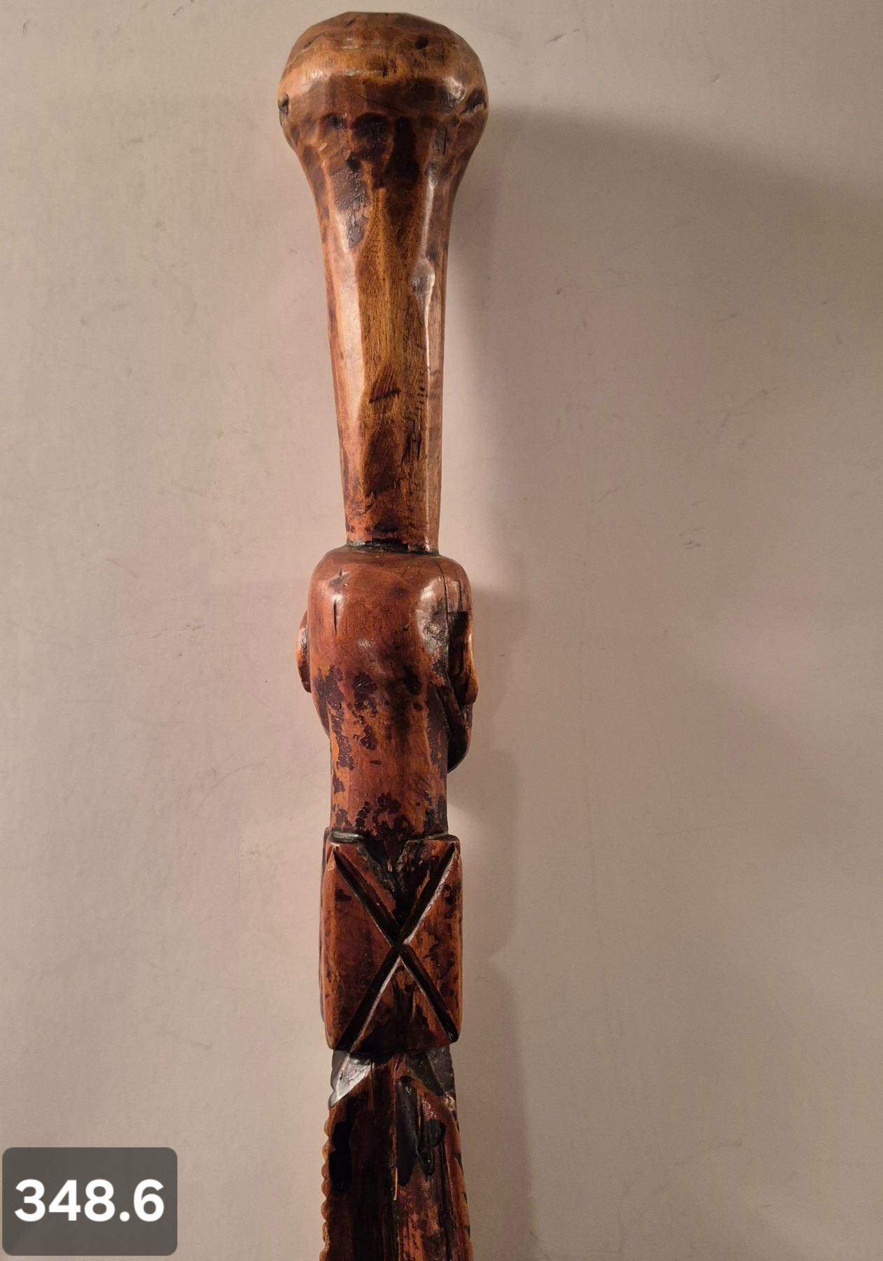 Early Folk Art hand-carved walking stick - nice patina and wear