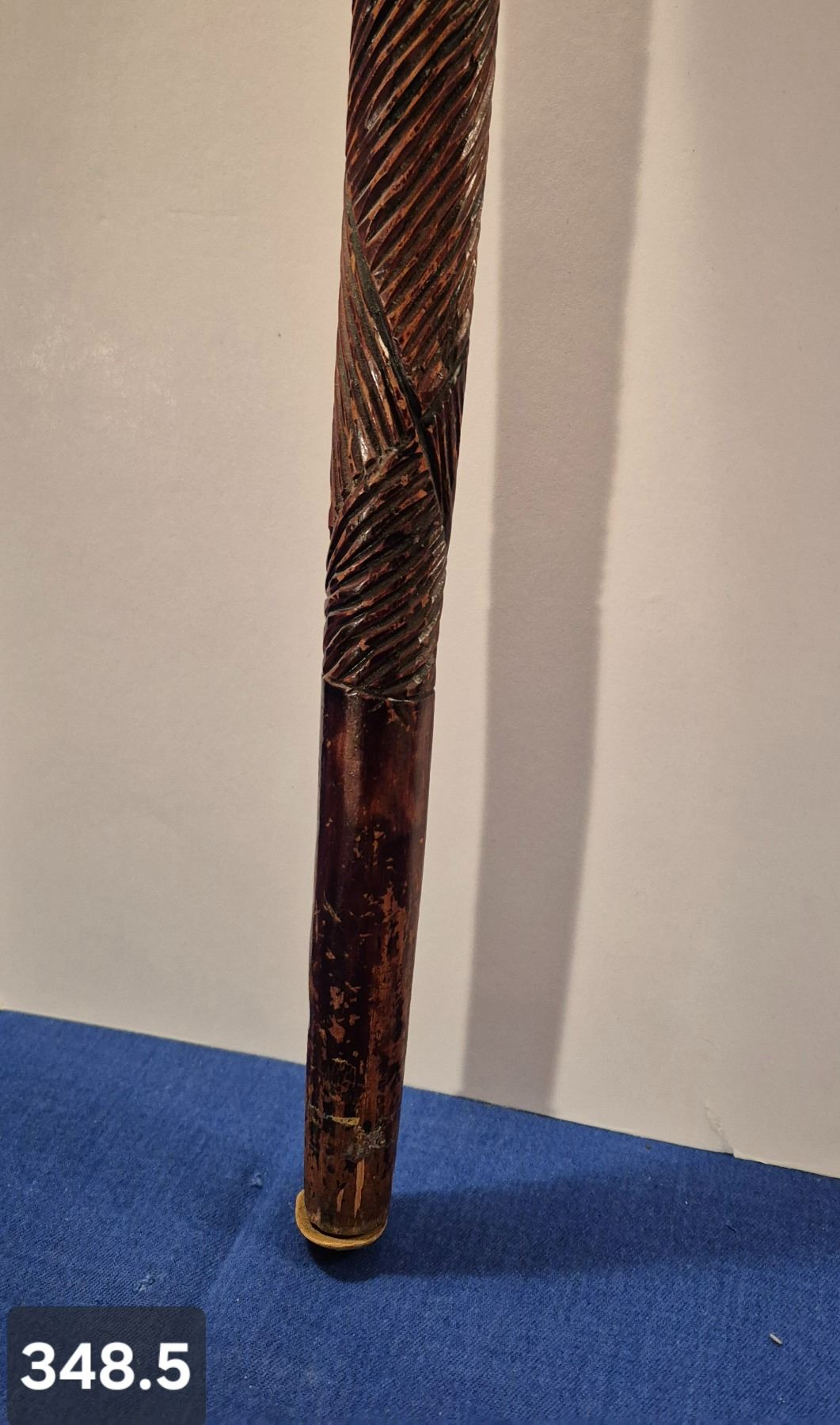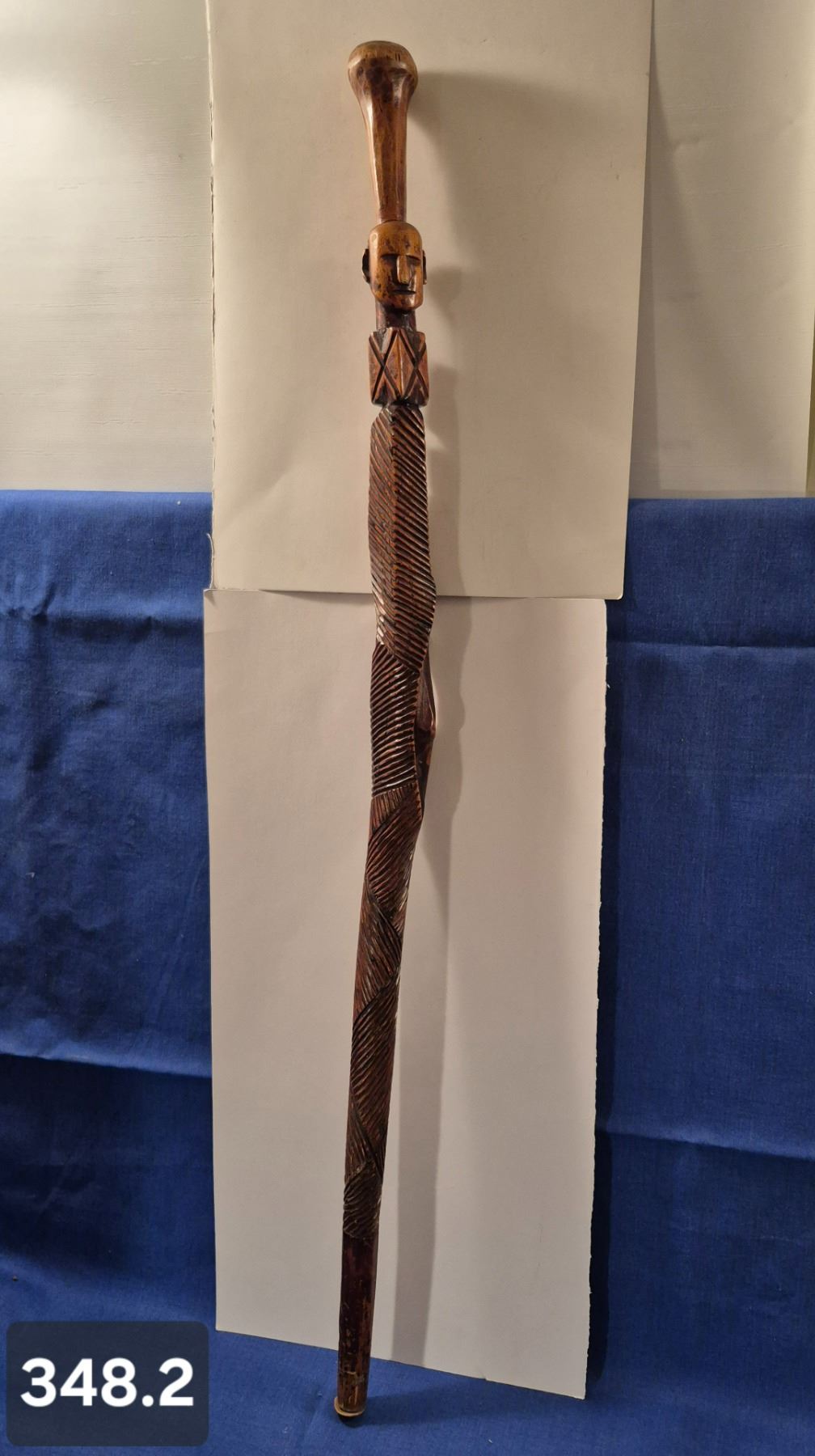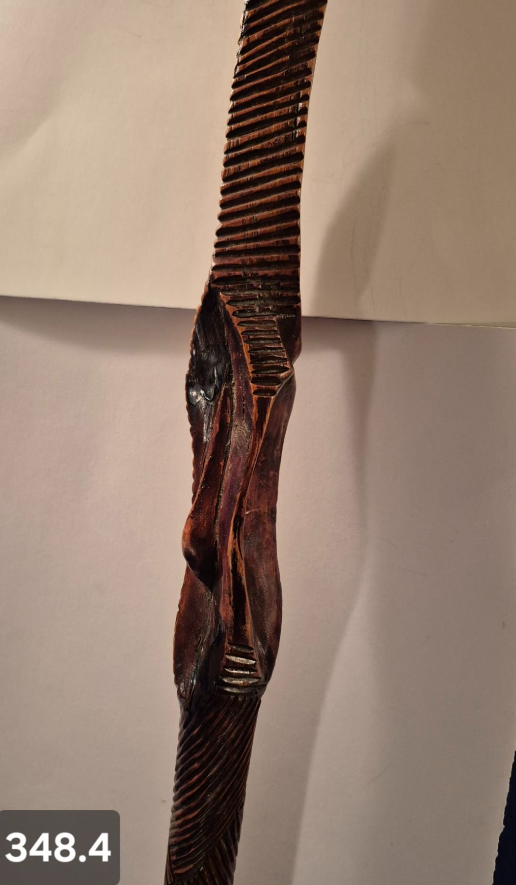 Early Folk Art hand-carved walking stick - nice patina and wear