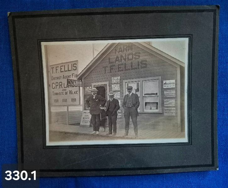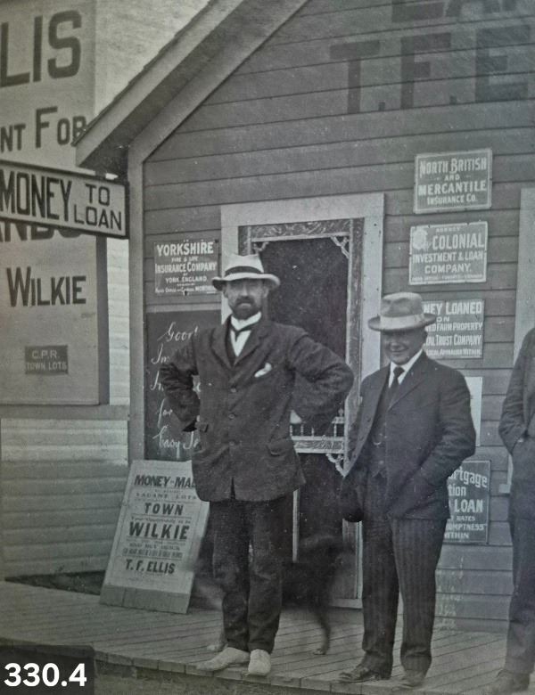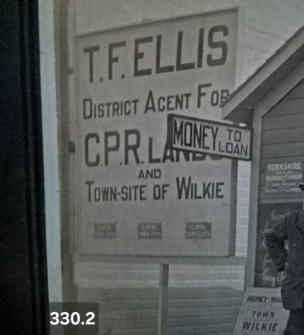 Early Original 1900s photo - Wilkie SK., CPR Lands Building, showing old advertising signs on front of building