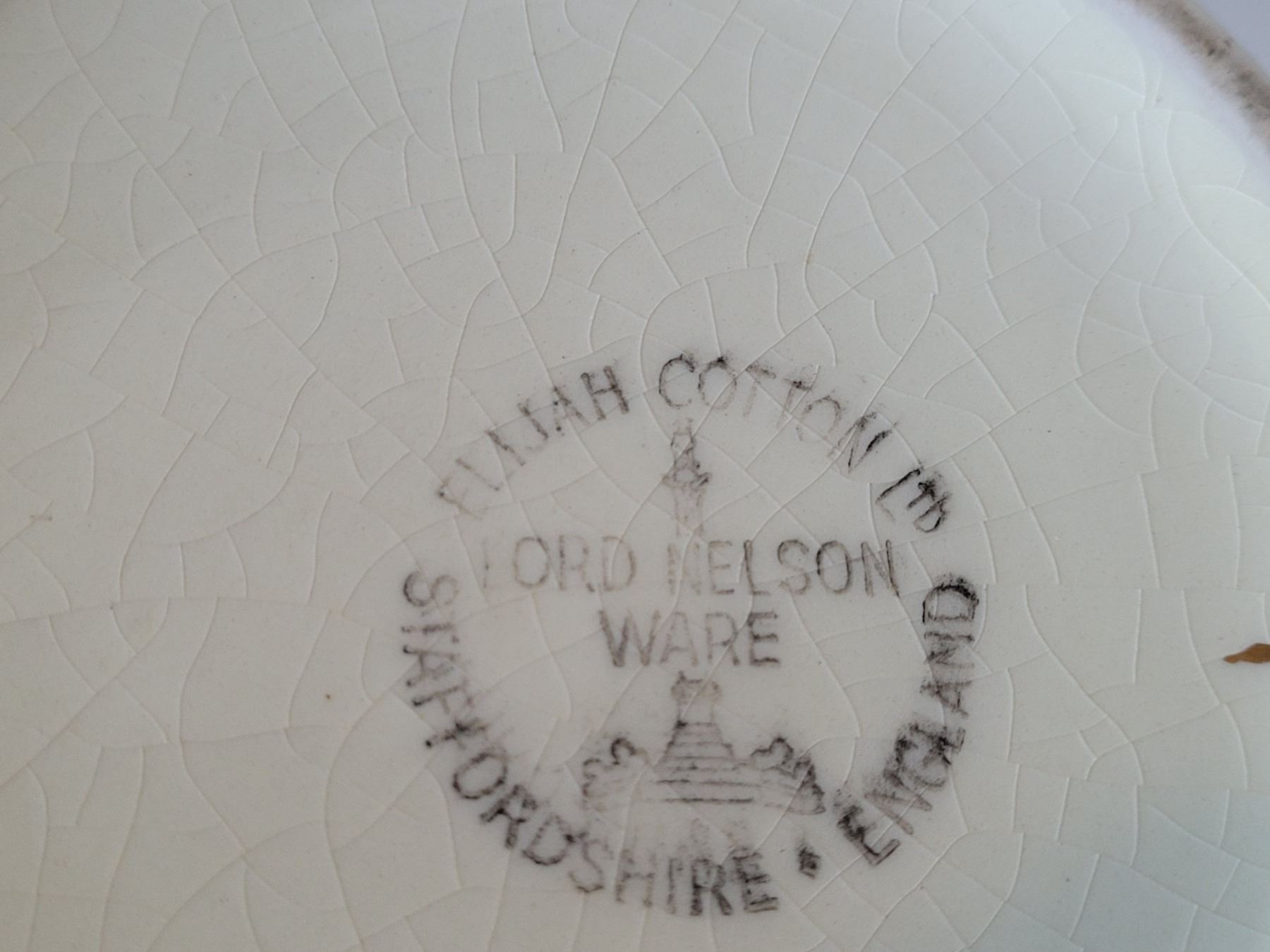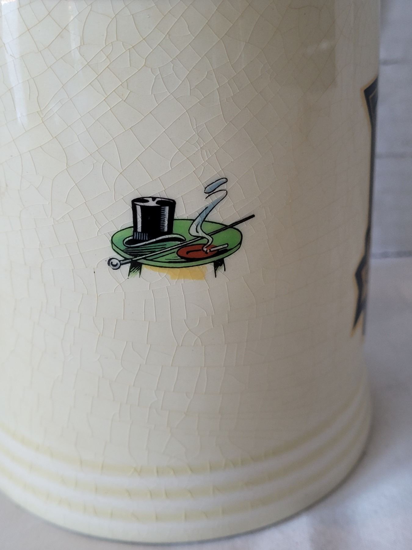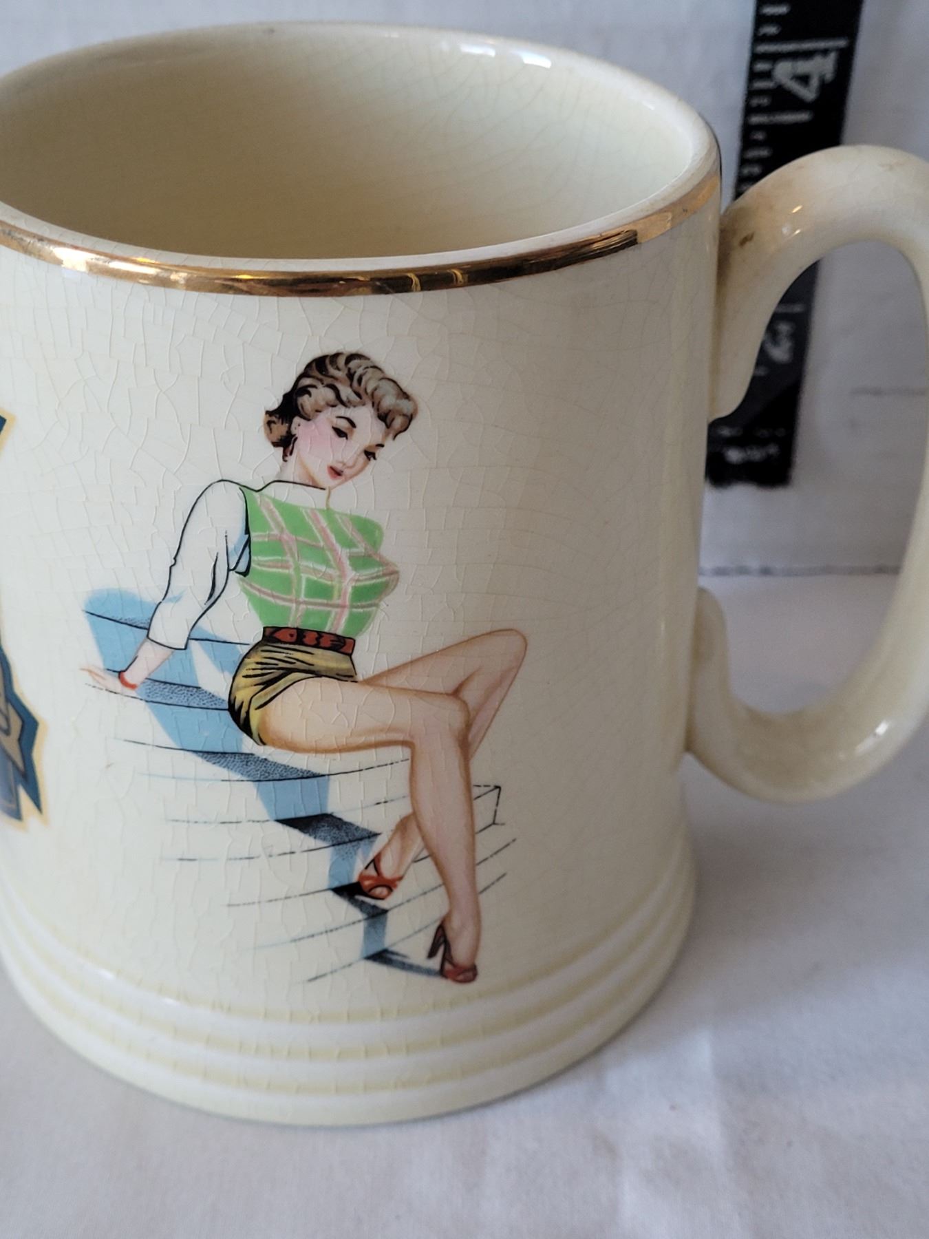Early century Anson pump action shotgun tie clip. Sask. Vtg. Lord Nelson Ware Fish & Games mug.
