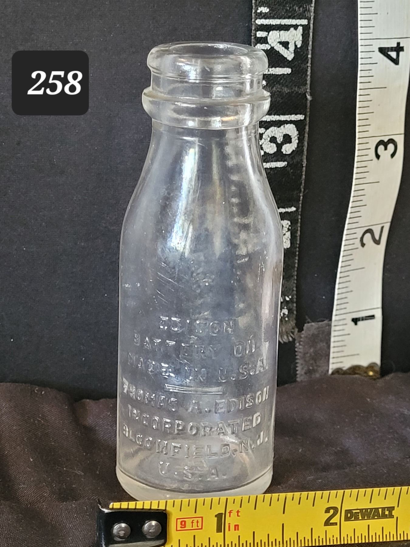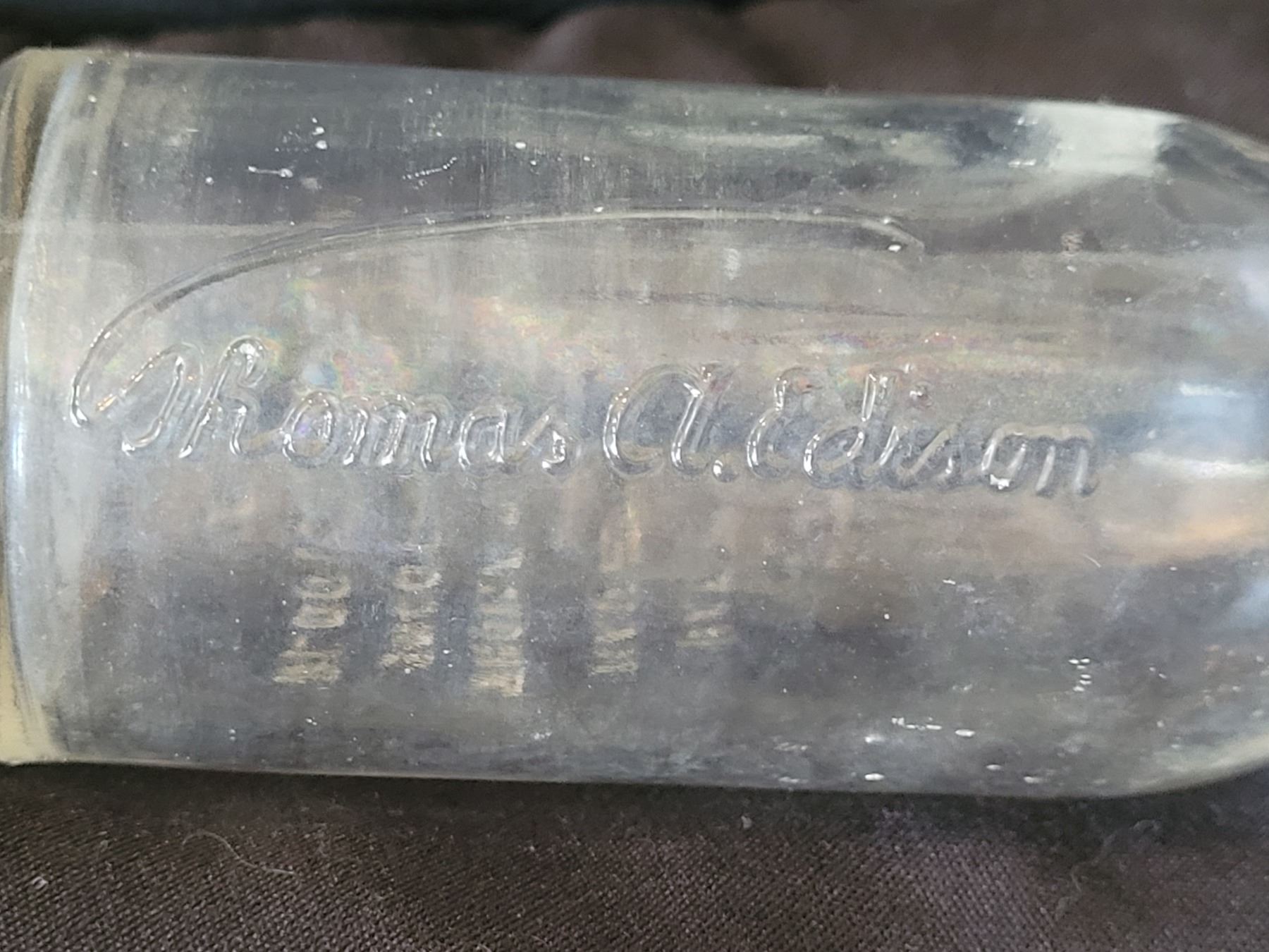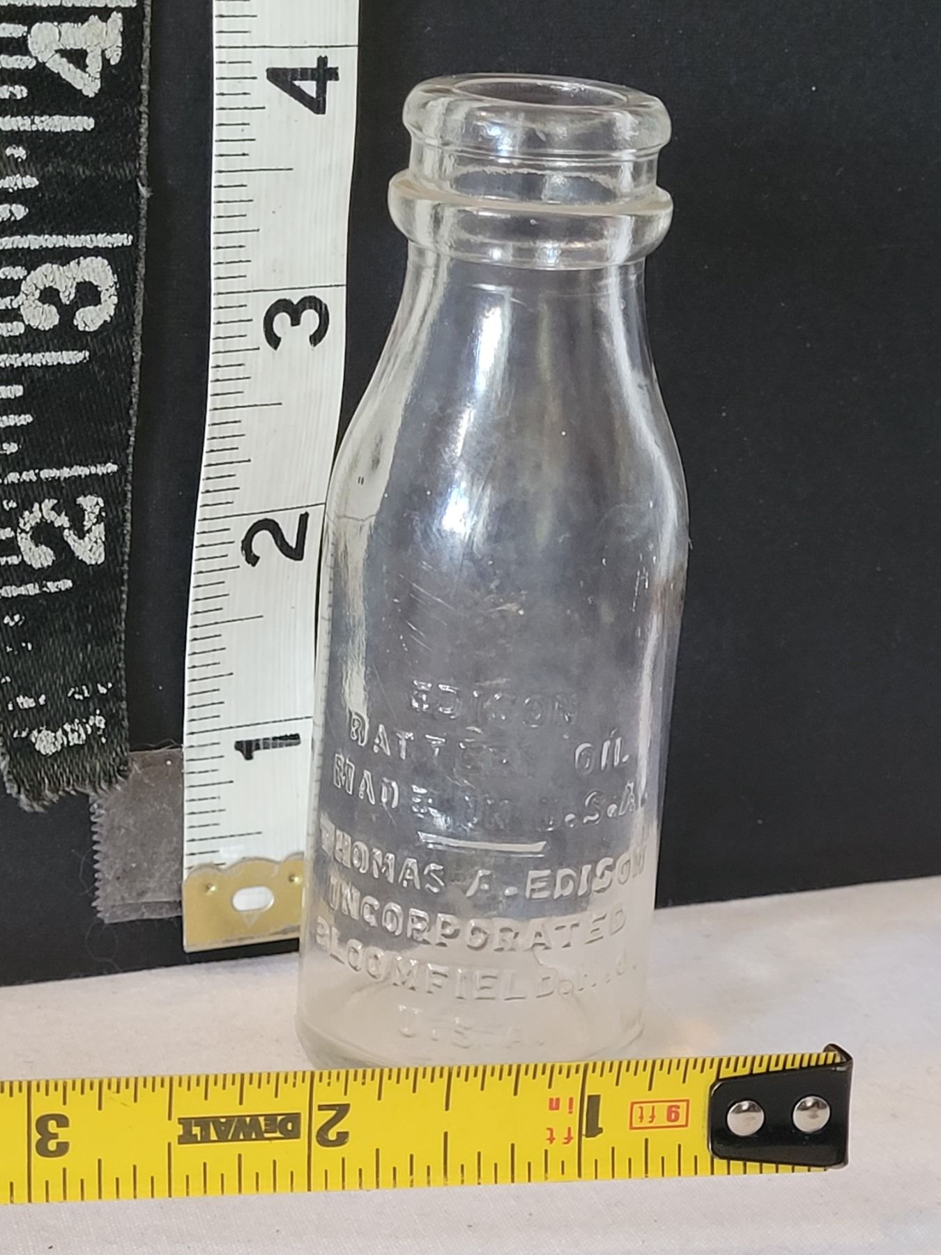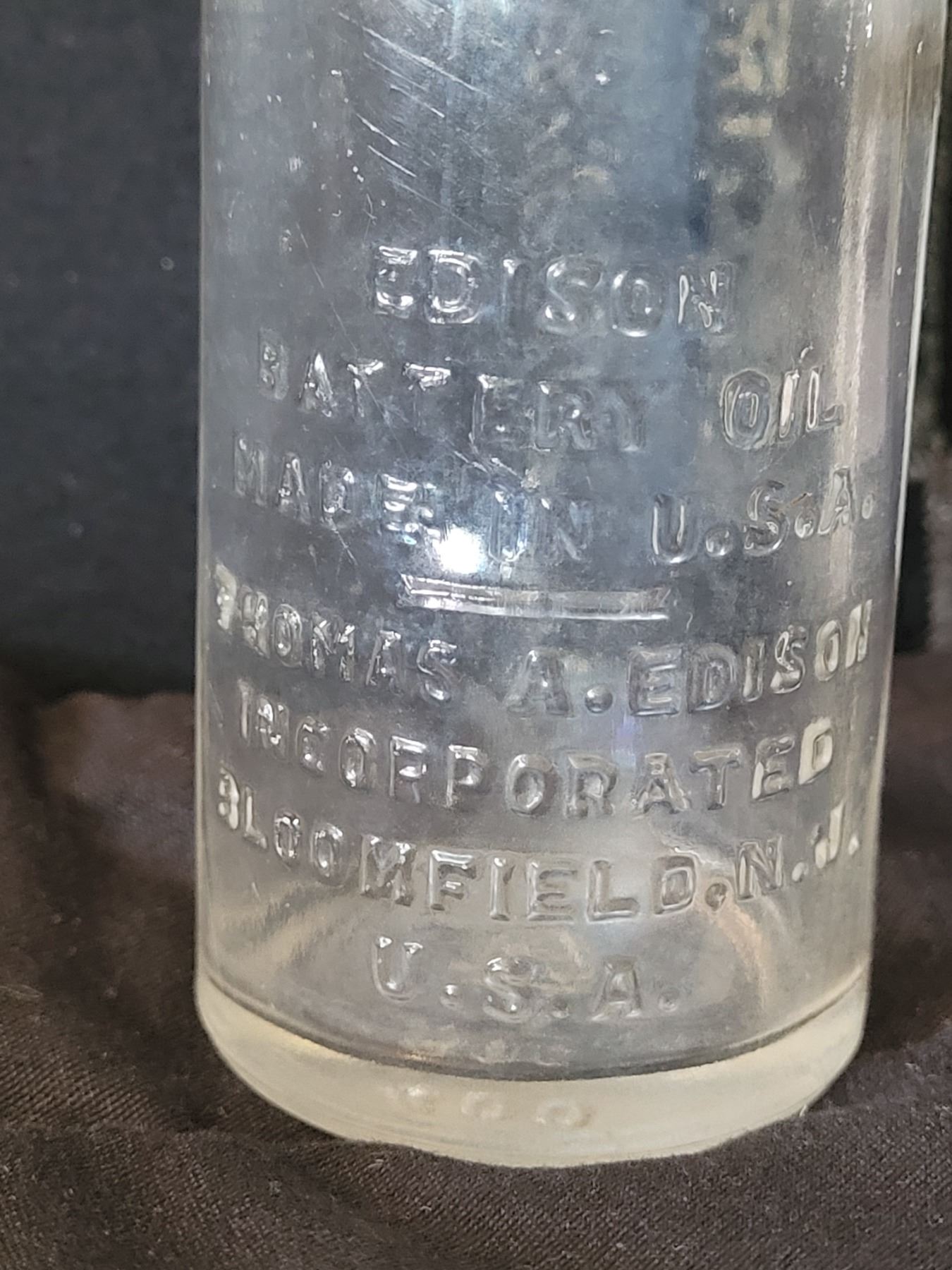 Early century embossed Thomas Edison battery oil bottle.