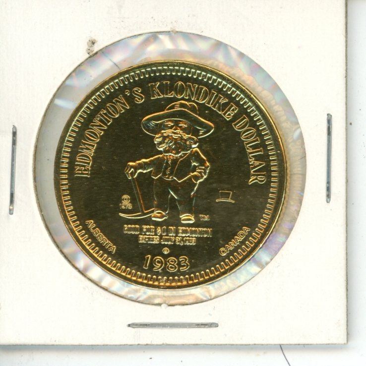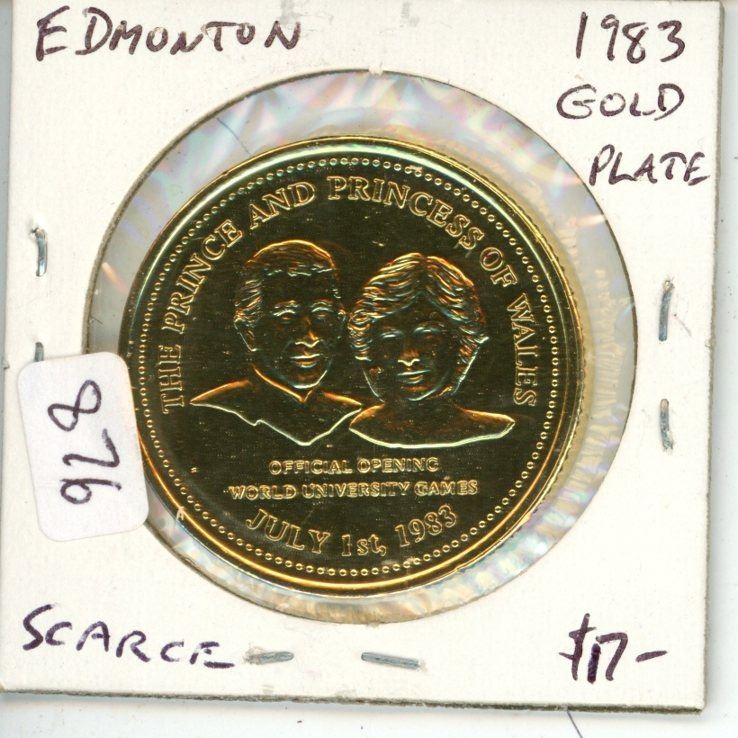 Edmonton. 1983 Gold Plated Trade Dollar. Depicts the Official Visit of Prince Charles and Princess Diana. Unc. Scarce.