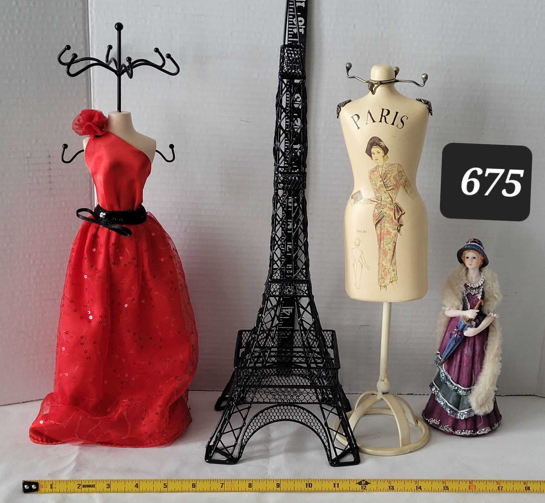 Effel tower & mannequin jewelry displays.